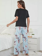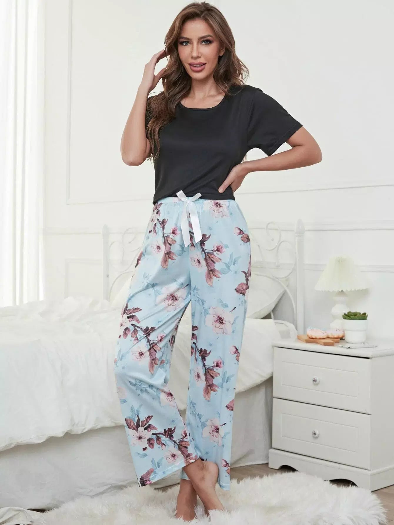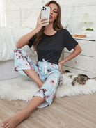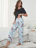 طقم بيجامة خصر بطبعة زهور على شكل عقدة