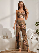 طقم بيجامة بيجامة دانتيل مزين بالزهور