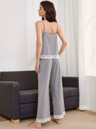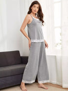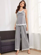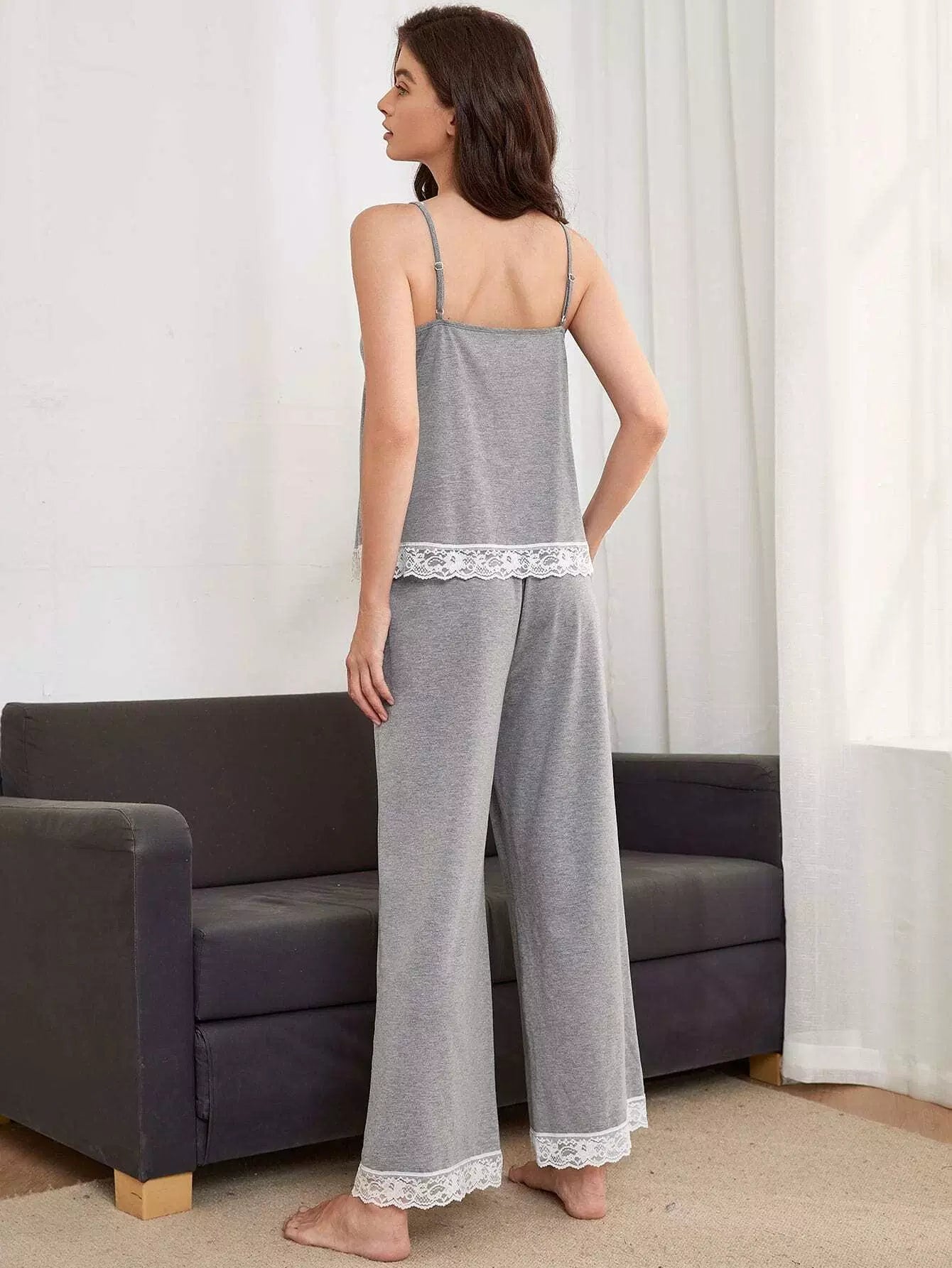 طقم بيجامة من أعلى وبنطلون مع حافة من الدانتيل
