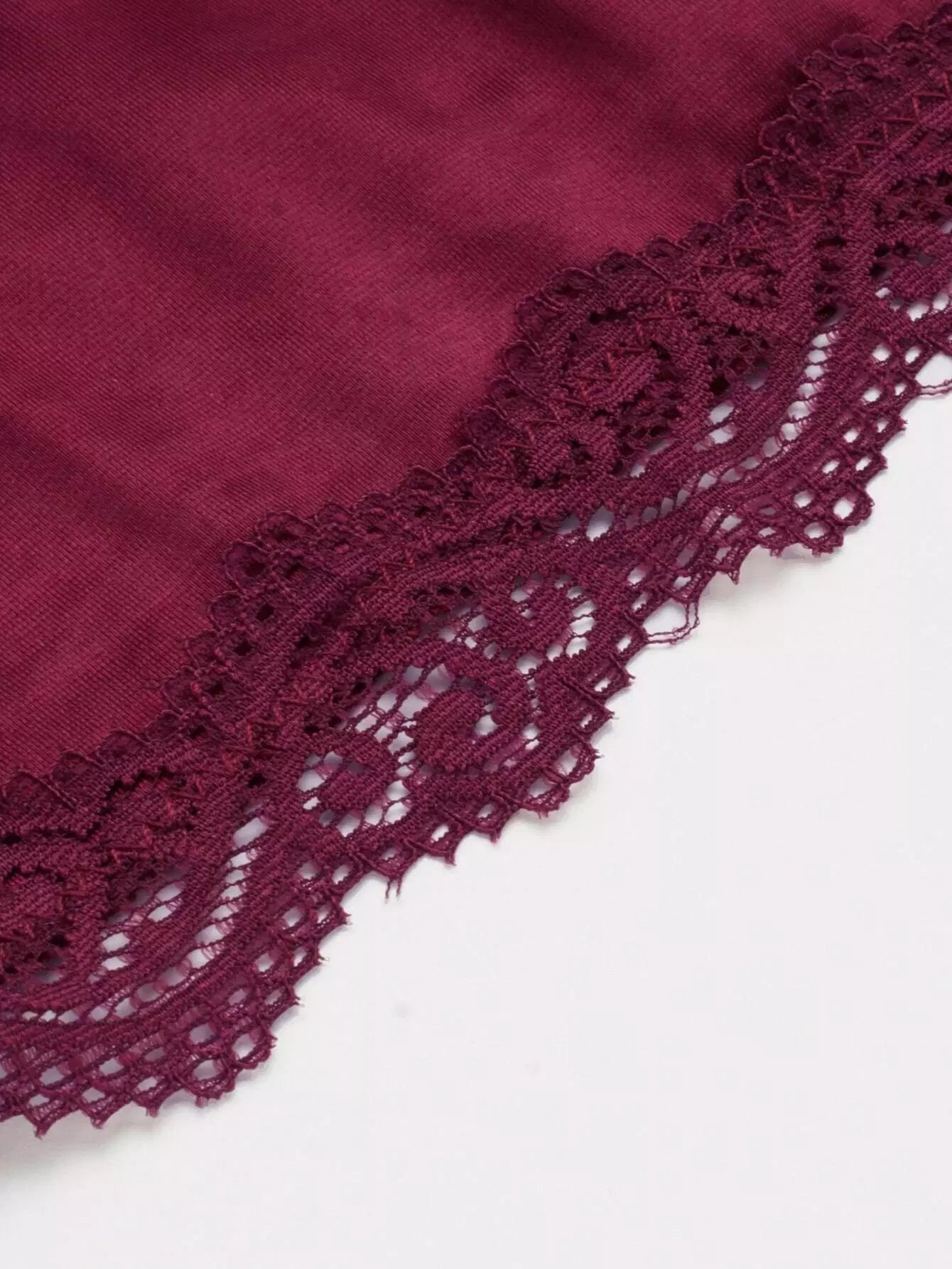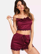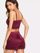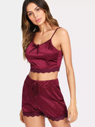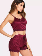 طقم بيجامة بنطلون قصير وقميص قصير من الدانتيل المزين بالدانتيل