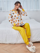 Lemon Print Contrast Trim Top & Pants PJ Set
