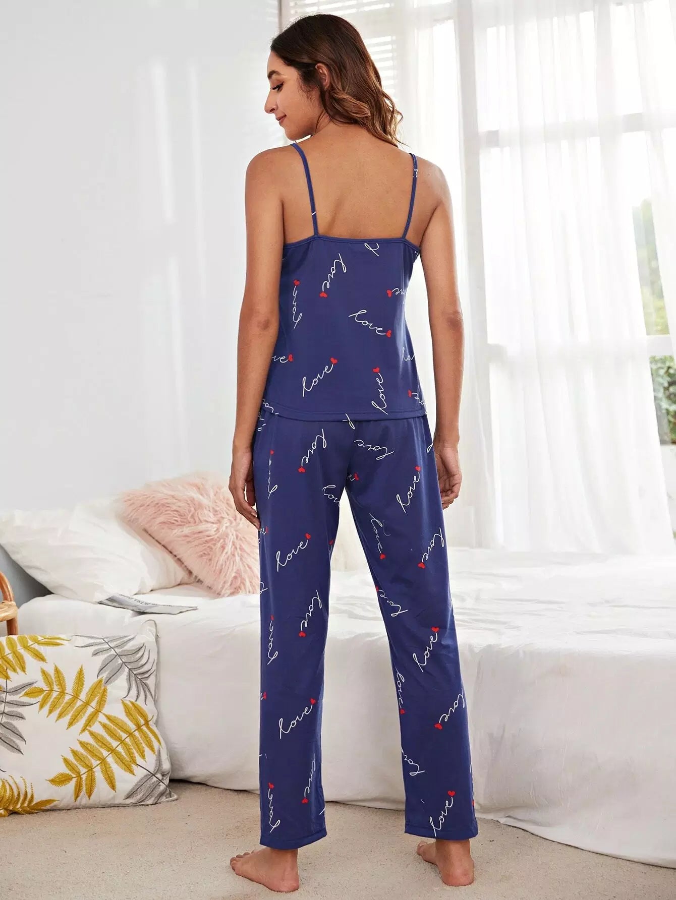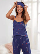 طقم بيجامة بيجامة بطبعة حروف وقلب مع غطاء للعينين