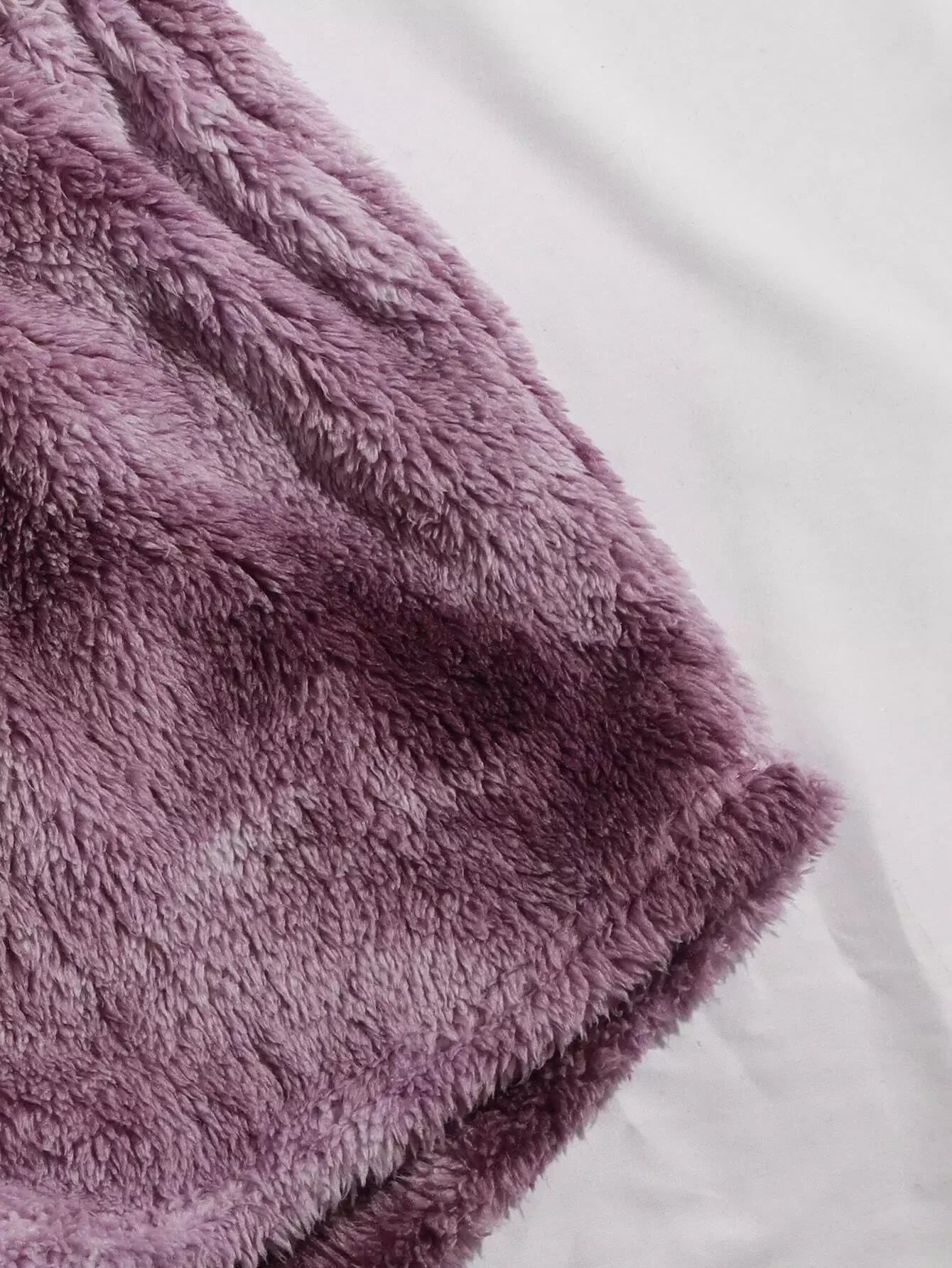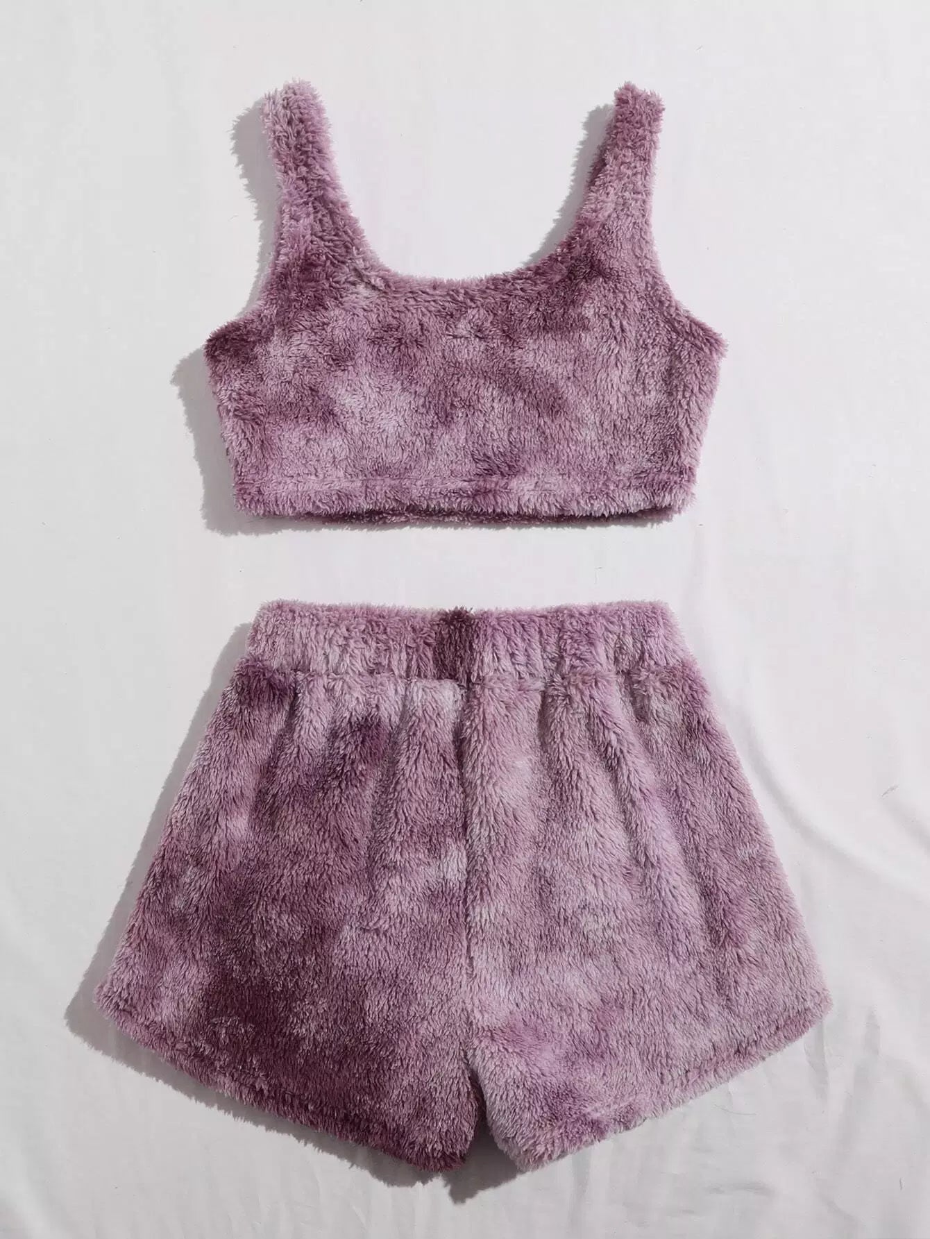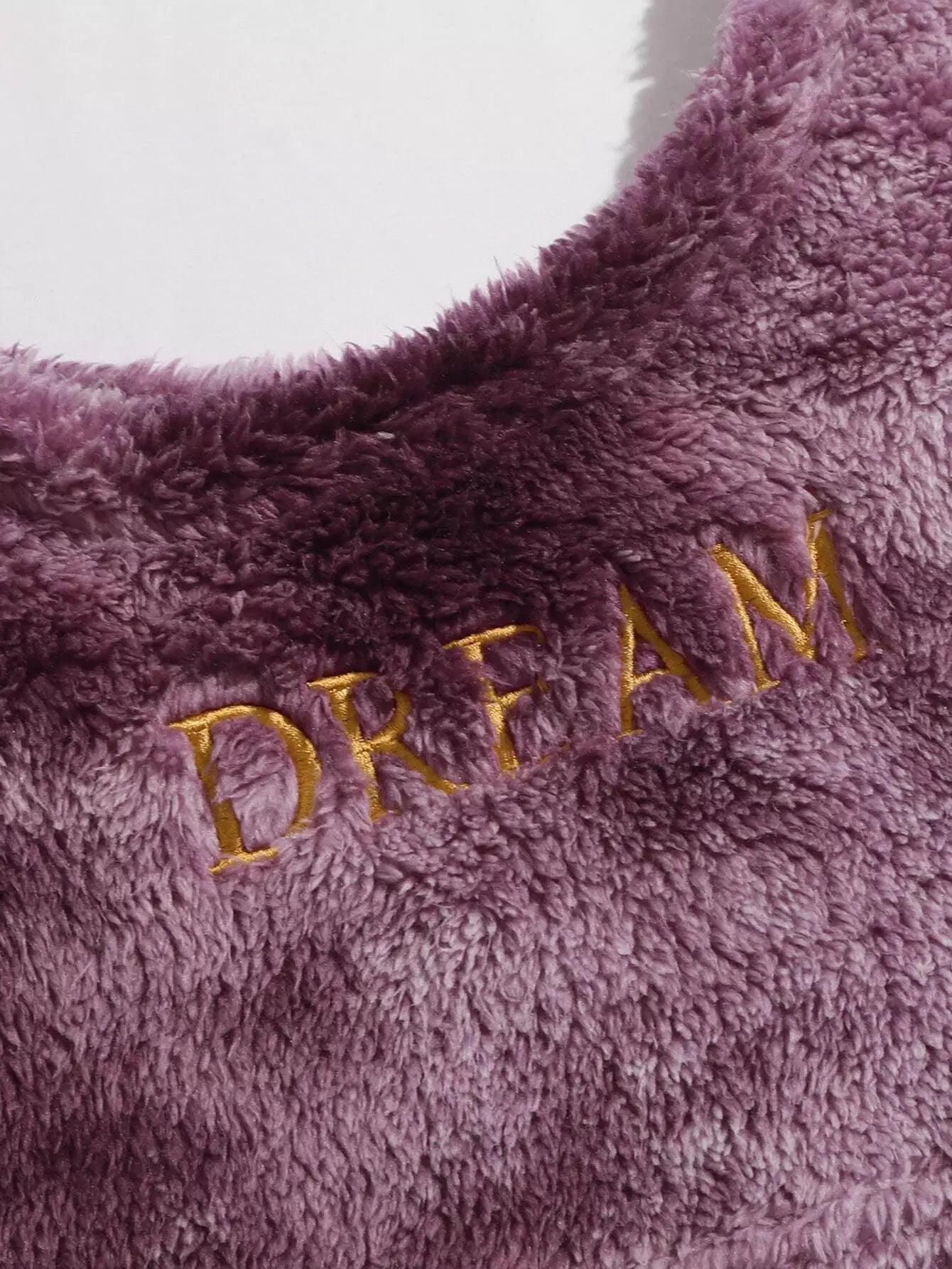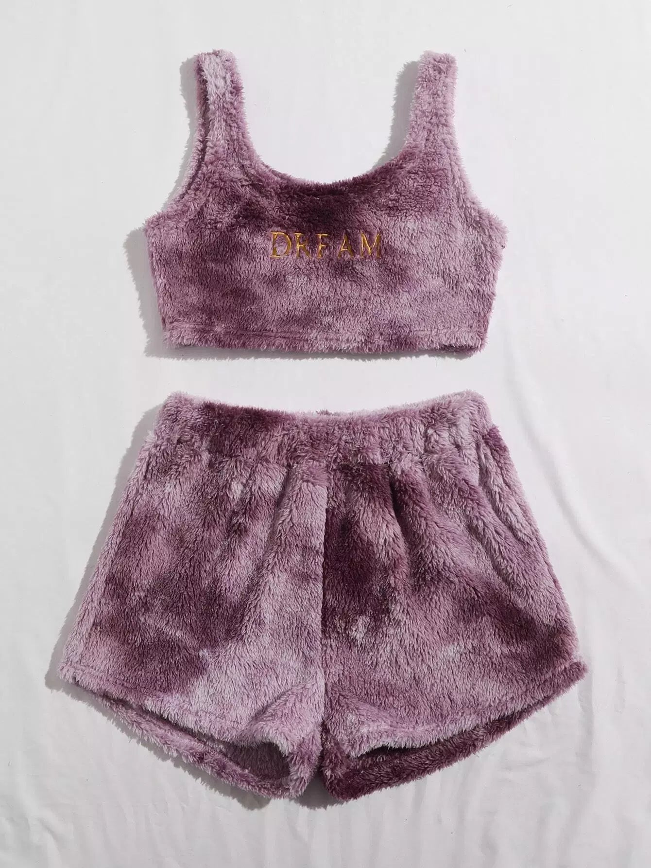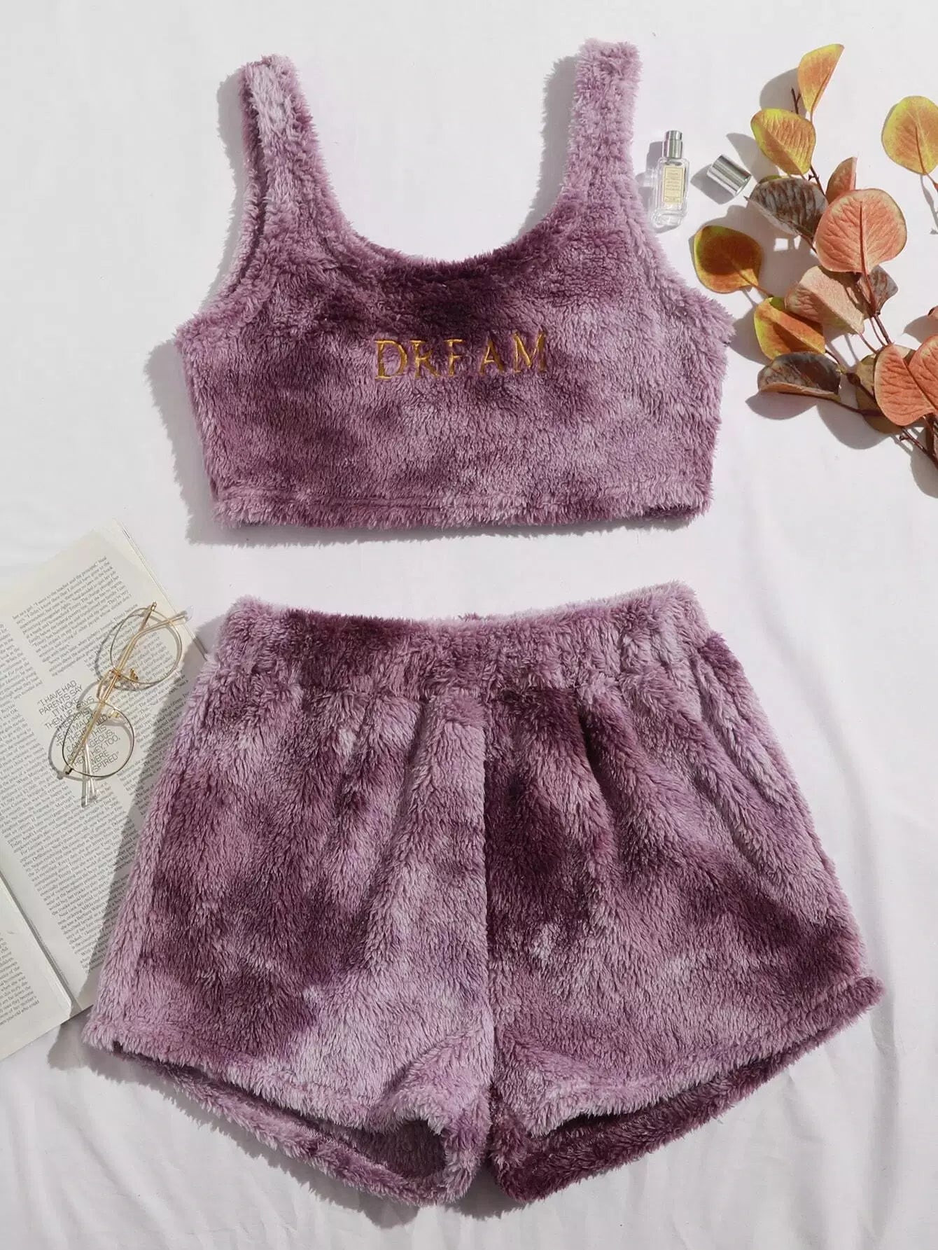 طقم بيجامة فانيلا مصبوغ بتطريز حروف على شكل ربطة عنق مطرزة
