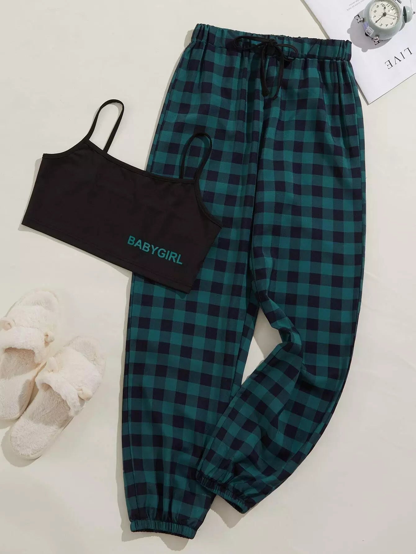 للنساء - طقم بيجامة مكون من بلوزة كامي وبنطلون قطني برسومات الحروف