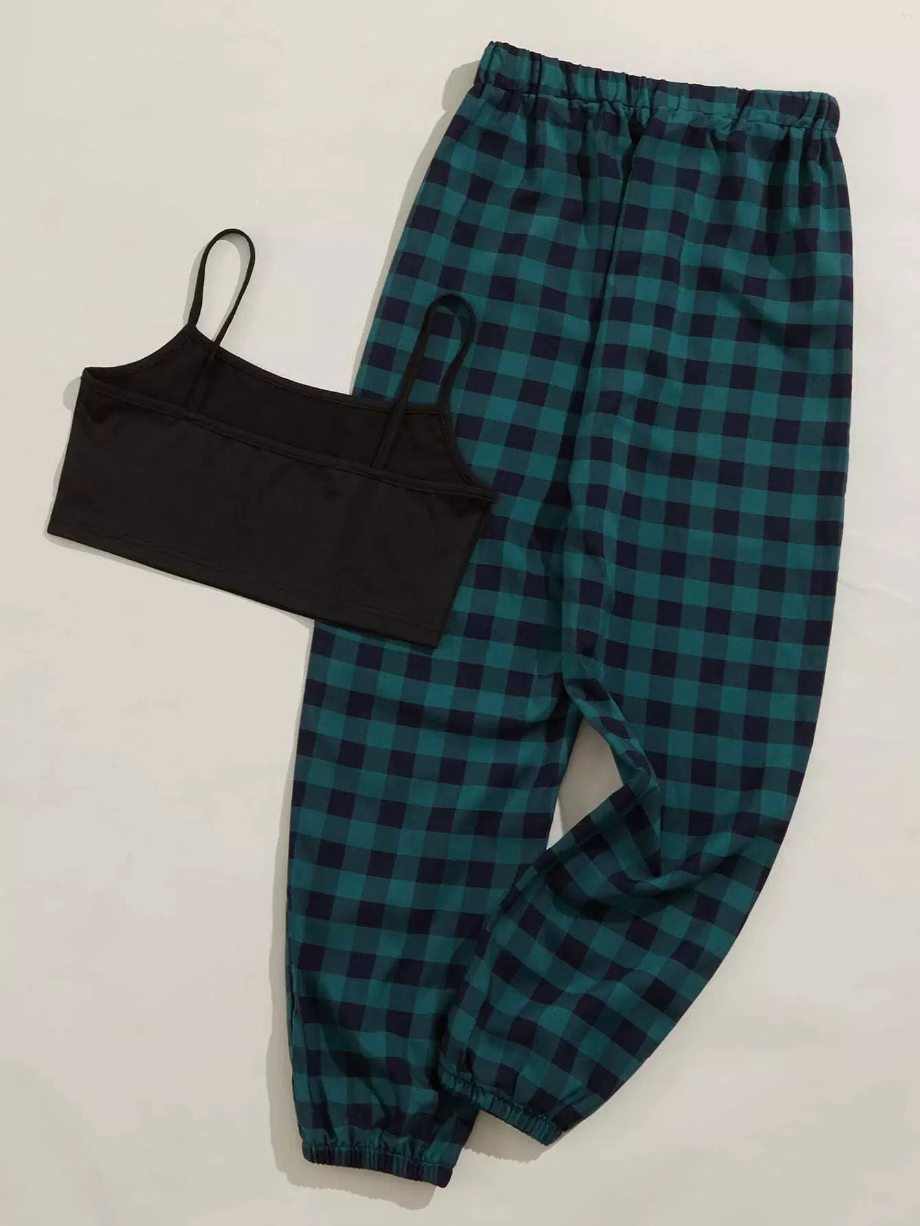 طقم بيجامة بنطلون قطني وقميص كامي برسومات حروف وبنطلون قطني