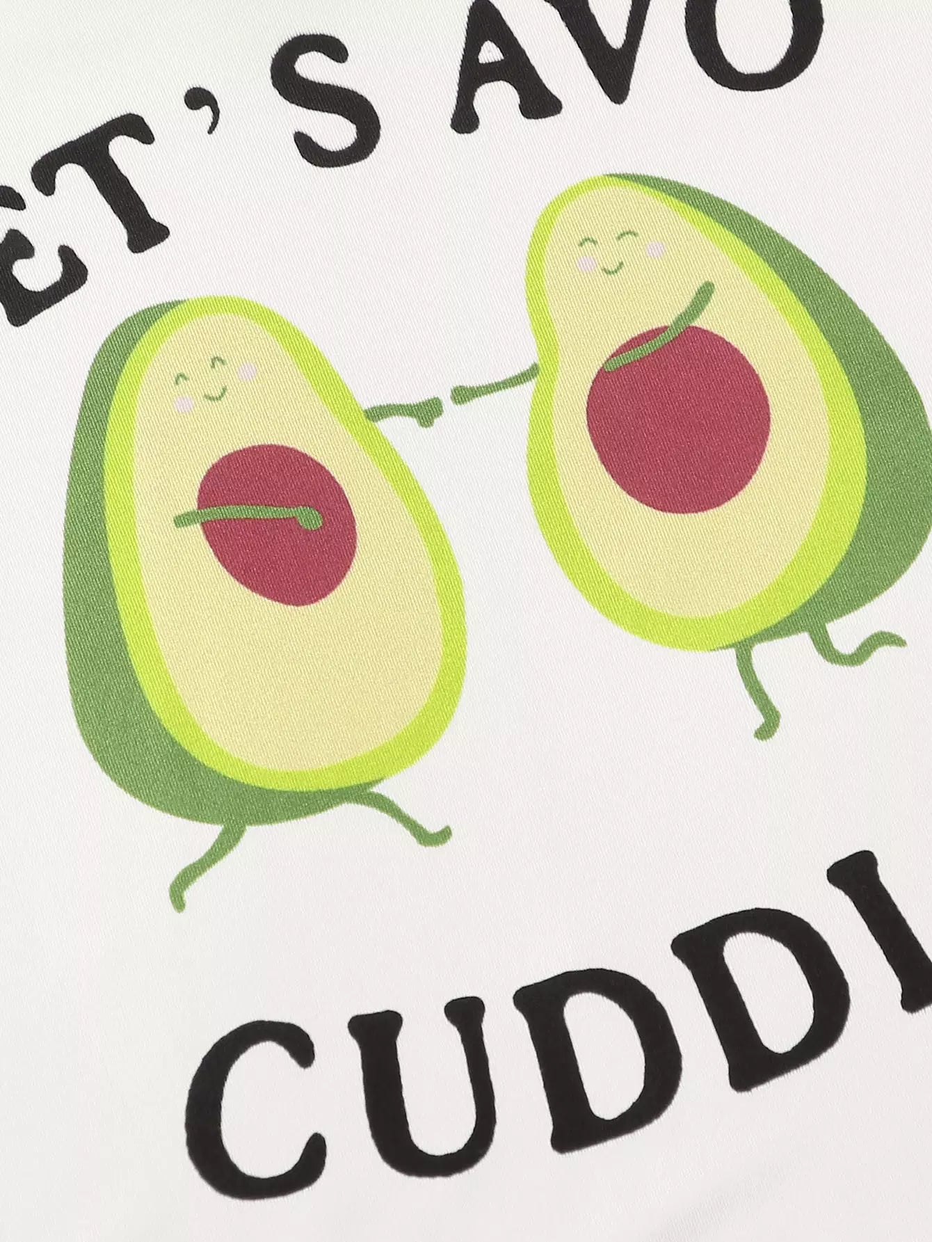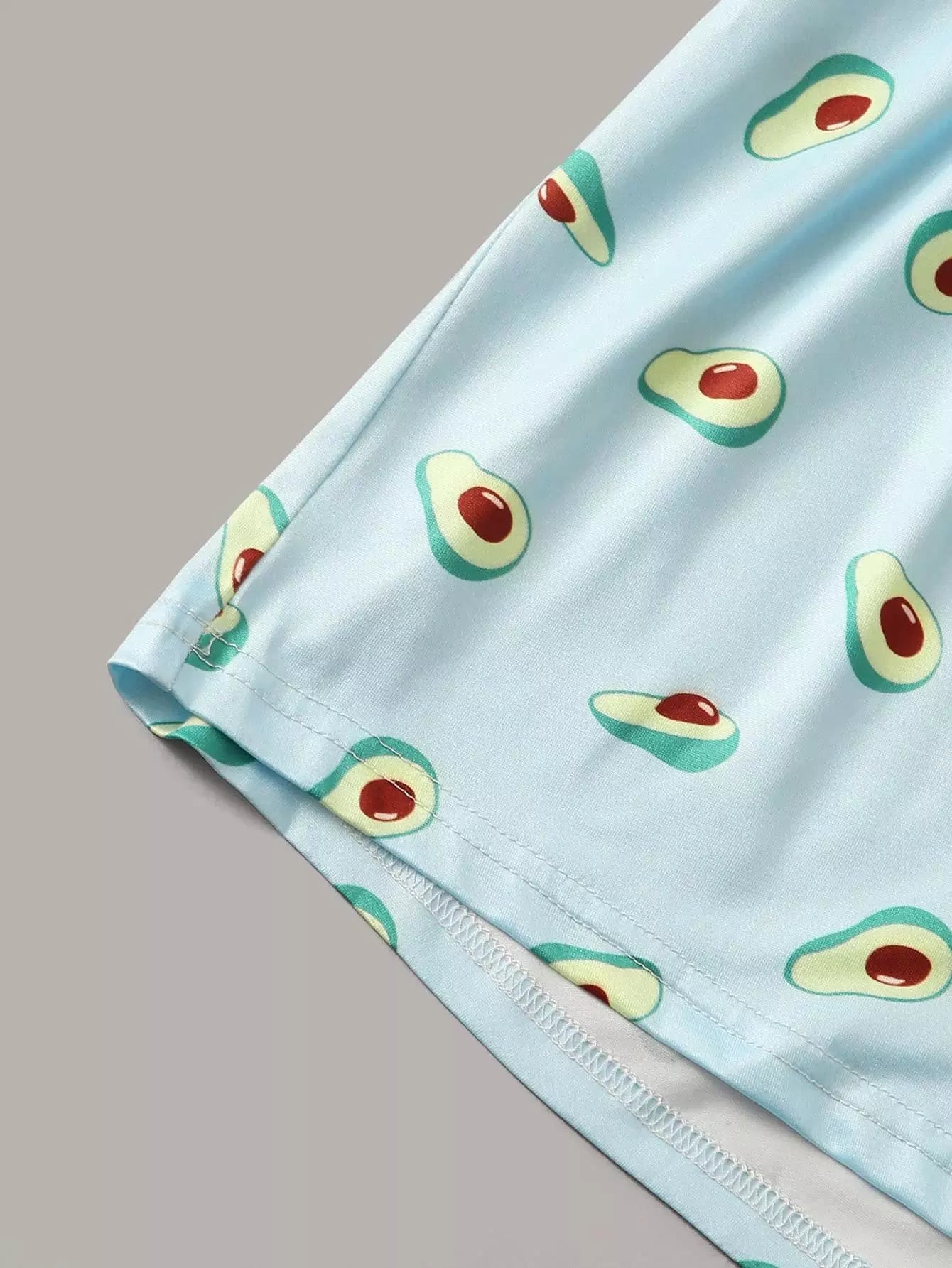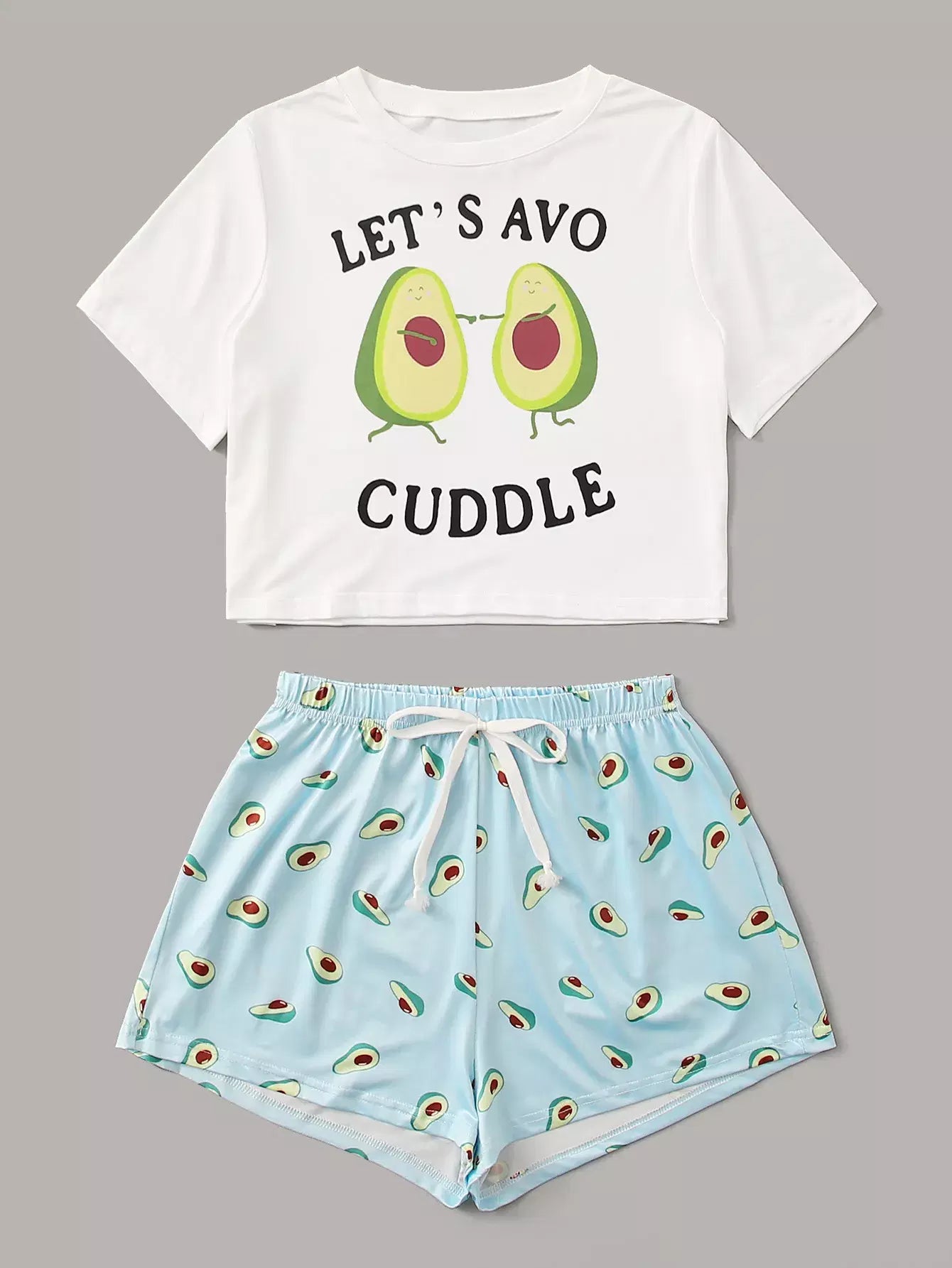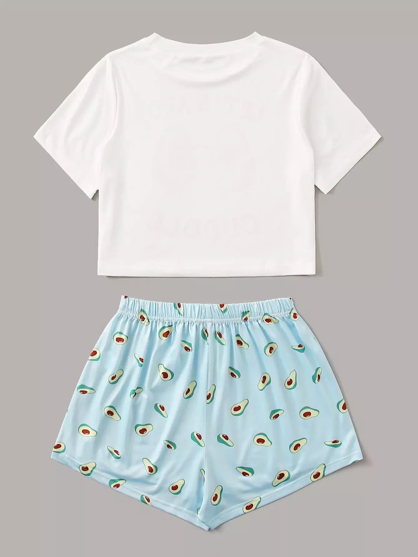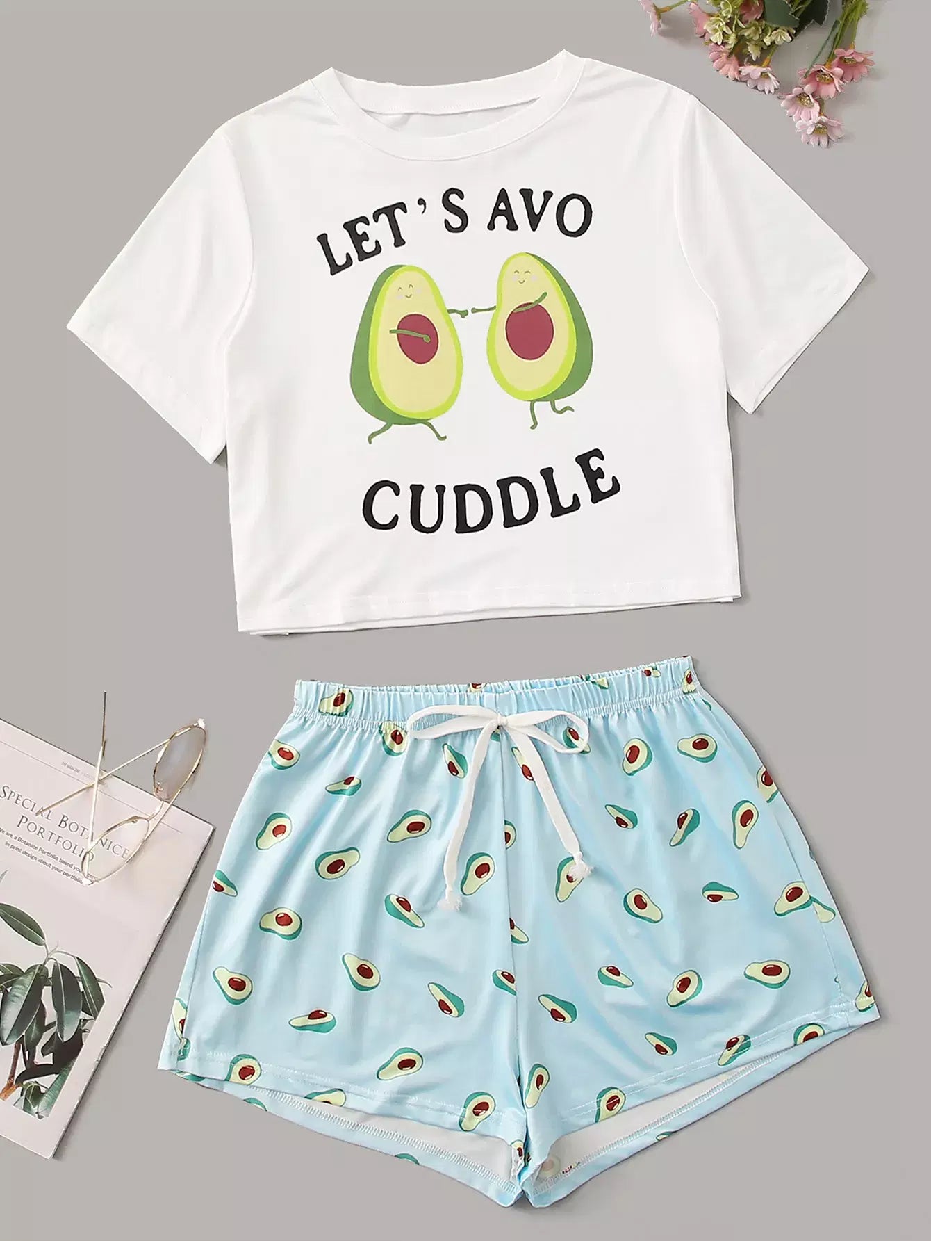 طقم بيجامة بنقشة حروف مع شورت أفوكادو فوقها حروف