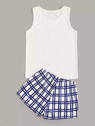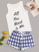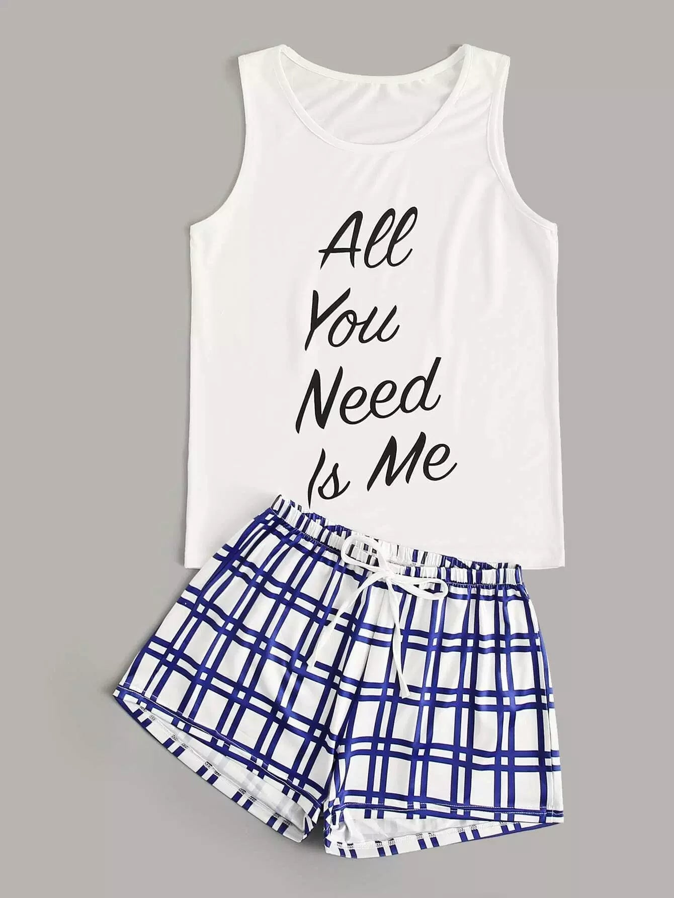 بلوزة بطبعة حروف مع طقم بيجامة قصير منقوش