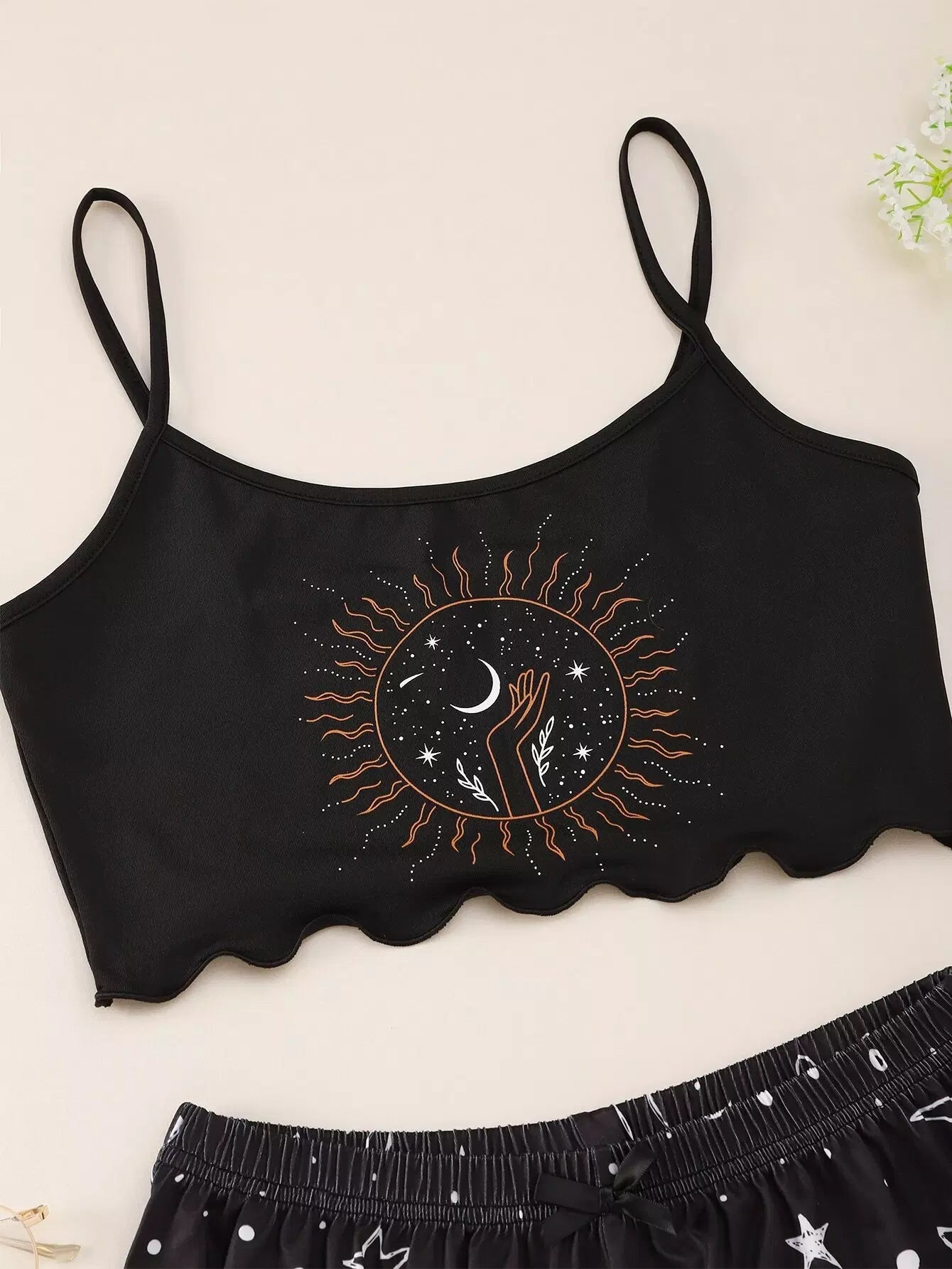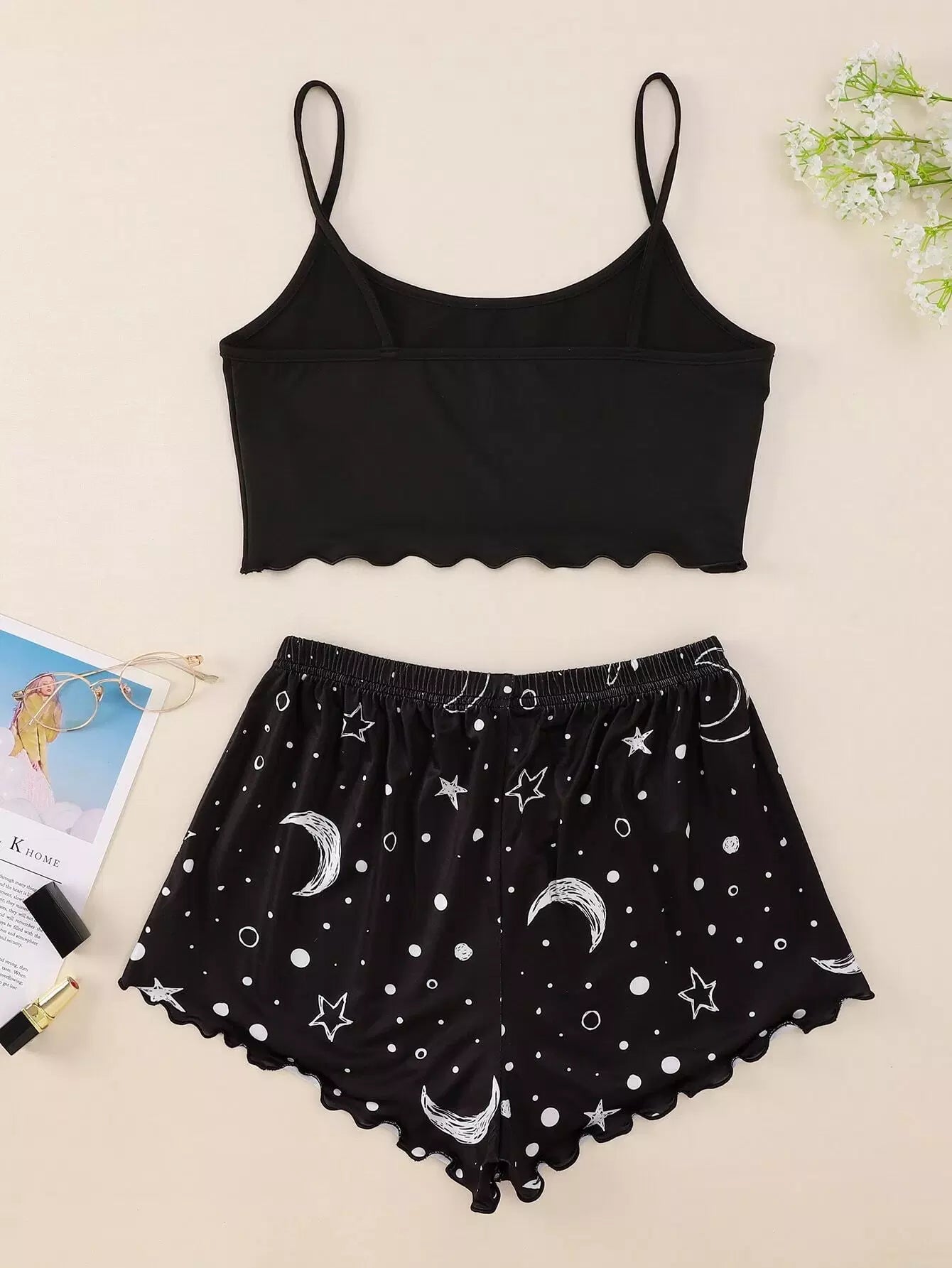 طقم بيجامة بنقشة قمر ونجمة مطبوع عليه خس