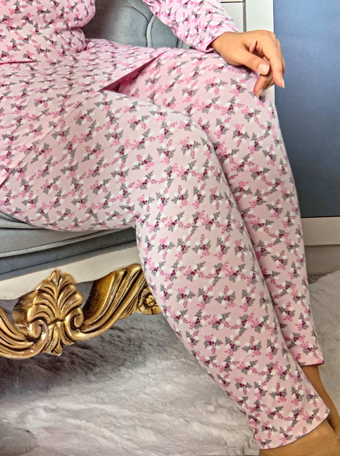 بيجامة وردية مع طباعة زهور باللونين الأسود والأحمر