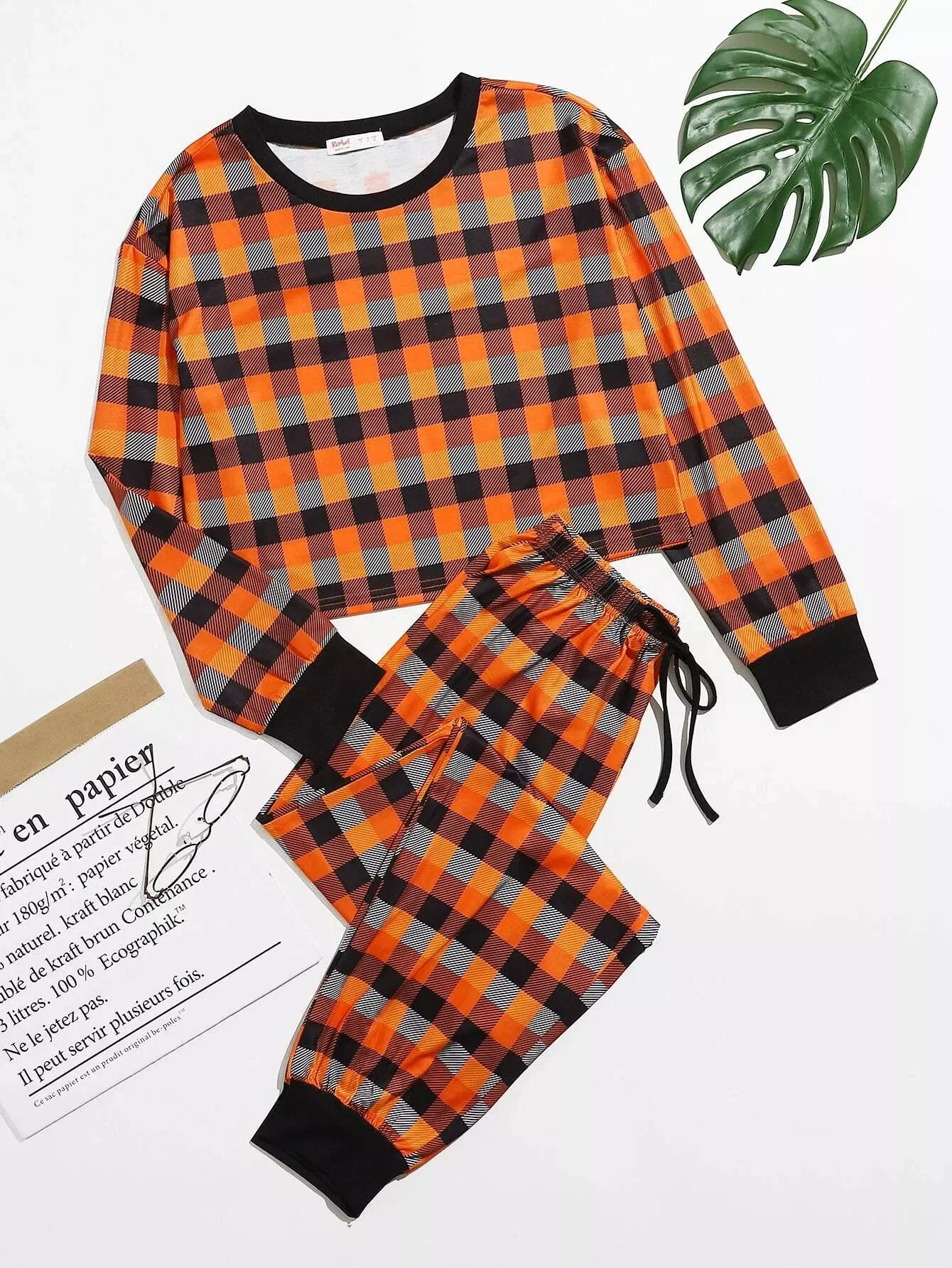 طقم بنطلون بيجامة بخصر مطاطي منقوش