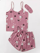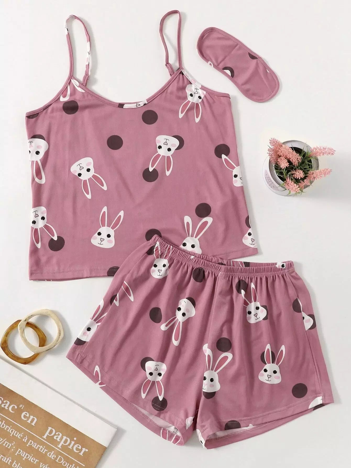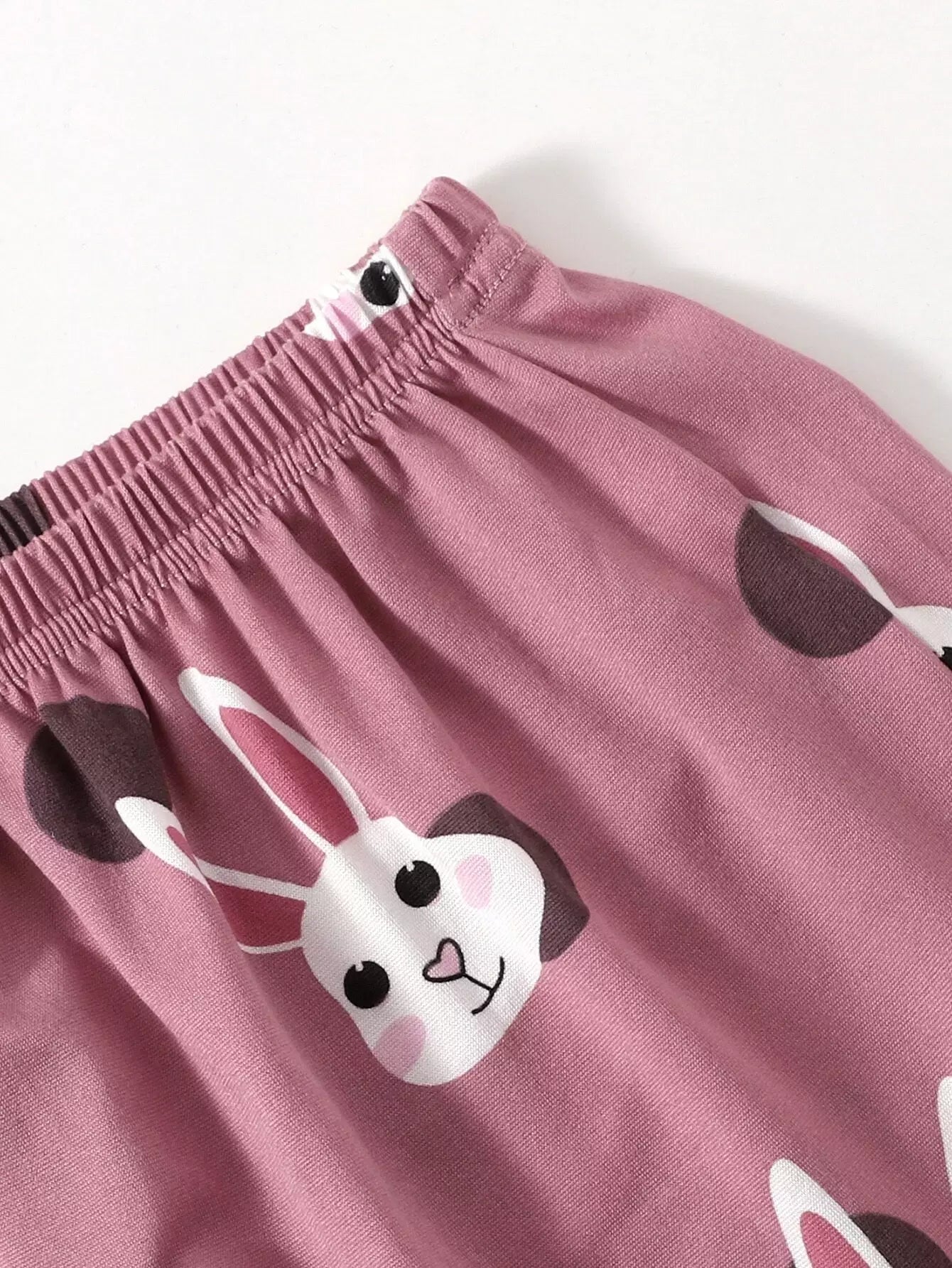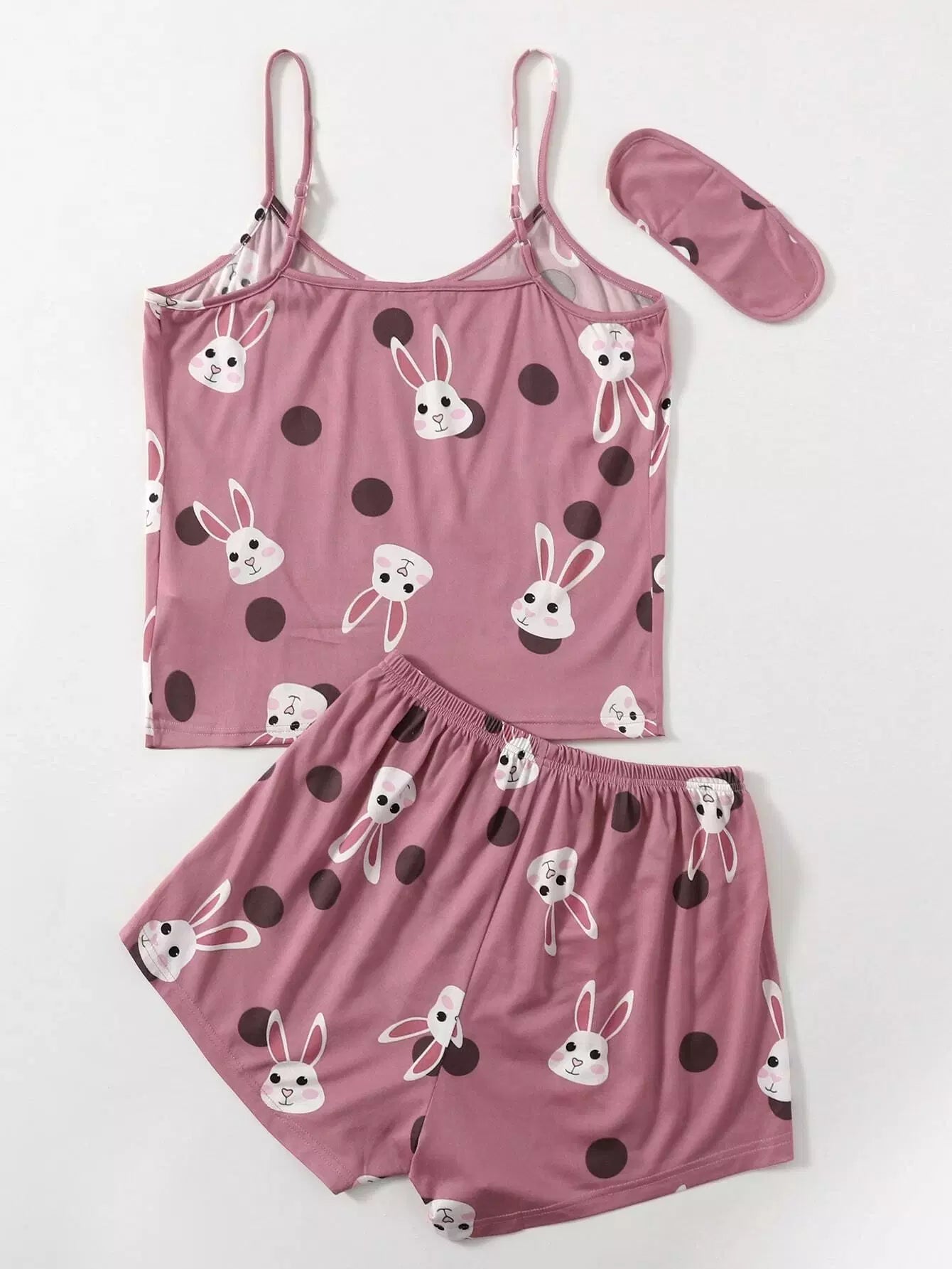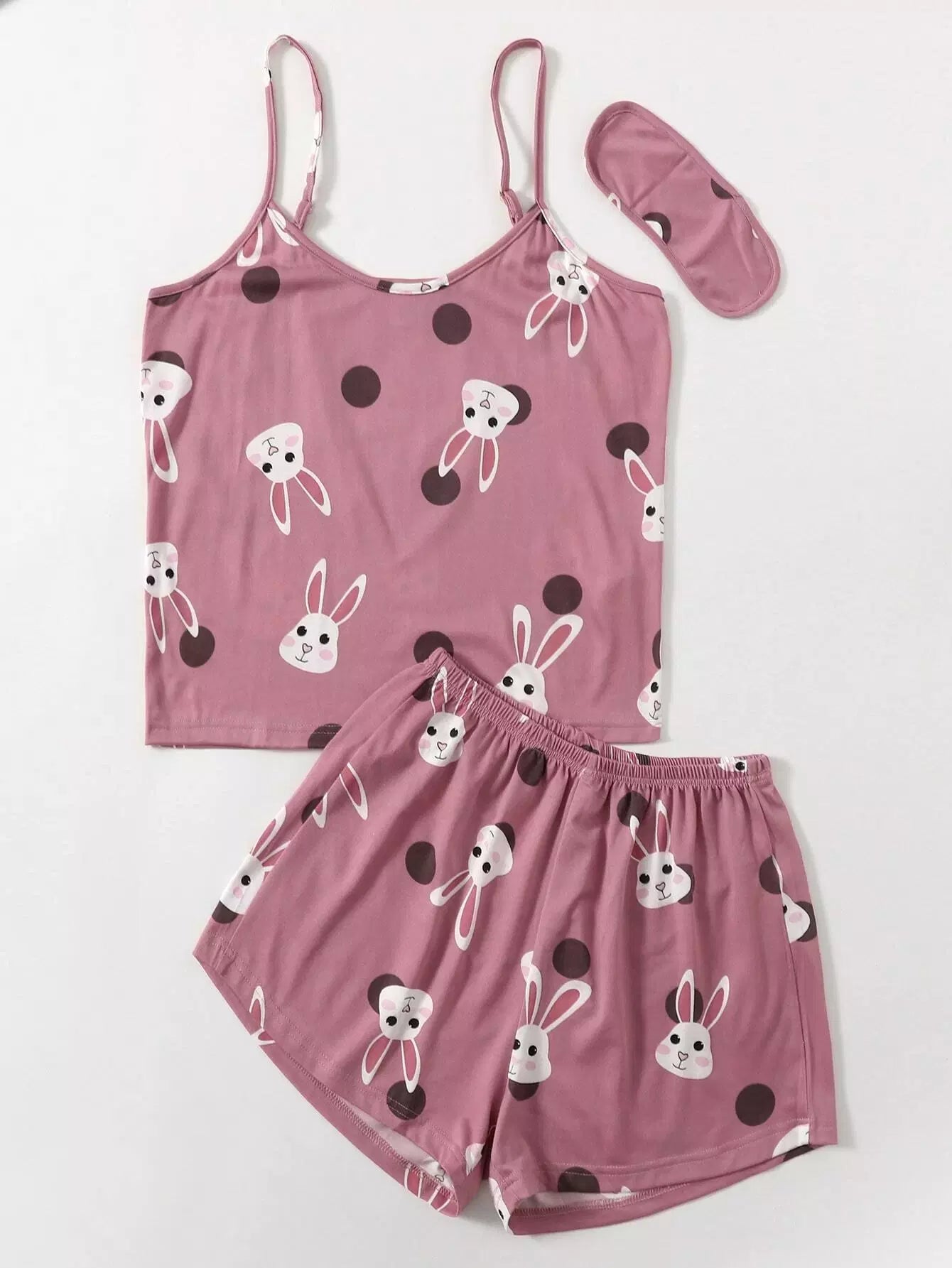 طقم بيجامة من توب وشورت بطبعة أرنب ونقاط البولكا