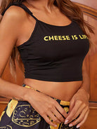 طقم بيجامة بنطلون قصير مطبوع عليه شعار الماركة مع شورت بنقشة جبن