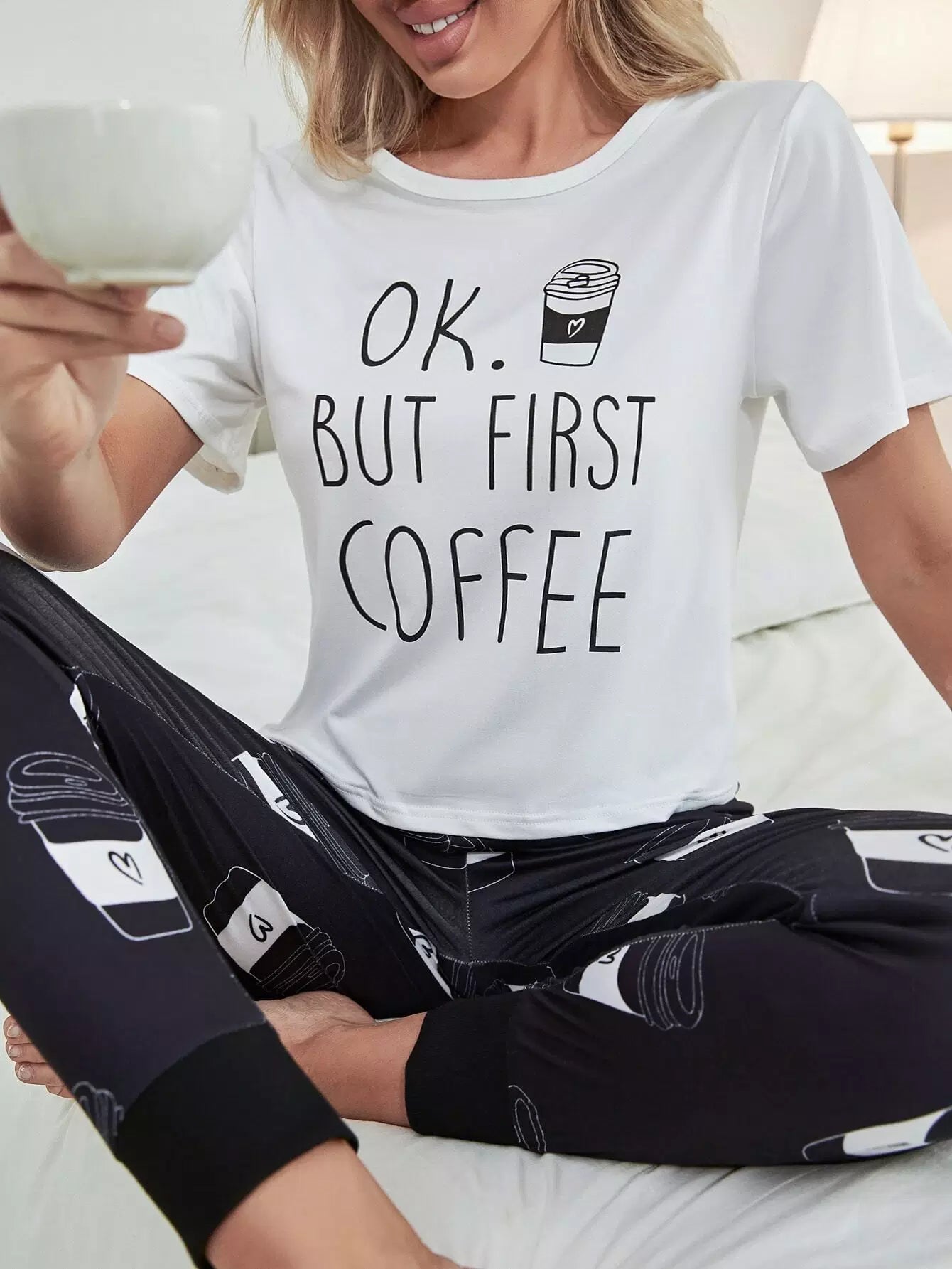 طقم بيجامة مطبوع عليه شعار مطبوع عليه رسومات