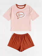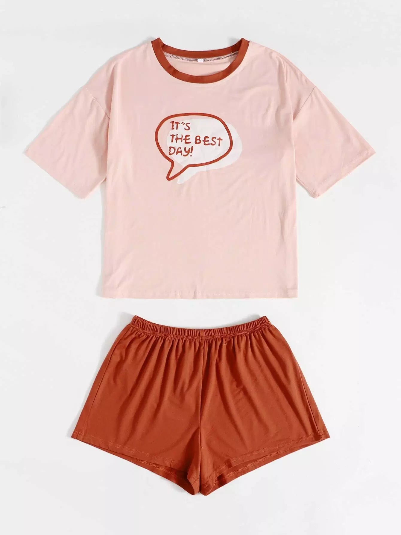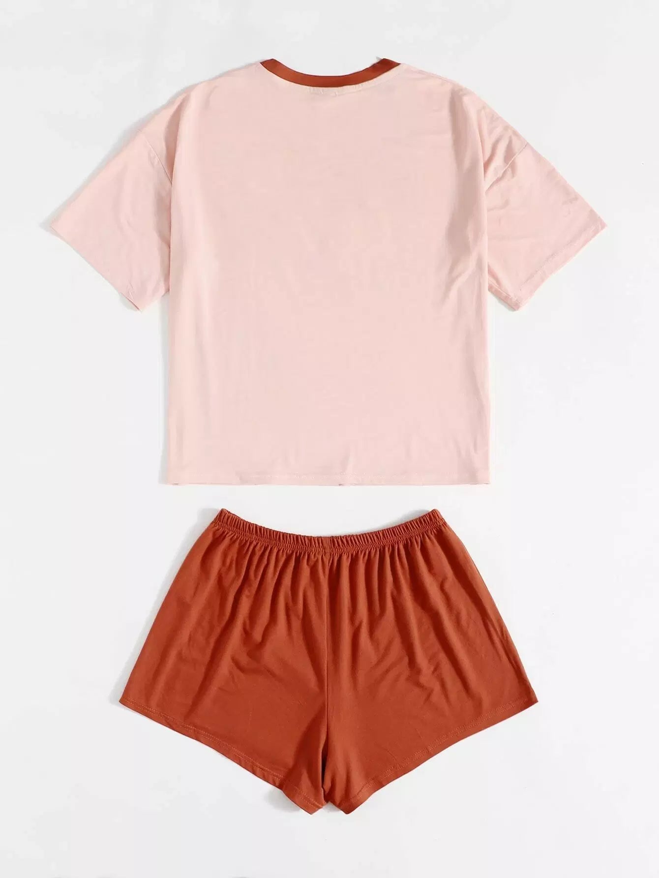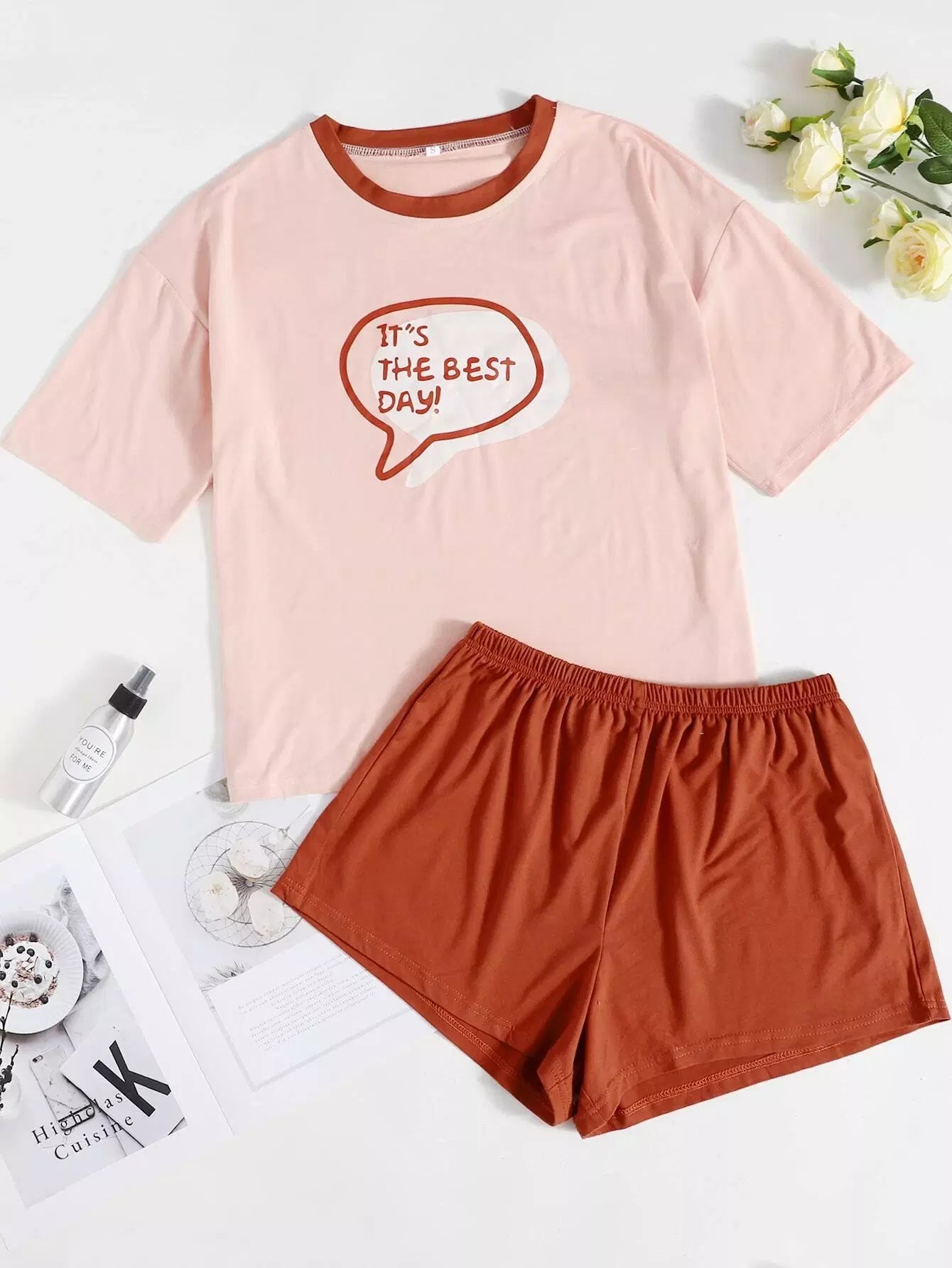 طقم بيجامة بشعار شعار جرافيك مع شورت بيجامة