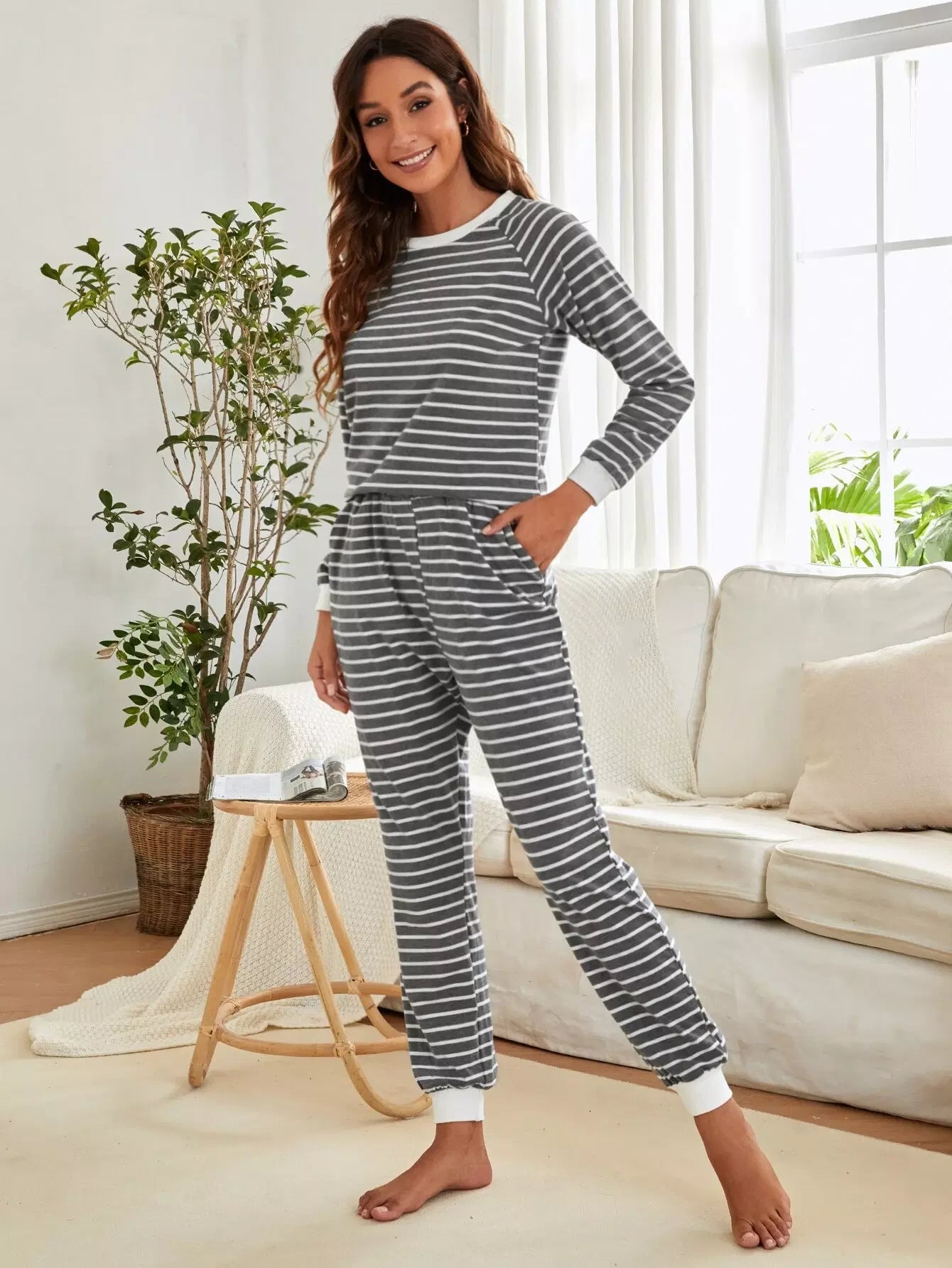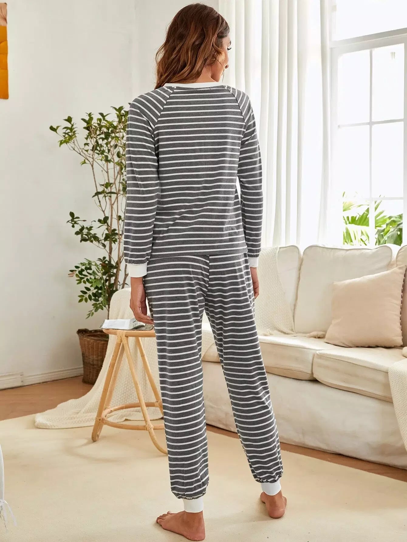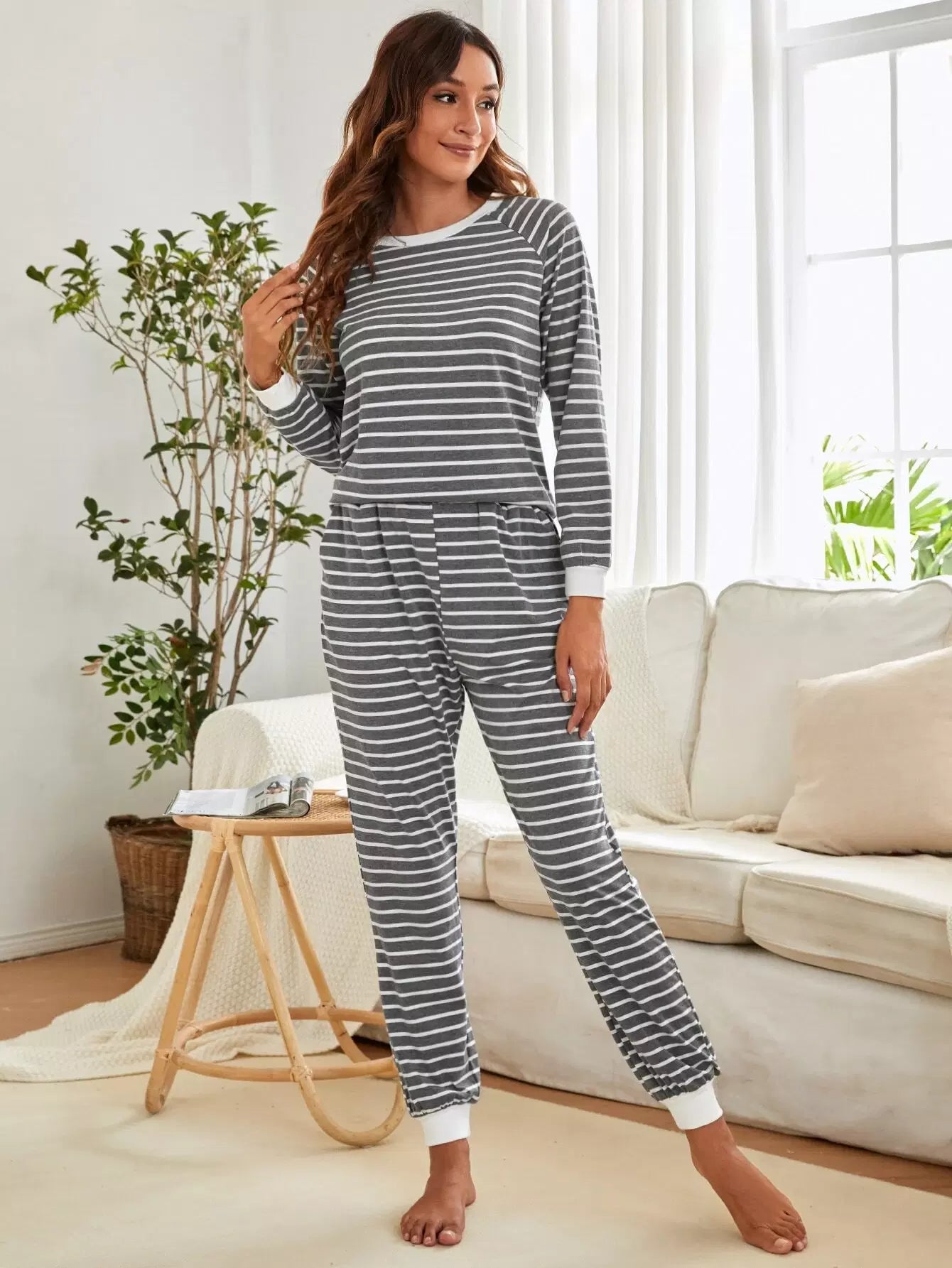 طقم بيجامة بأكمام مخططة بأكمام راجلان
