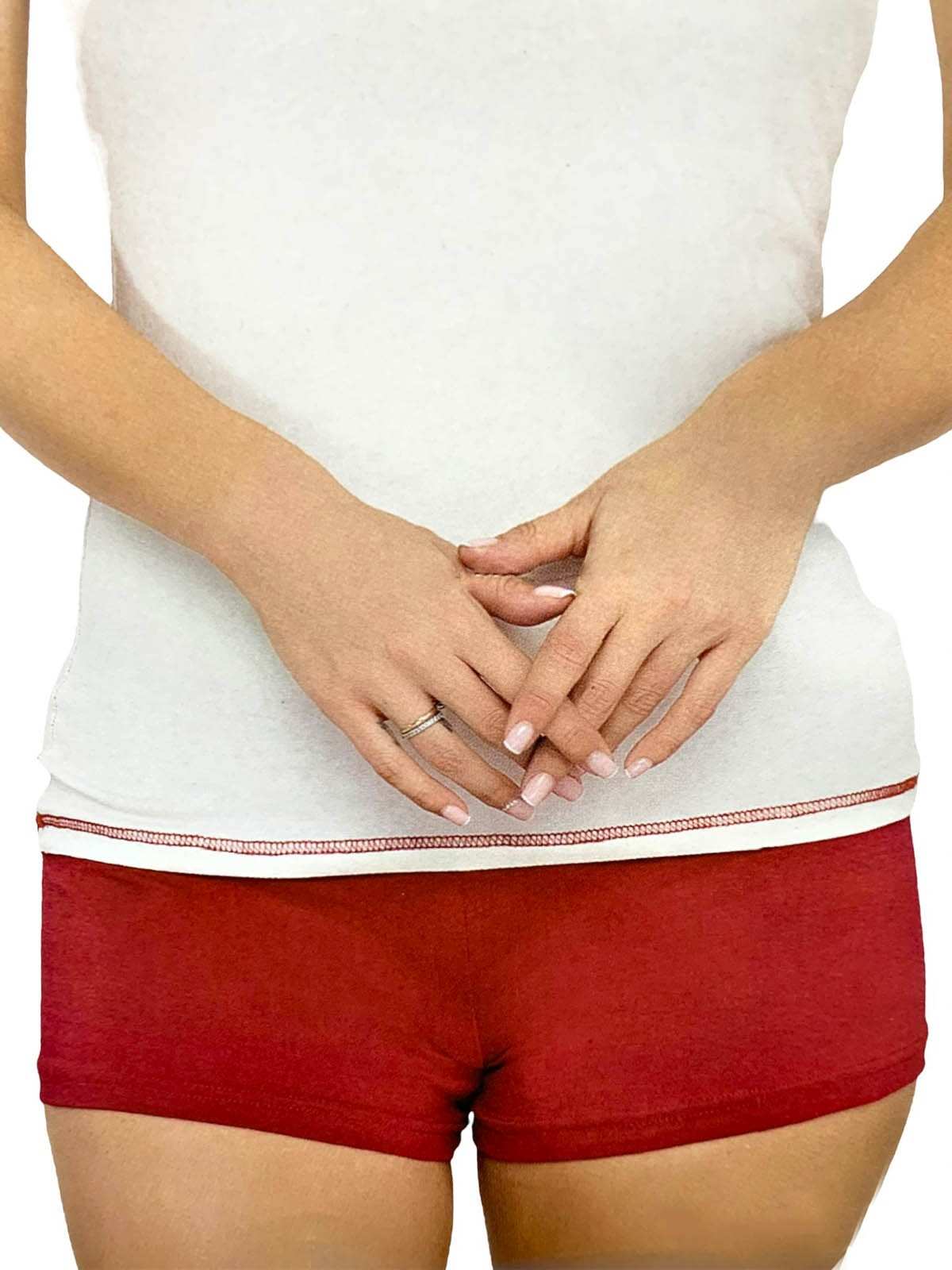 بيجامة نوم بيضاء بحدود حمراء قطعتين