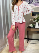 Women's Floral Print Pajama Set With Contrast Trim, Fall Clothes