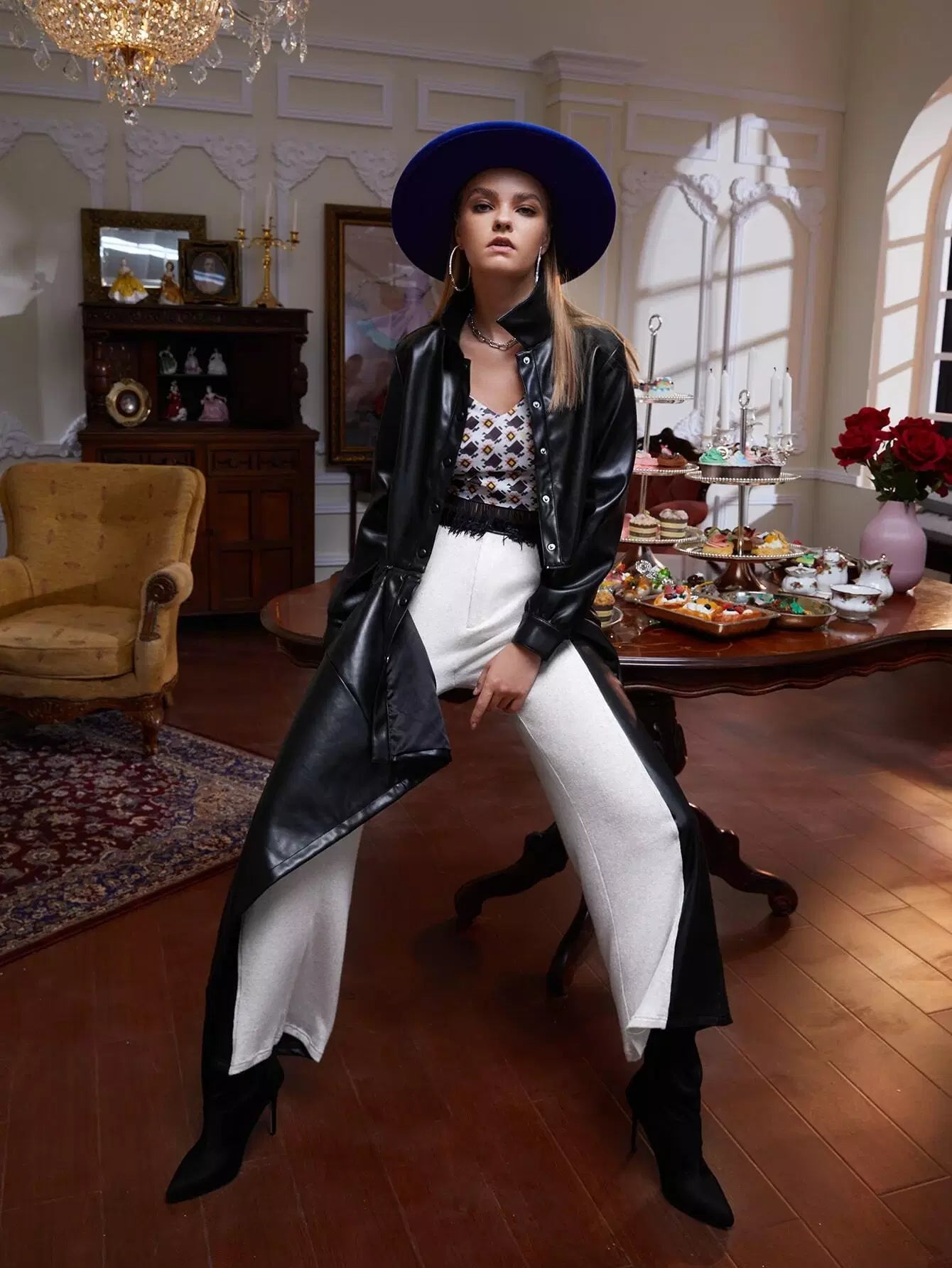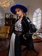 معطف جلد PU قابل للإزالة بأزرار أمامية بدون حزام