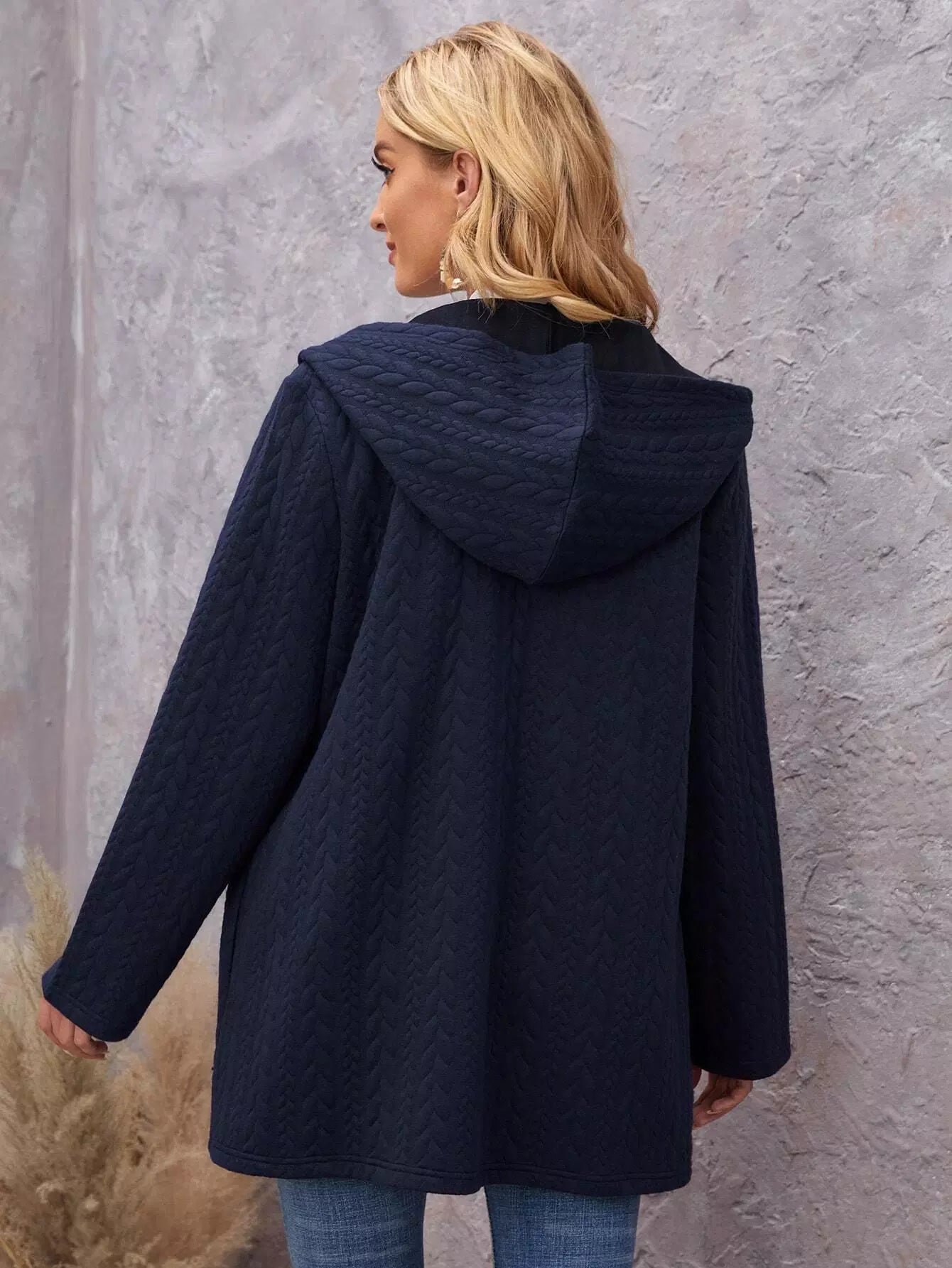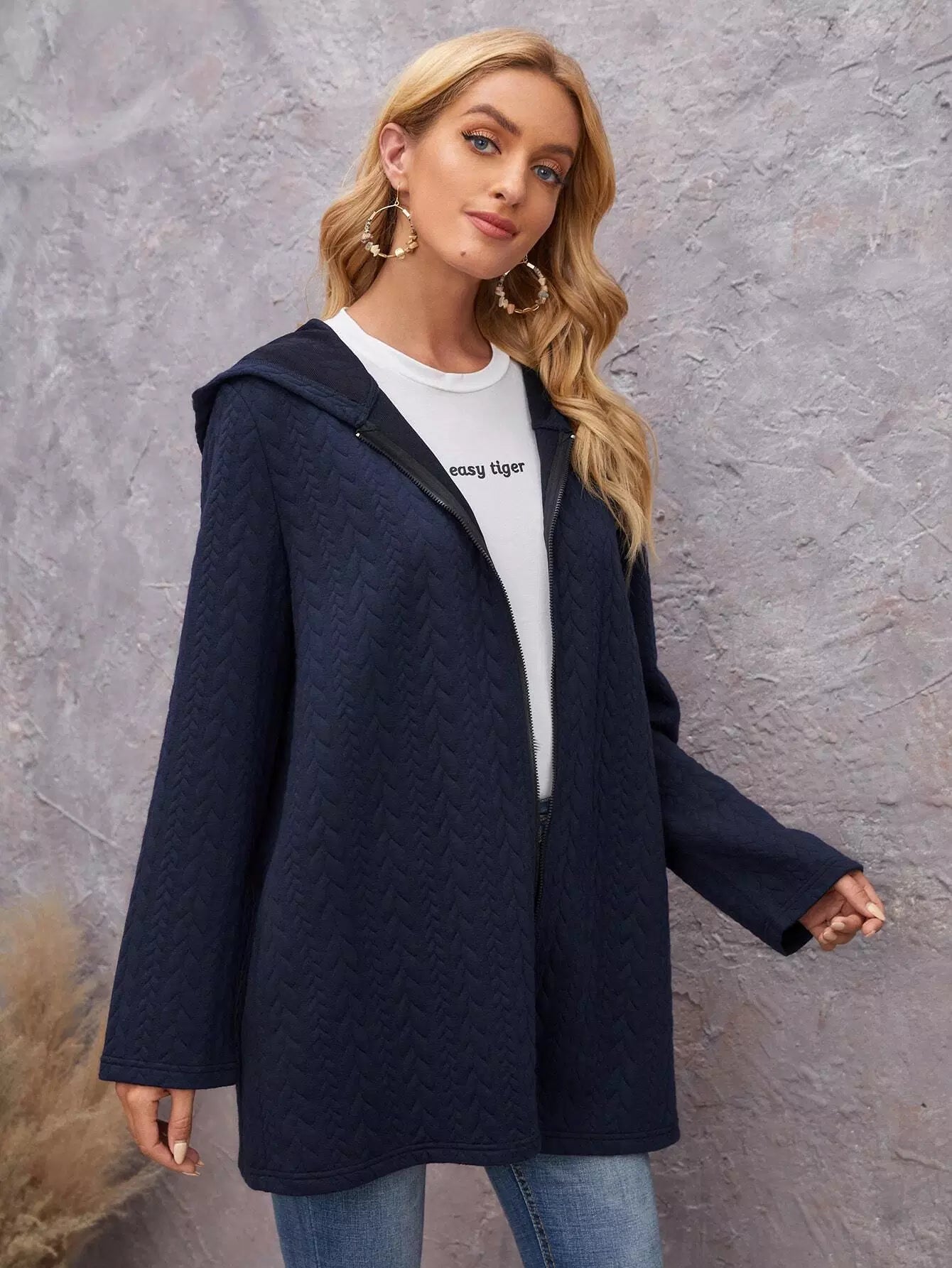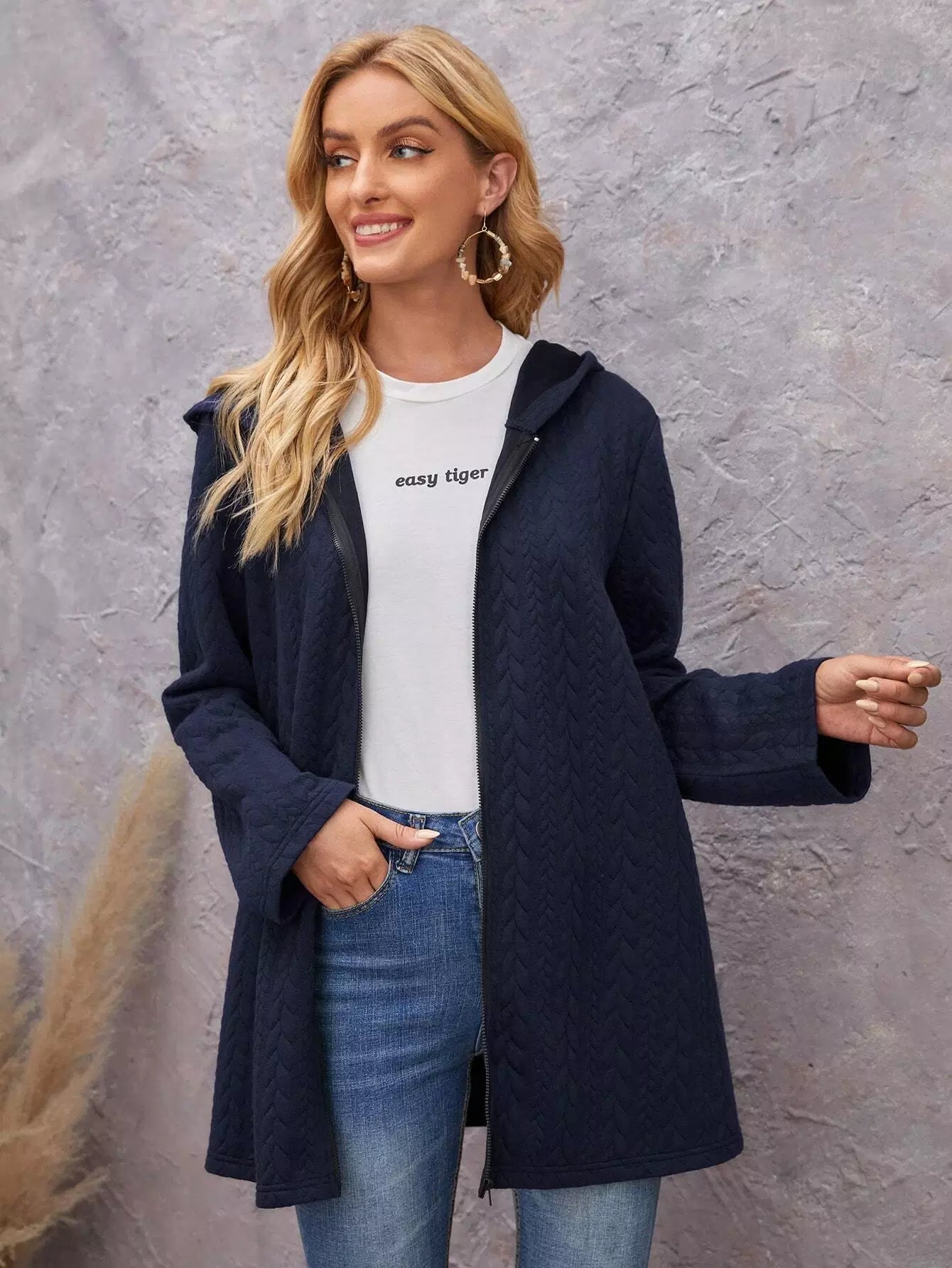 معطف بقبعة بغطاء للرأس محبوك بسحاب كابل