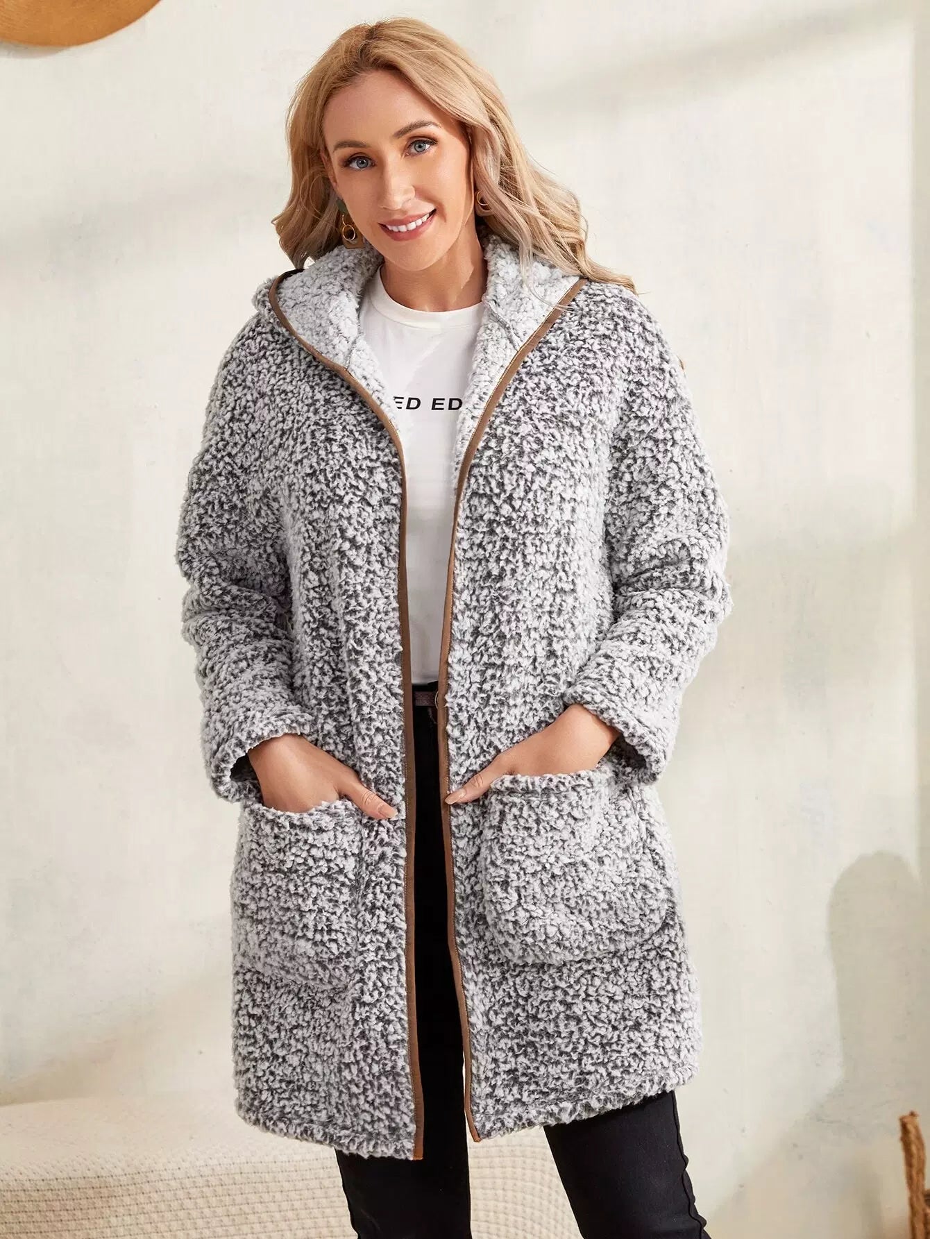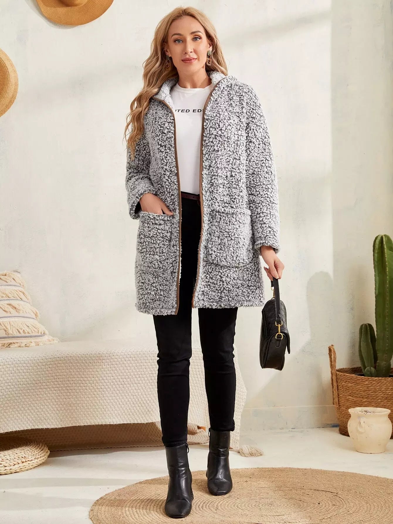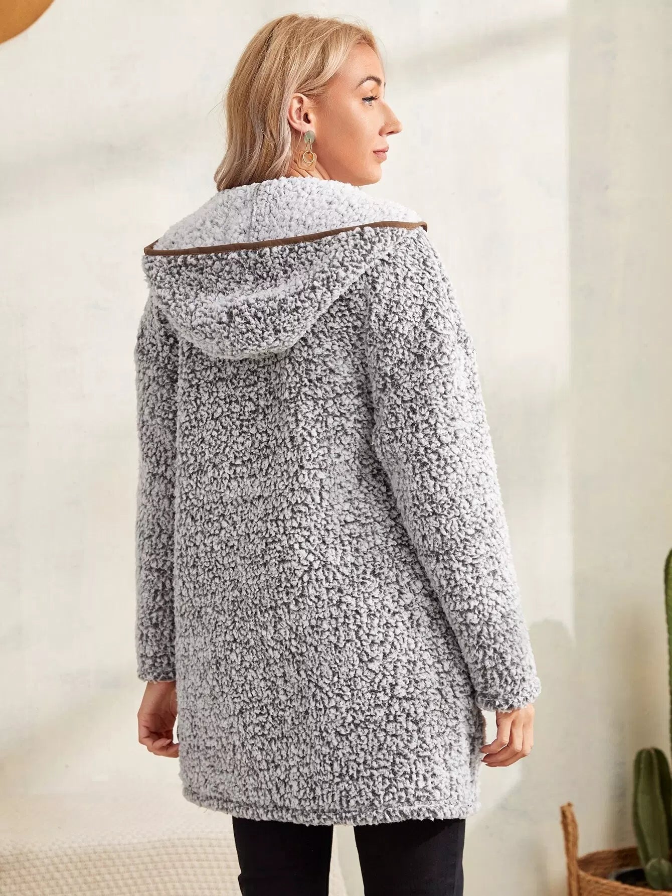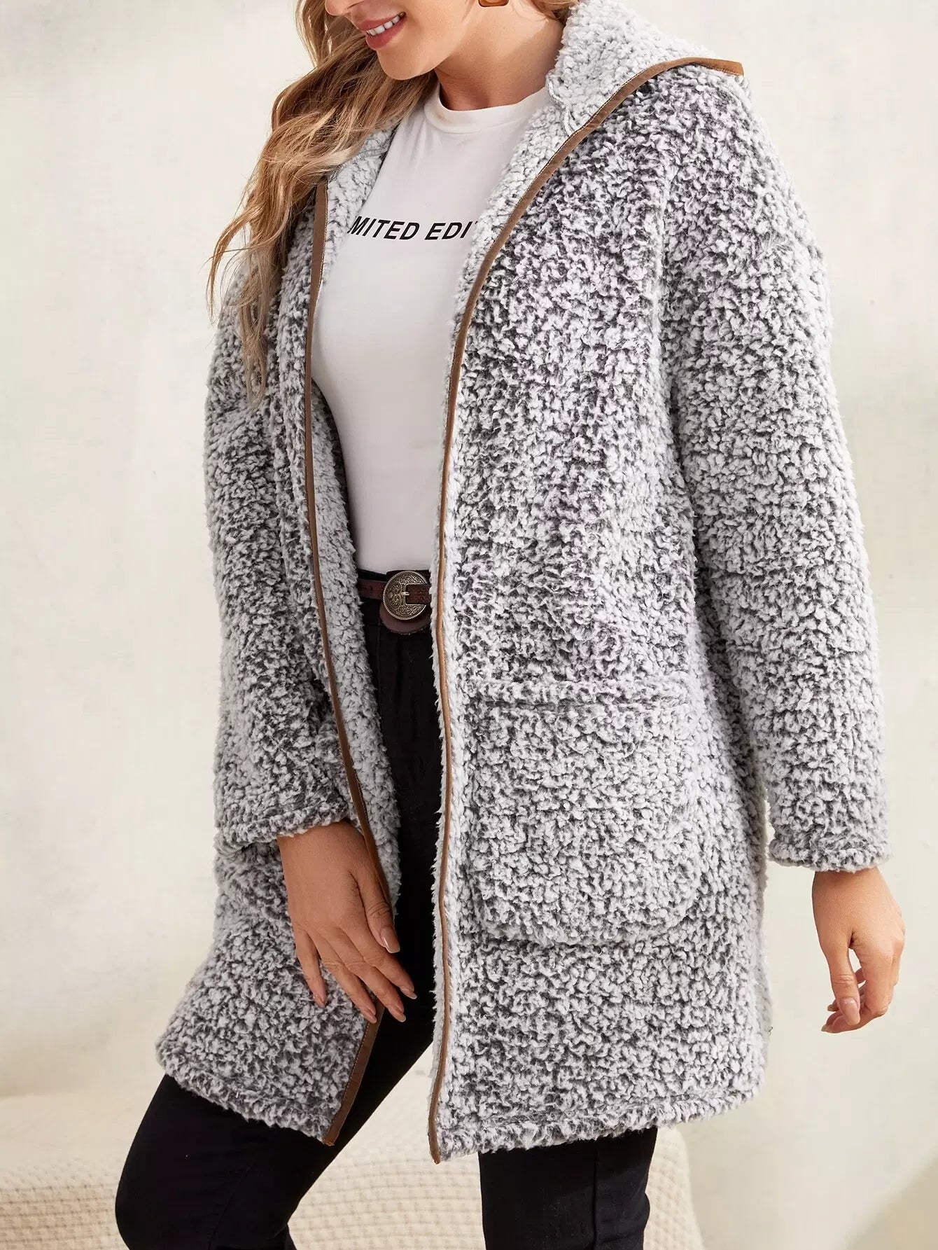 معطف فانيلا بغطاء منسدل منسدل من الأمام بغطاء كتف أمامي بجيوب بلون مغاير