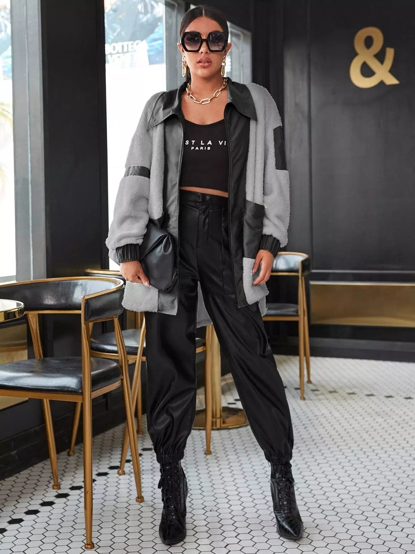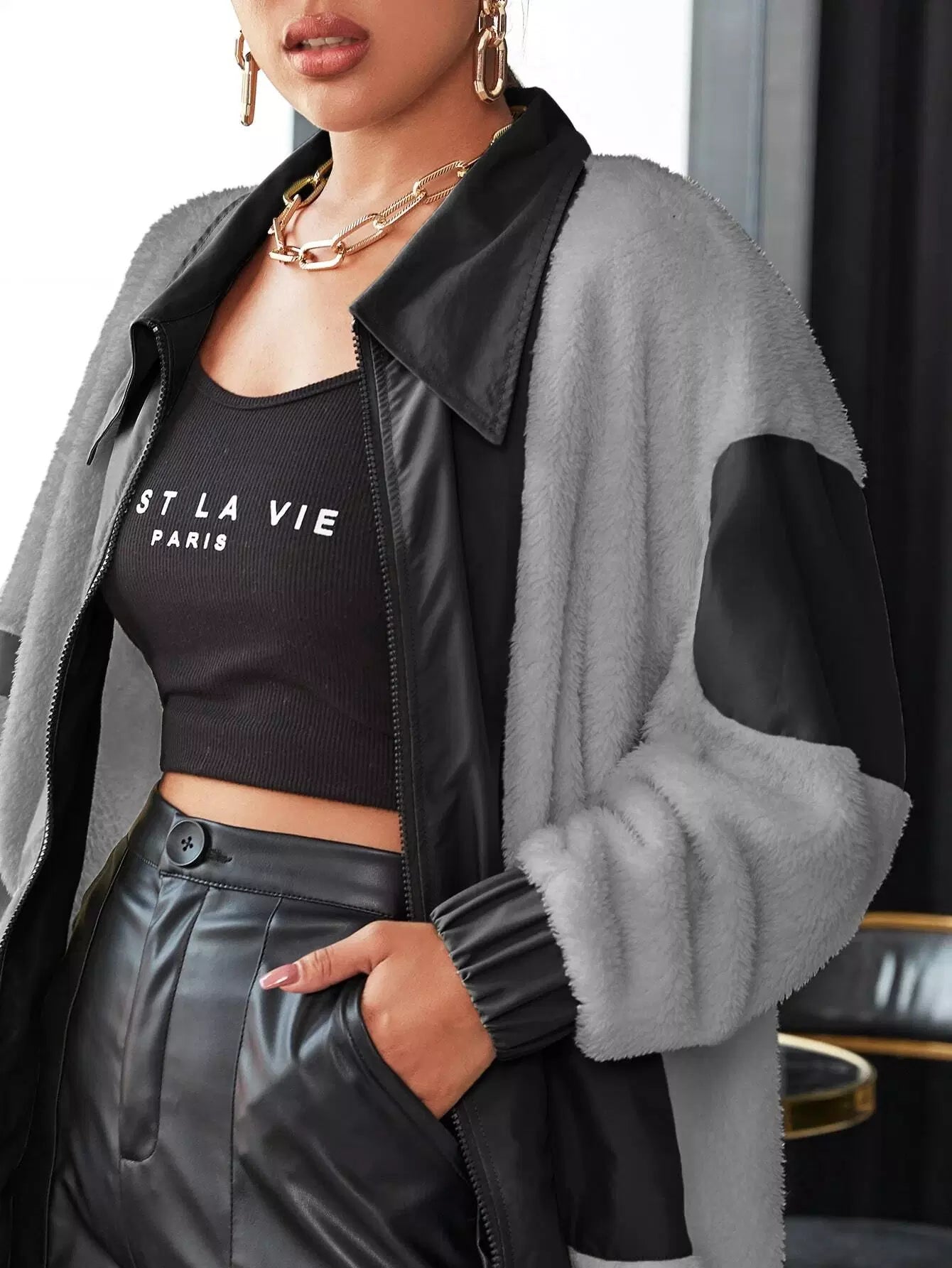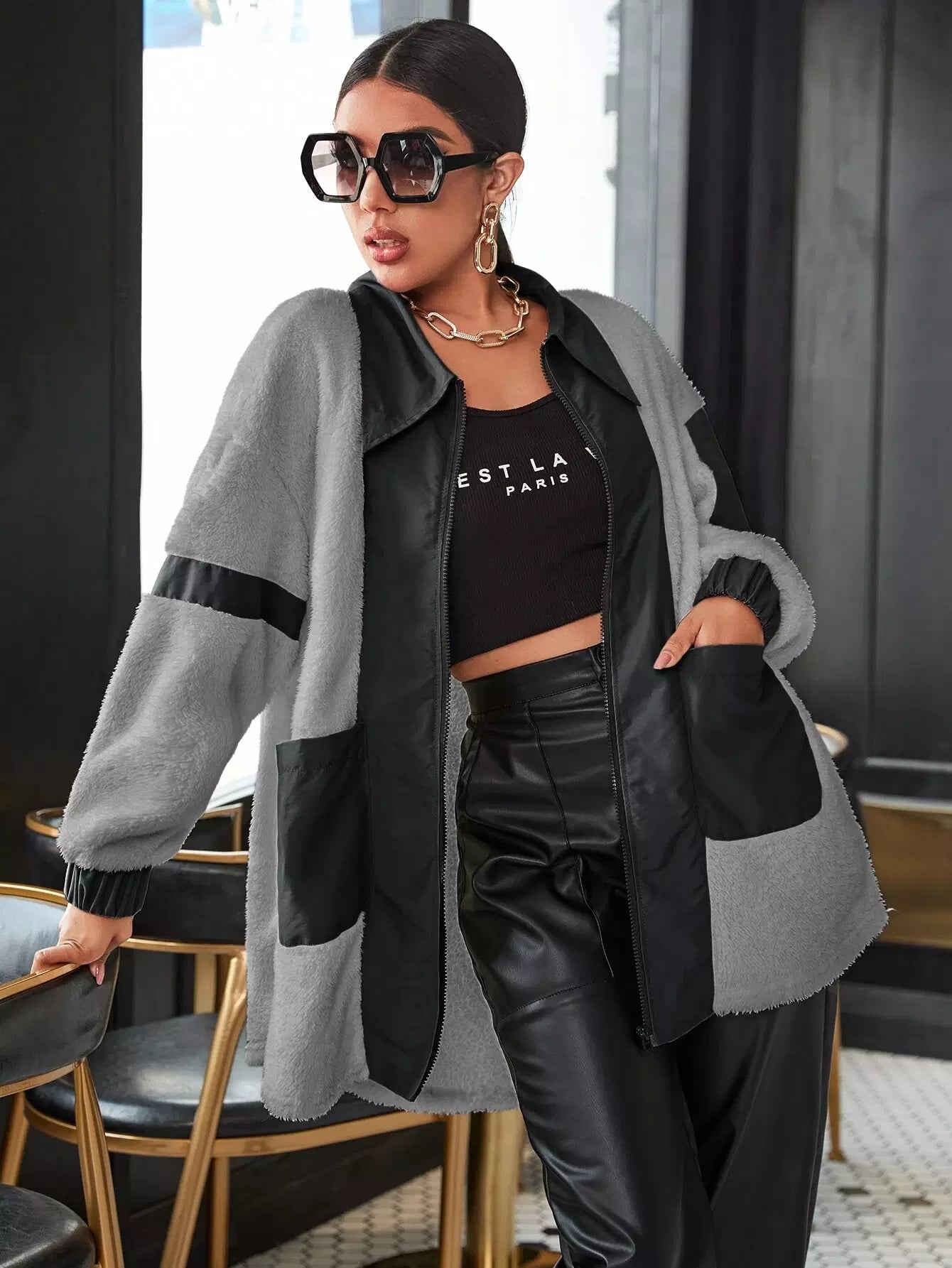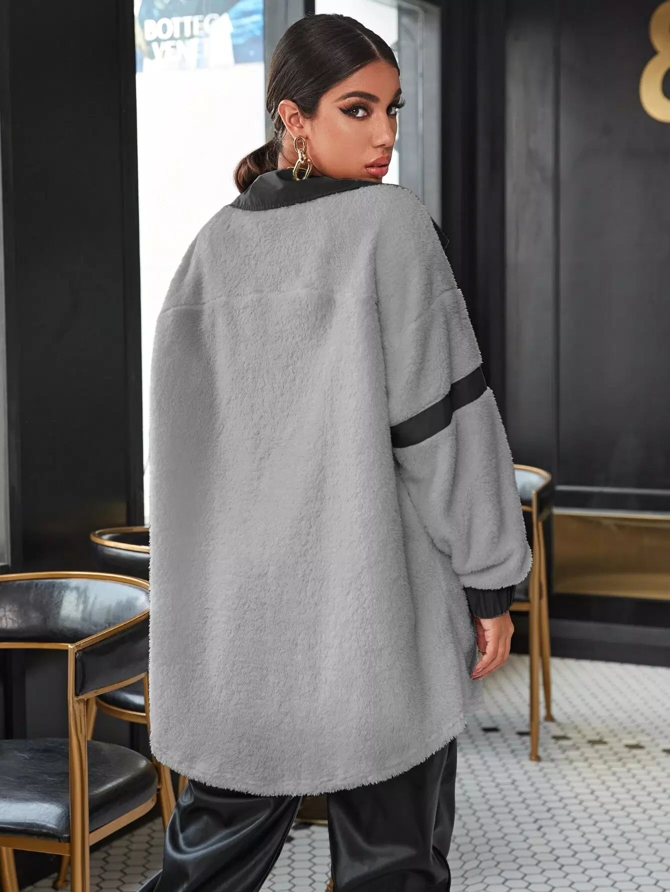 معطف تيدي بلون مغاير بسحّاب للأعلى