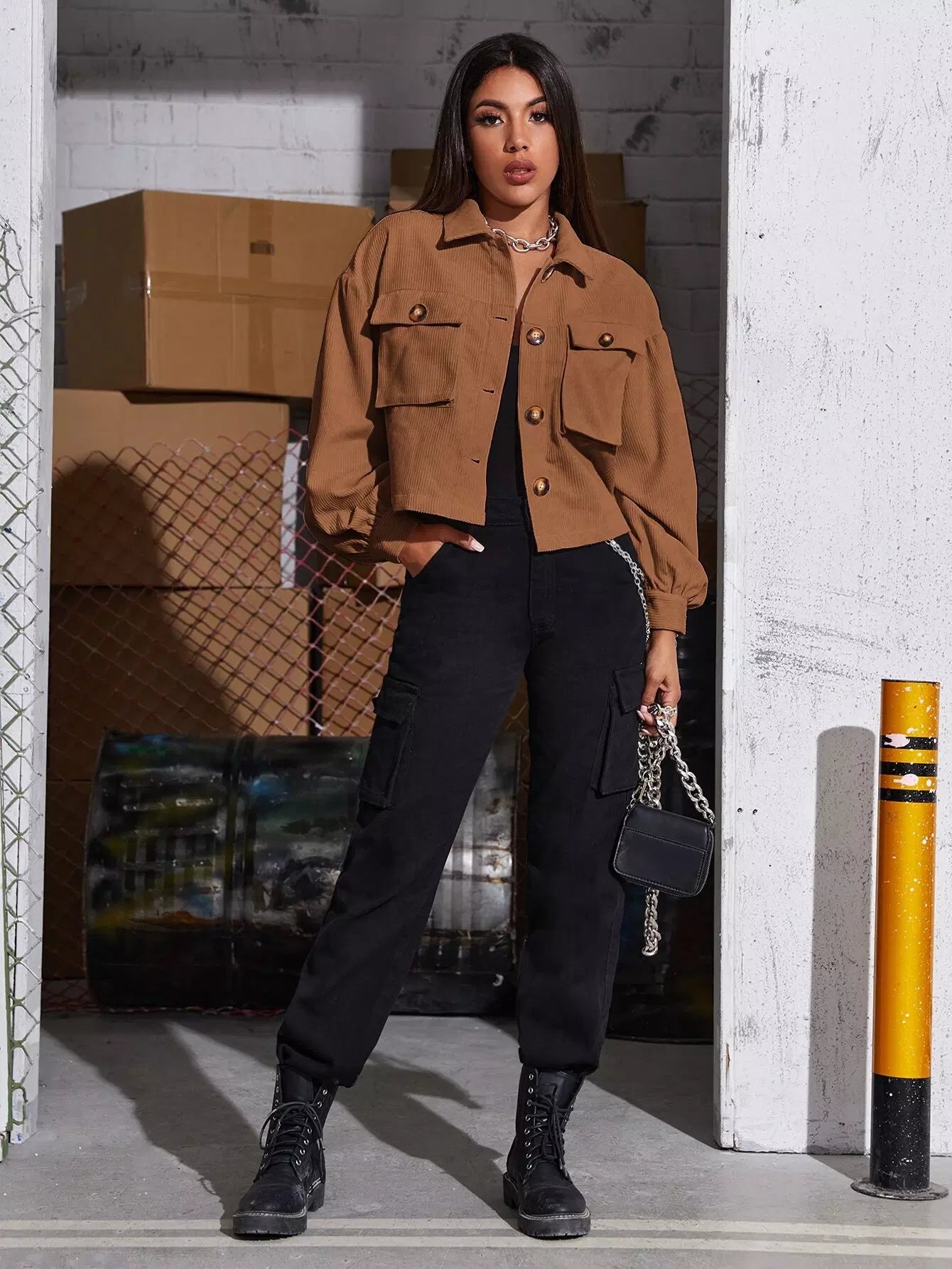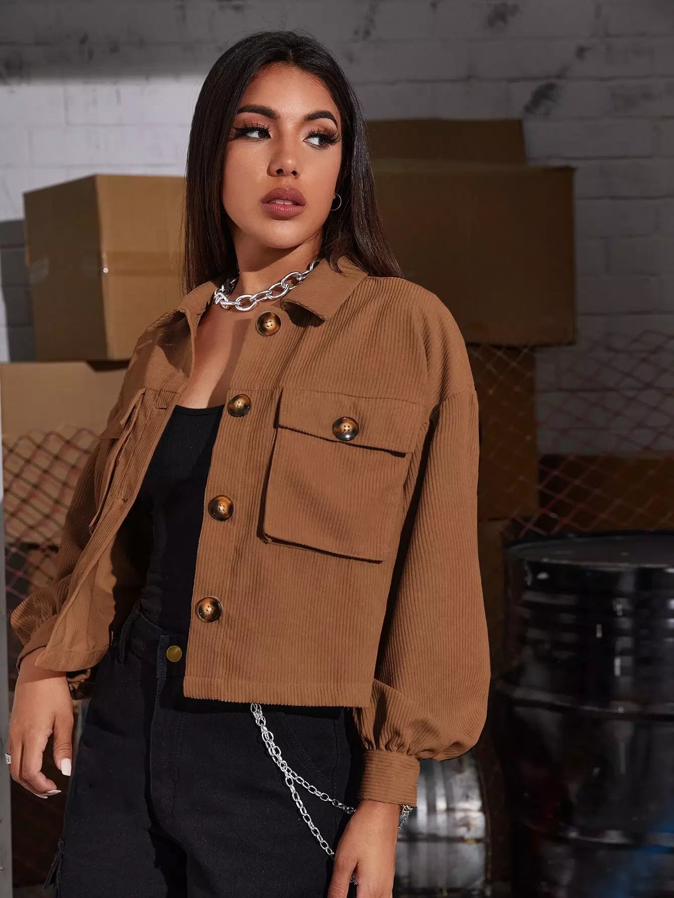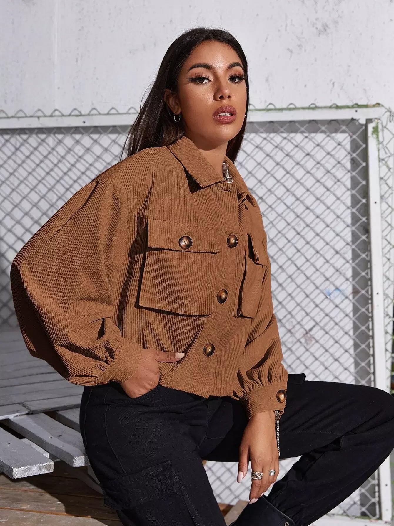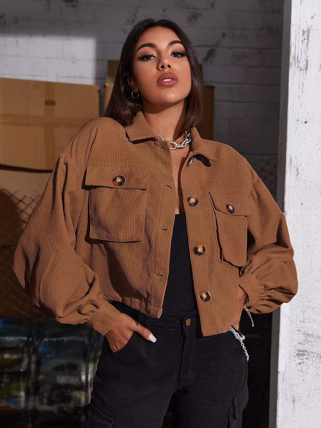 جاكيت قصير قصير بأزرار أمامية من الكوردروي