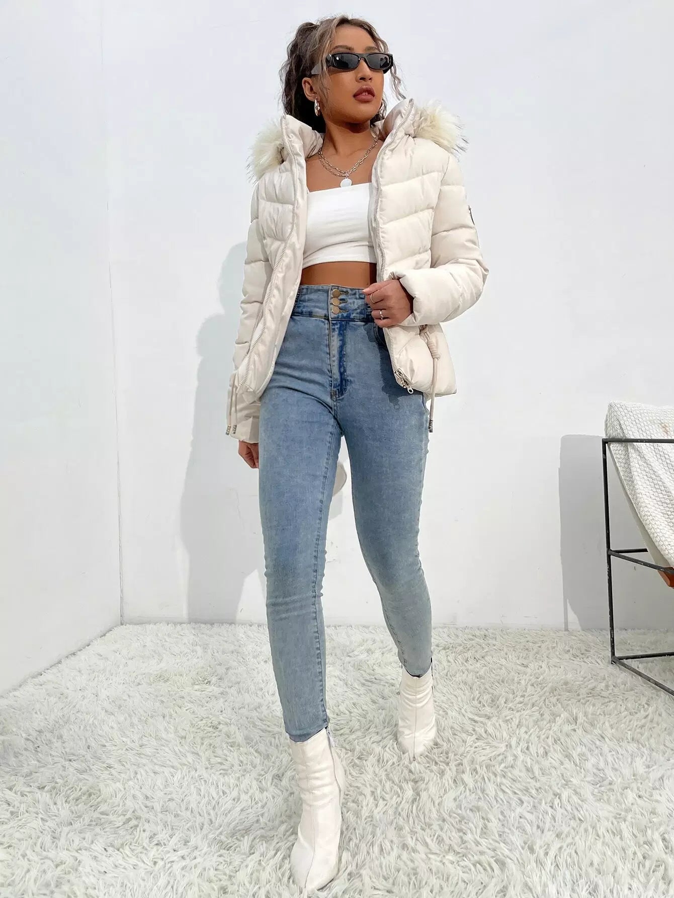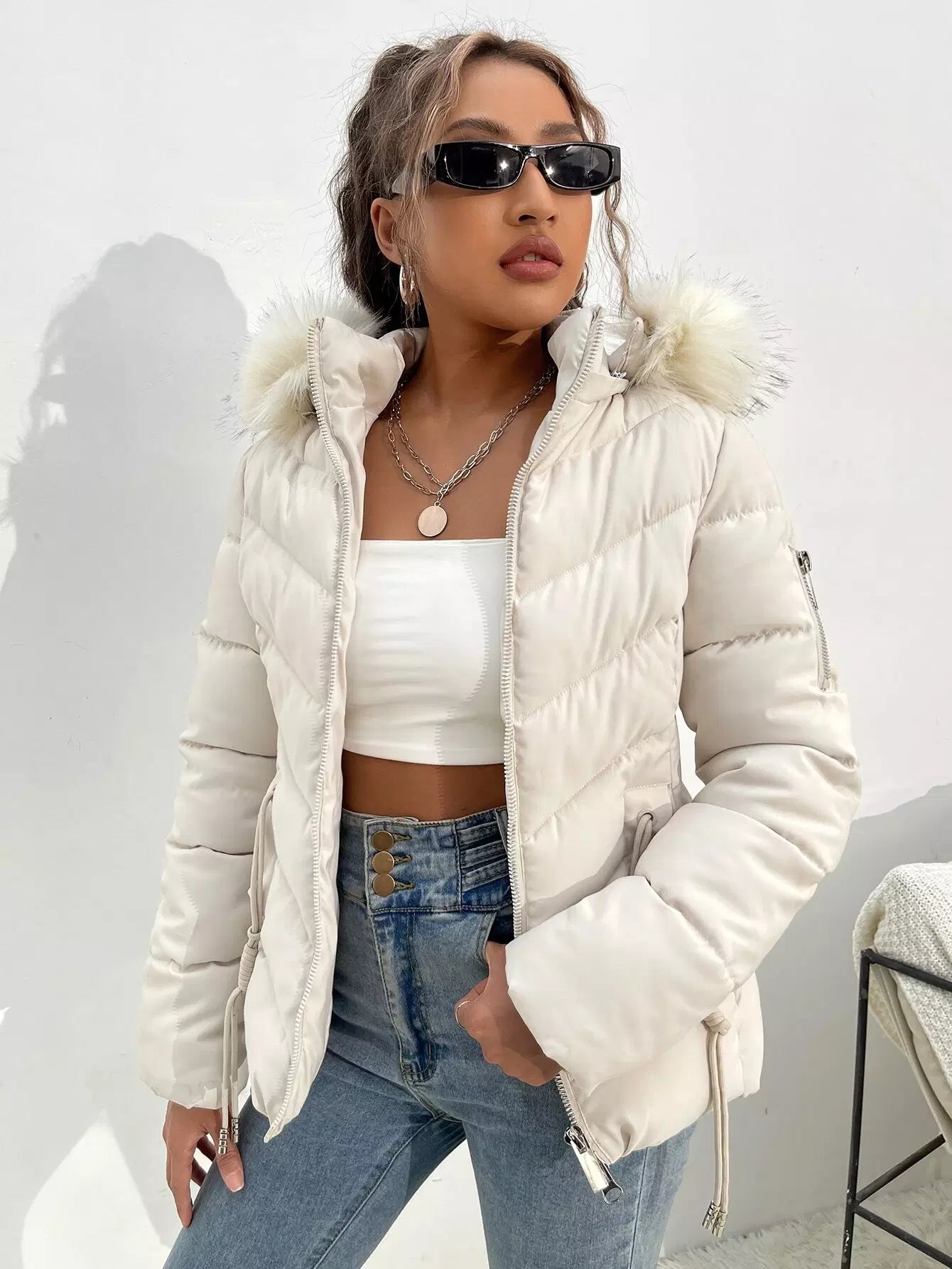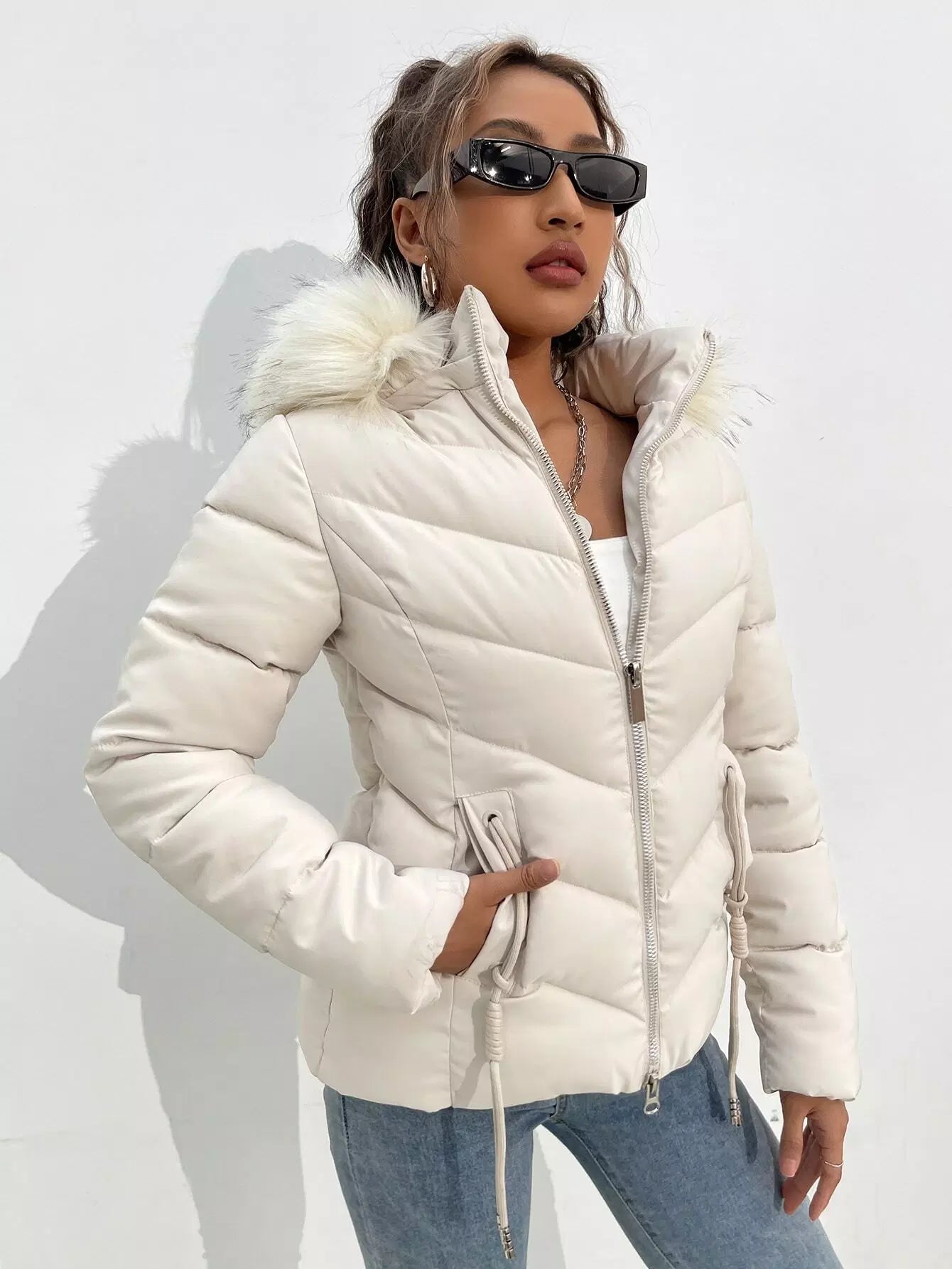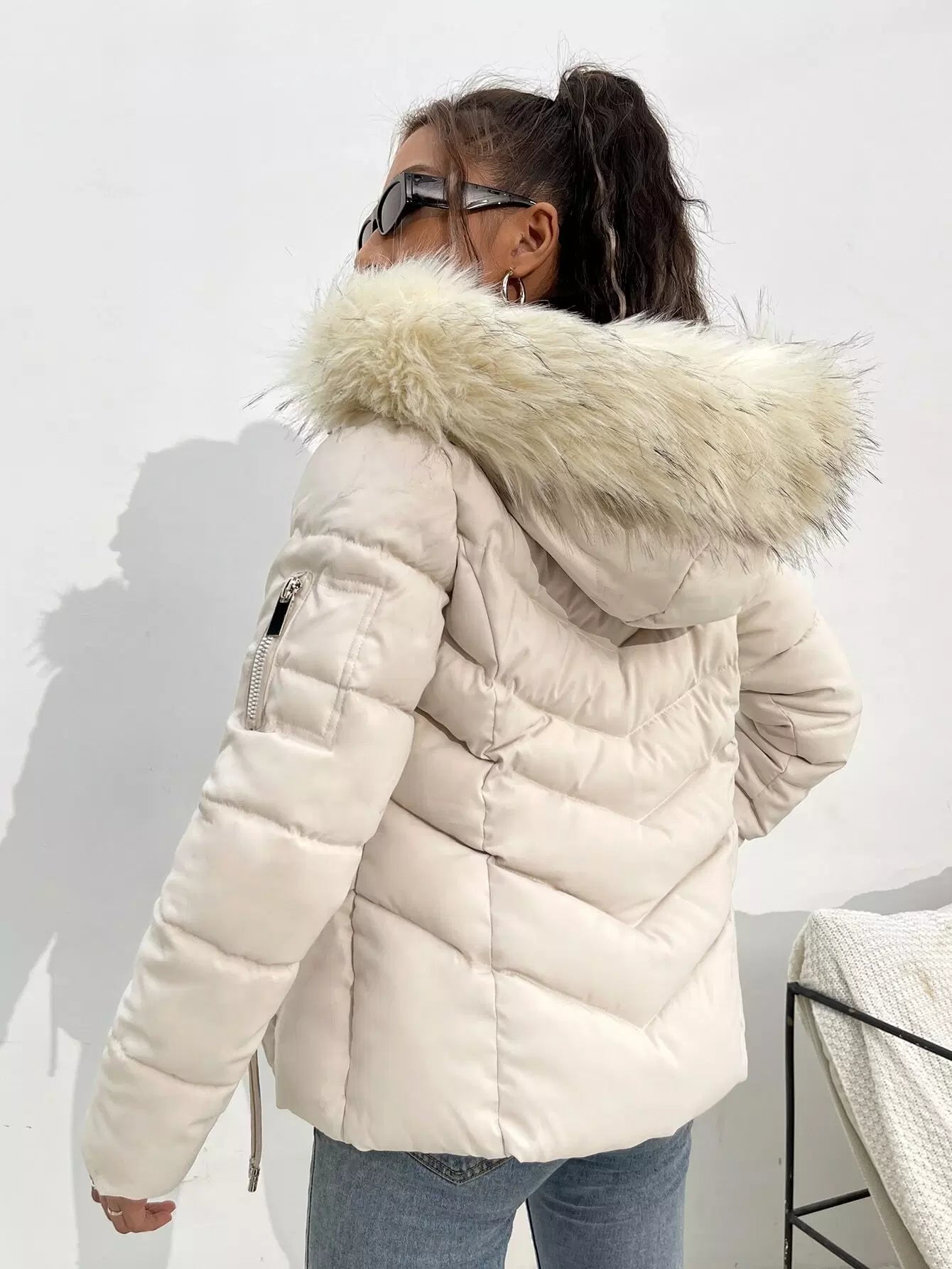 معطف شتوي بقبعة شتوية بغطاء للرأس برباط بسحاب