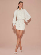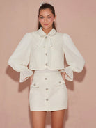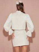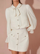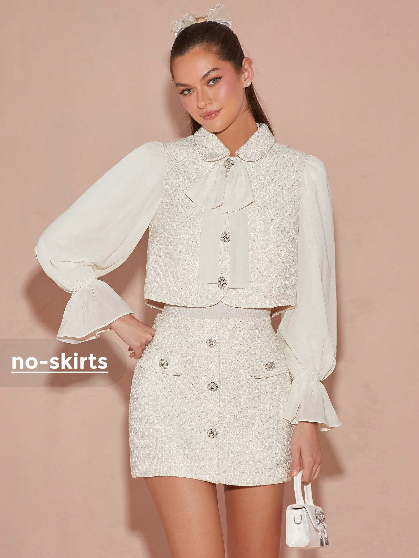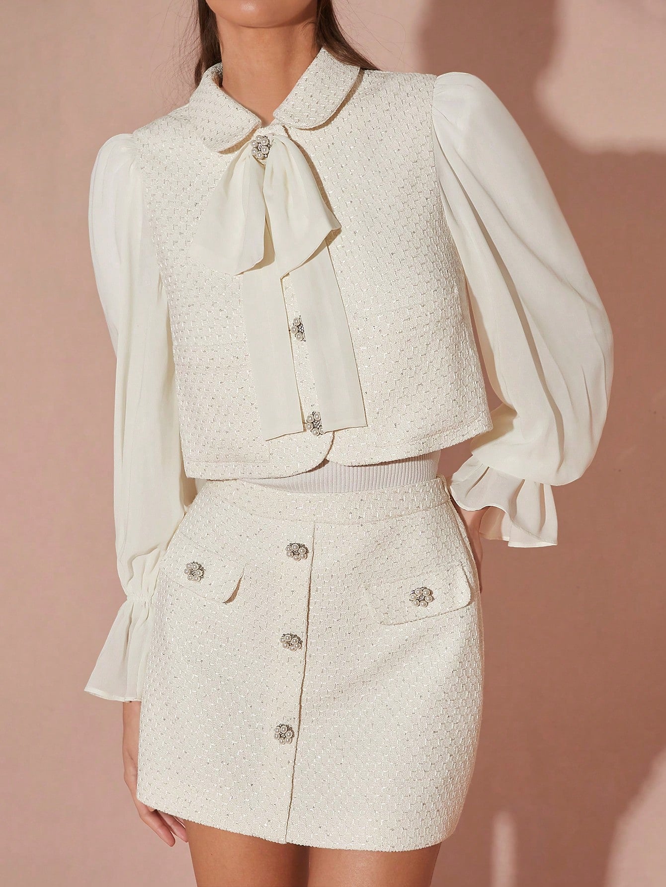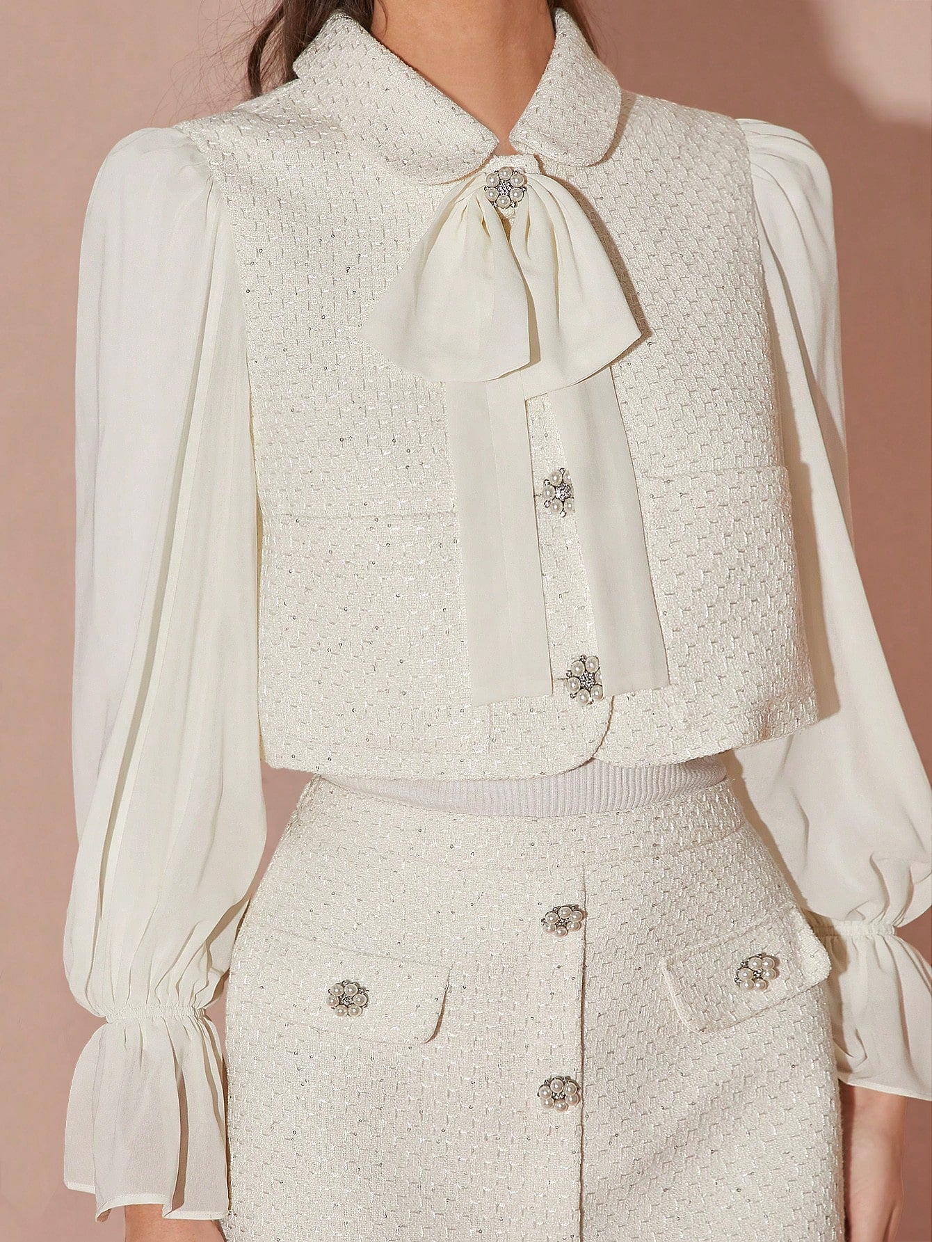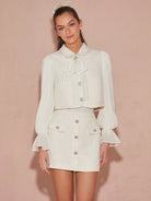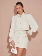 Enchnt Spring Summer Romantic Women's Apricot Sweet Elegant Bow Lapel Exquisite Pearl Button Decor Ruffle