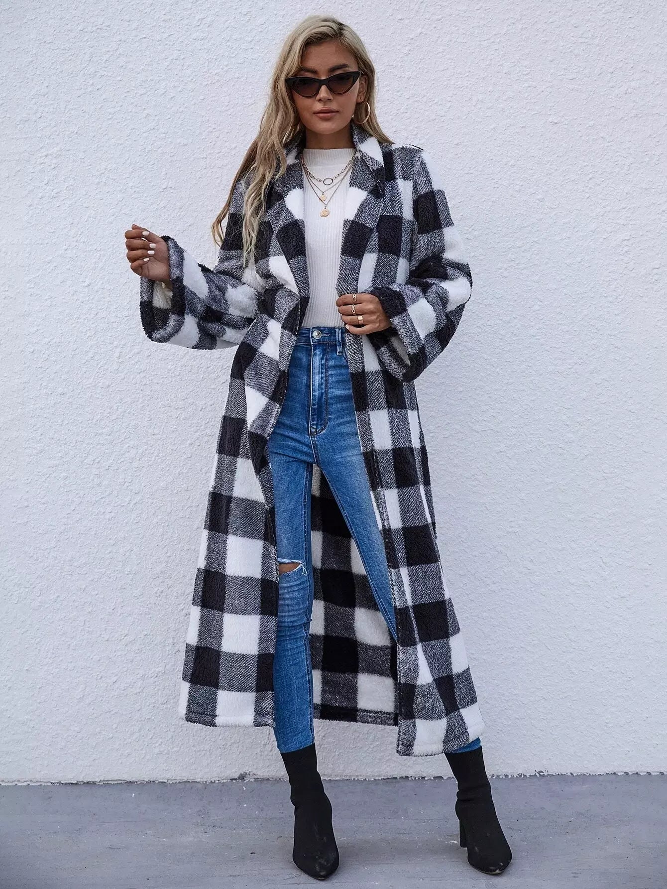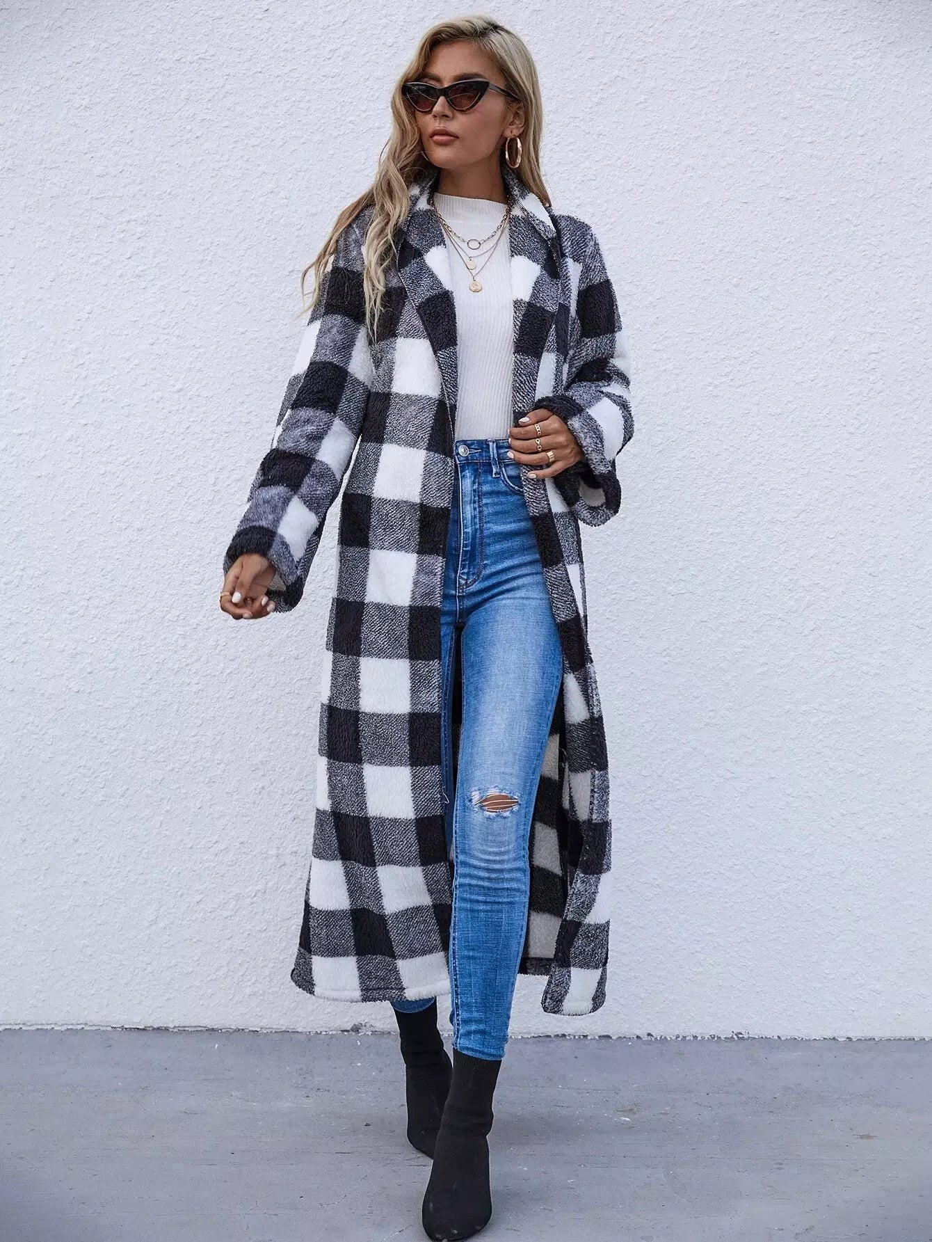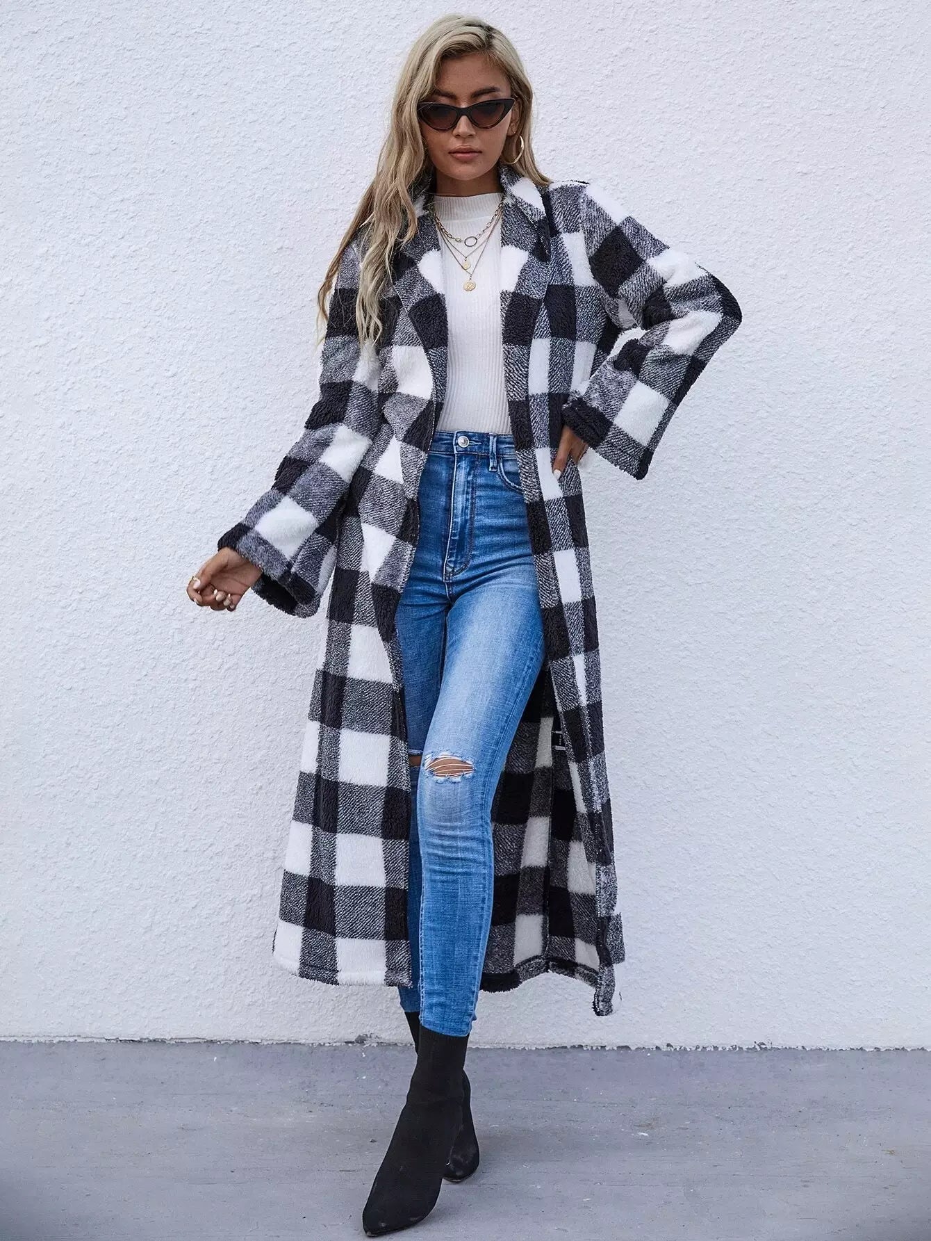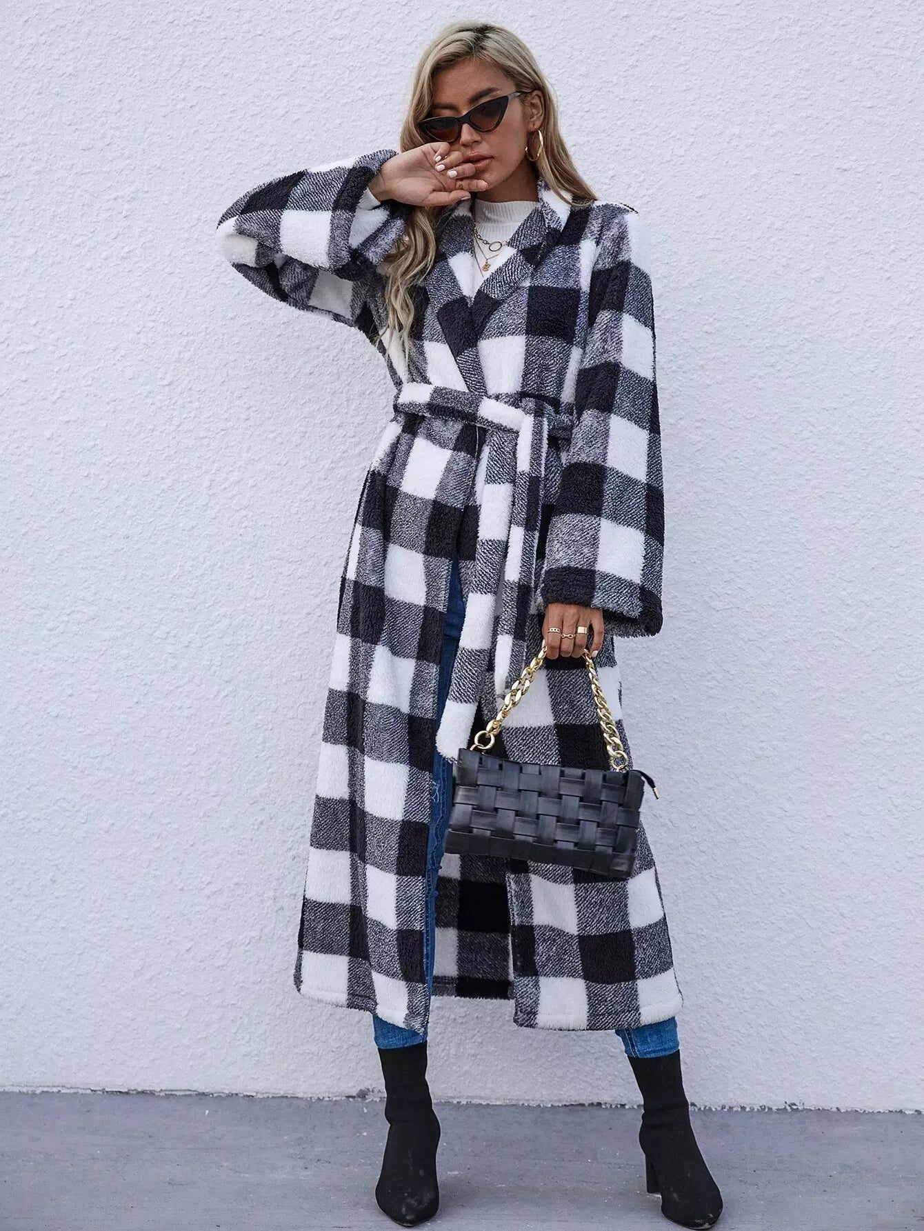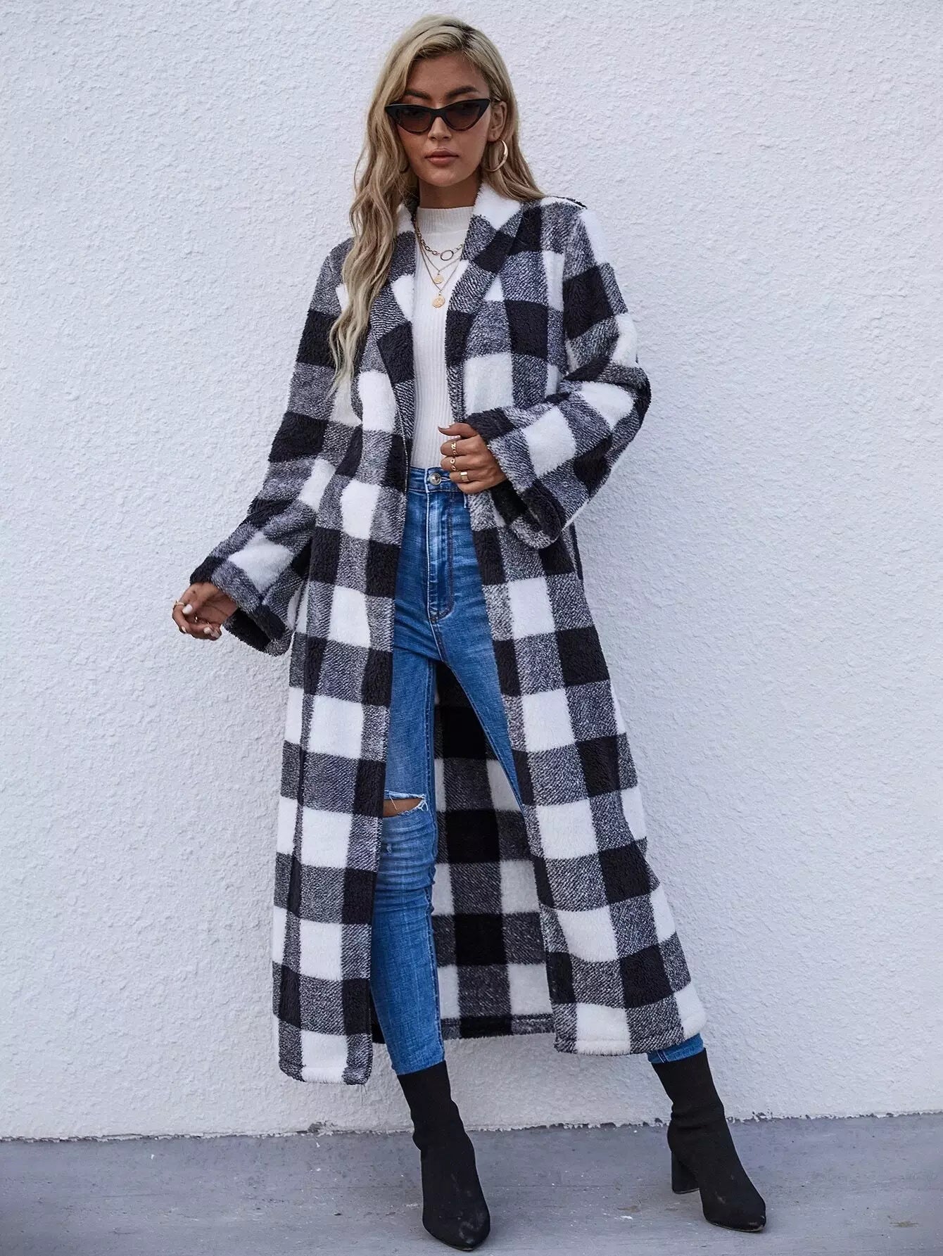 معطف الفانيلا بنمط القماش القطني بدون حزام