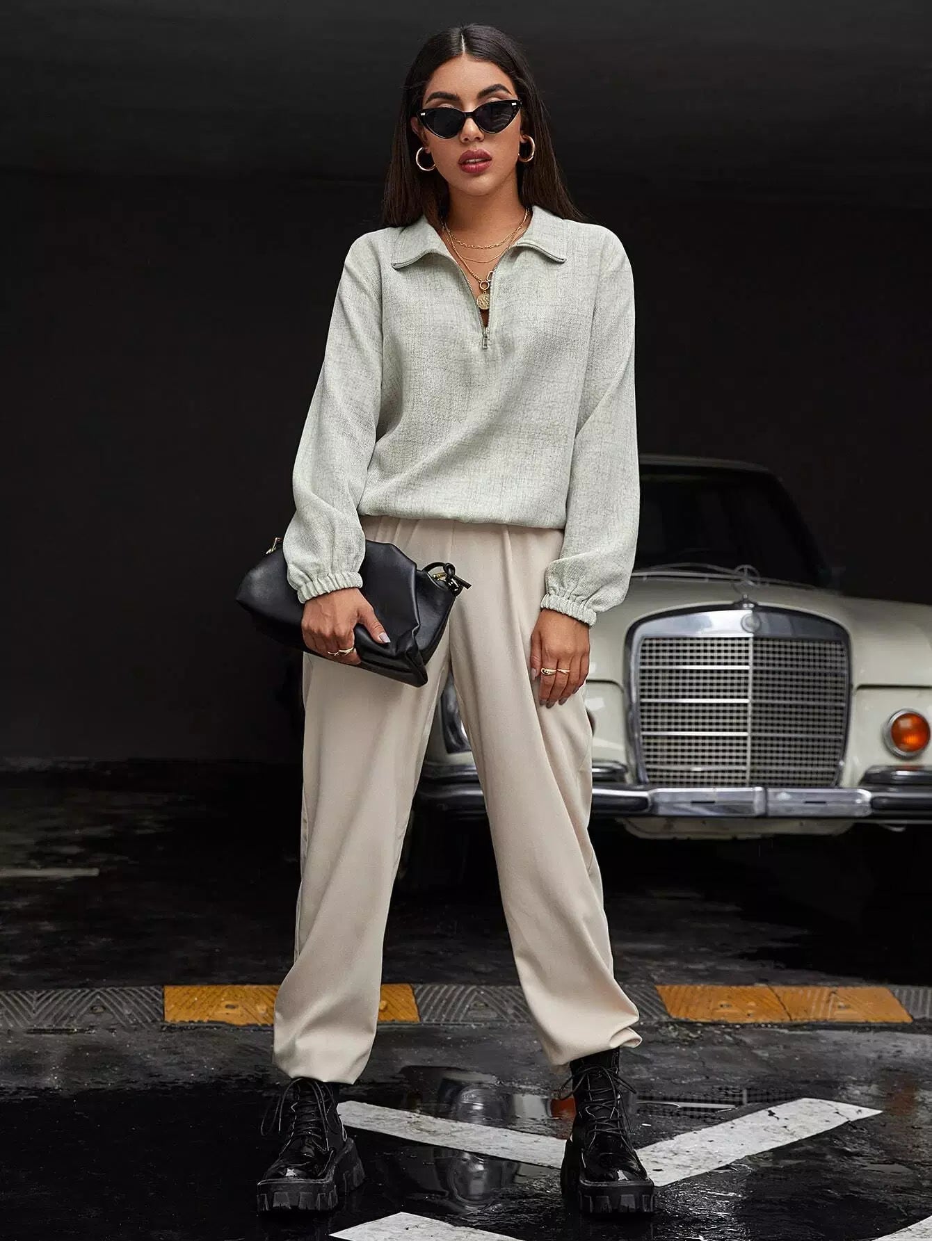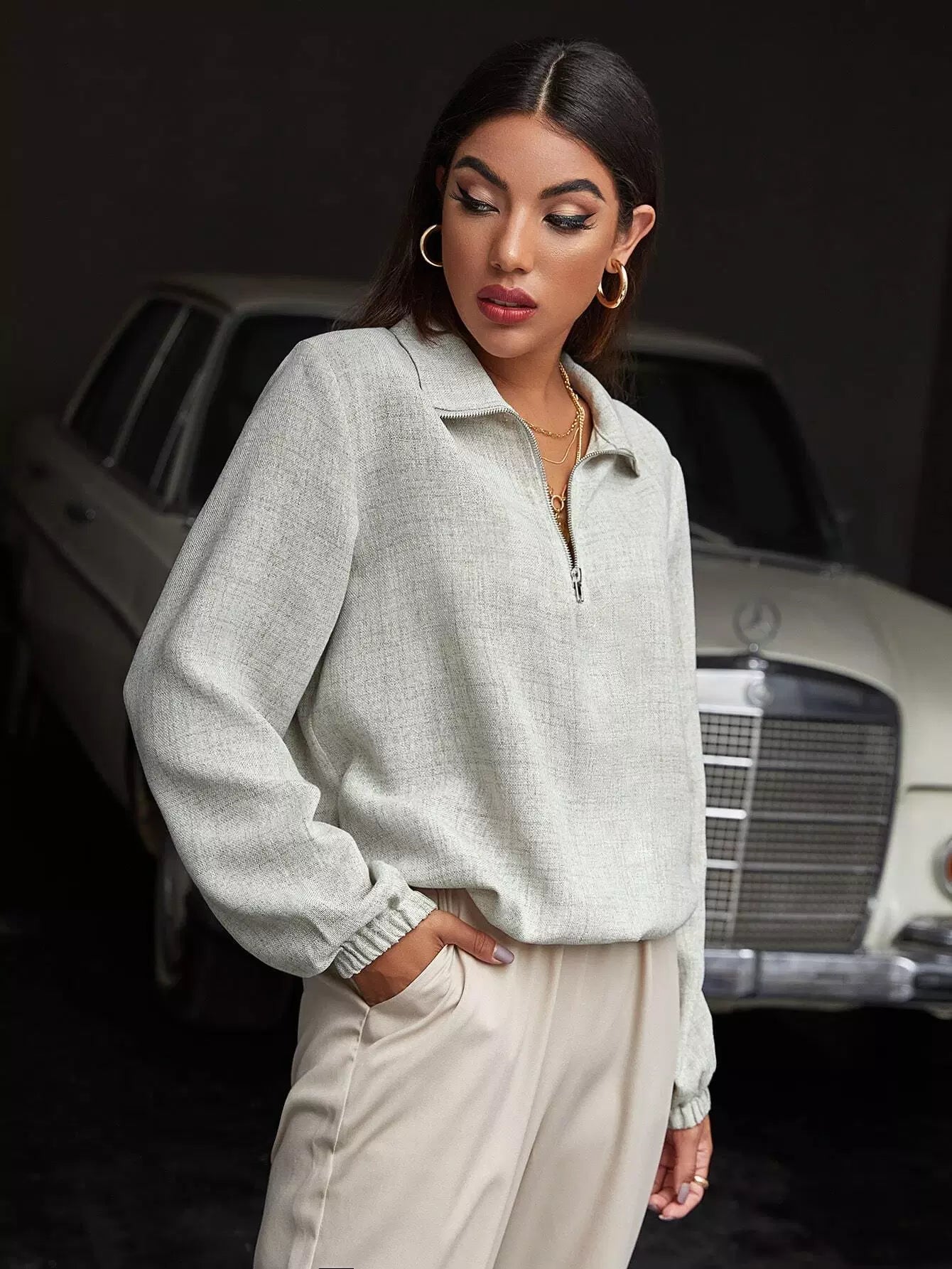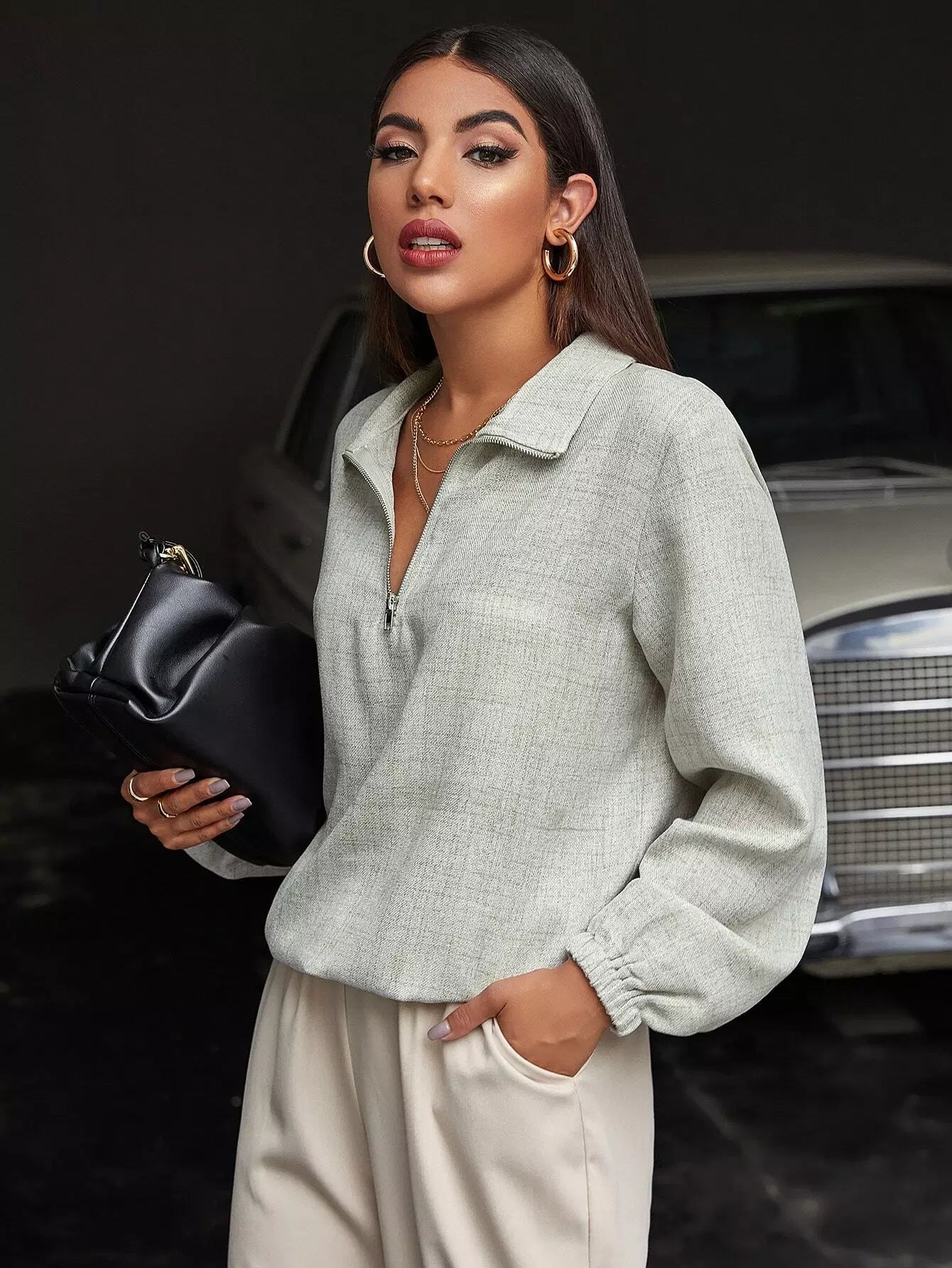 بلوزة بسحاب نصف سحاب سادة