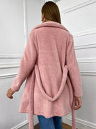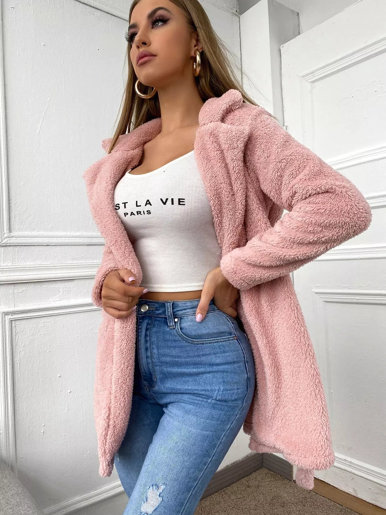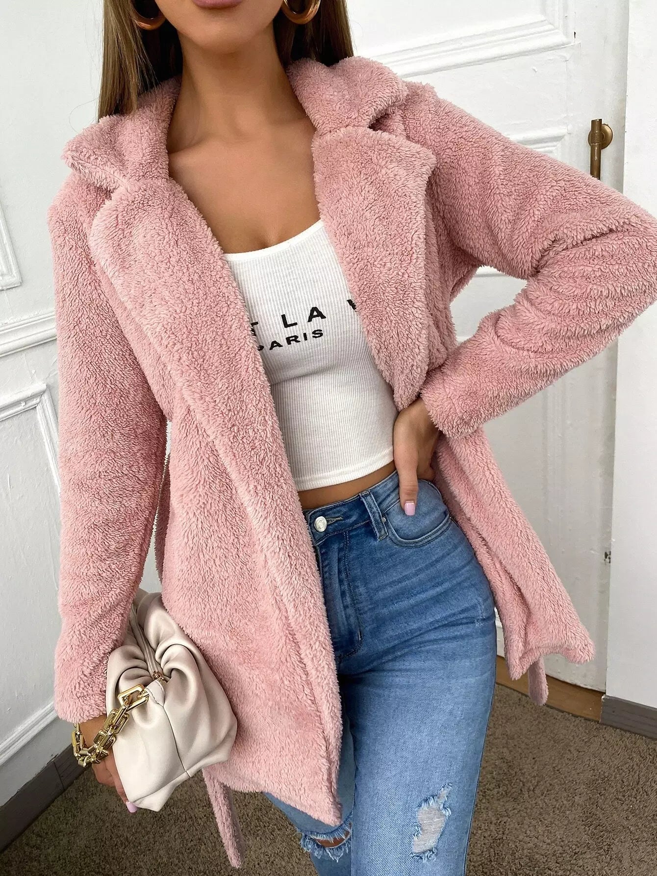 معطف تيدي بياقة طية صدر السترة مفتوح من الأمام بدون حزام