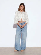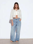 مايا الجديدة 2025 الصيف الأبيض برقبة مستديرة ثلاثية الأبعاد مزينة بالترتر والترتر للعمل غير الرسمي للنساء شورت مطرز بالشبكة