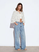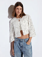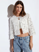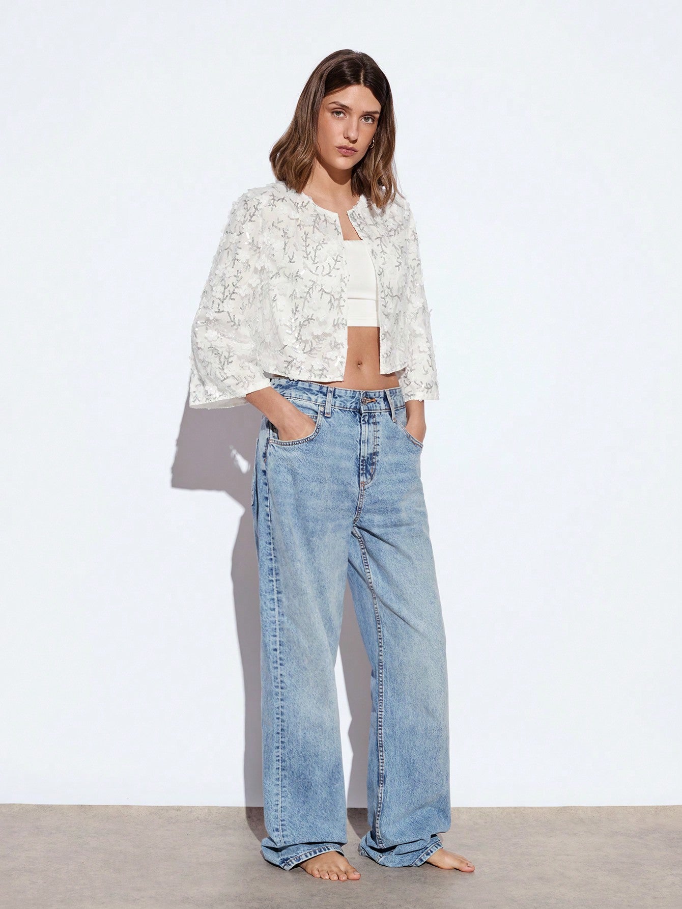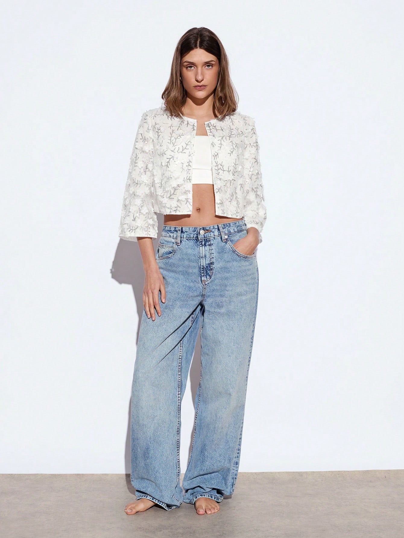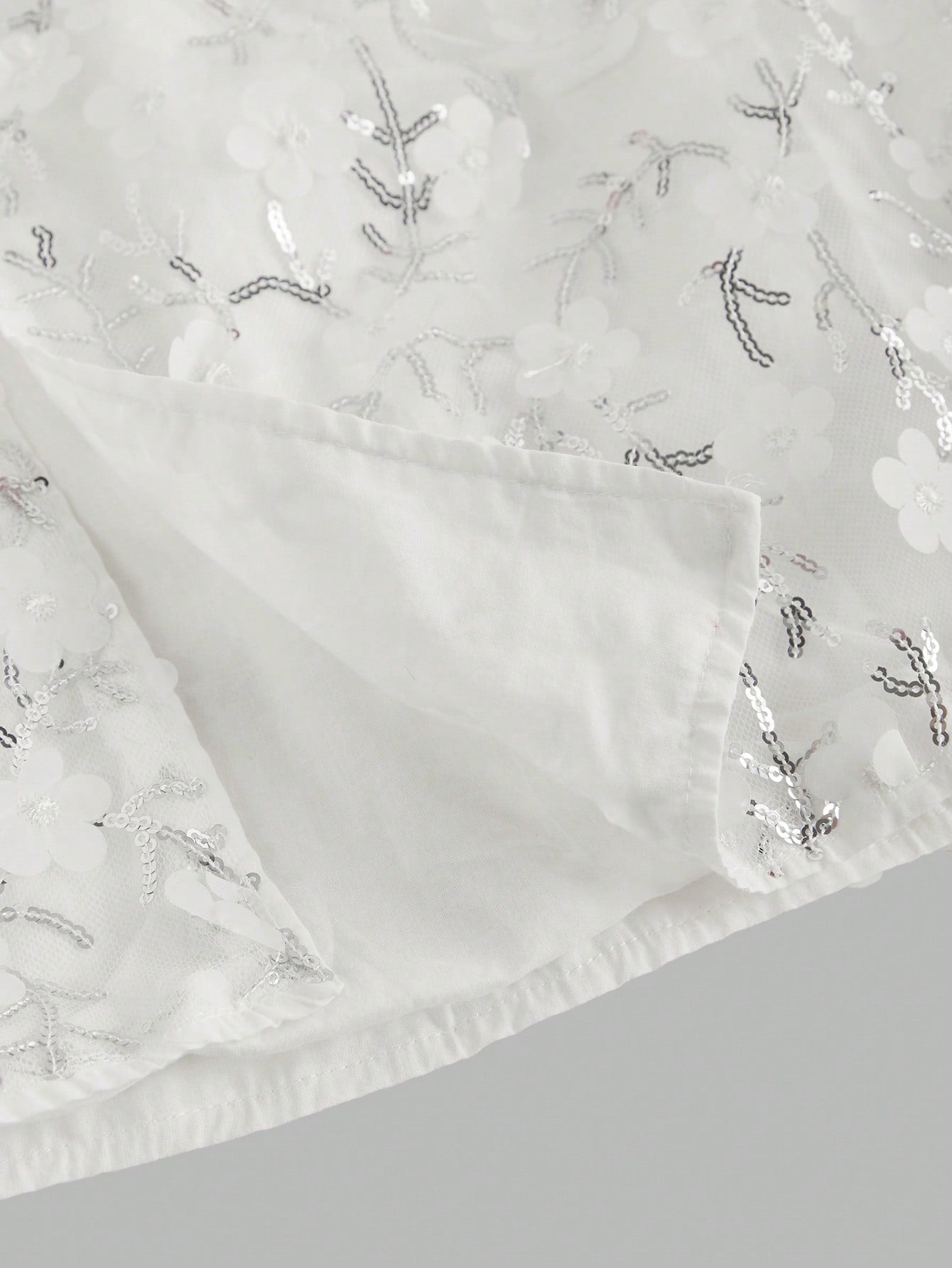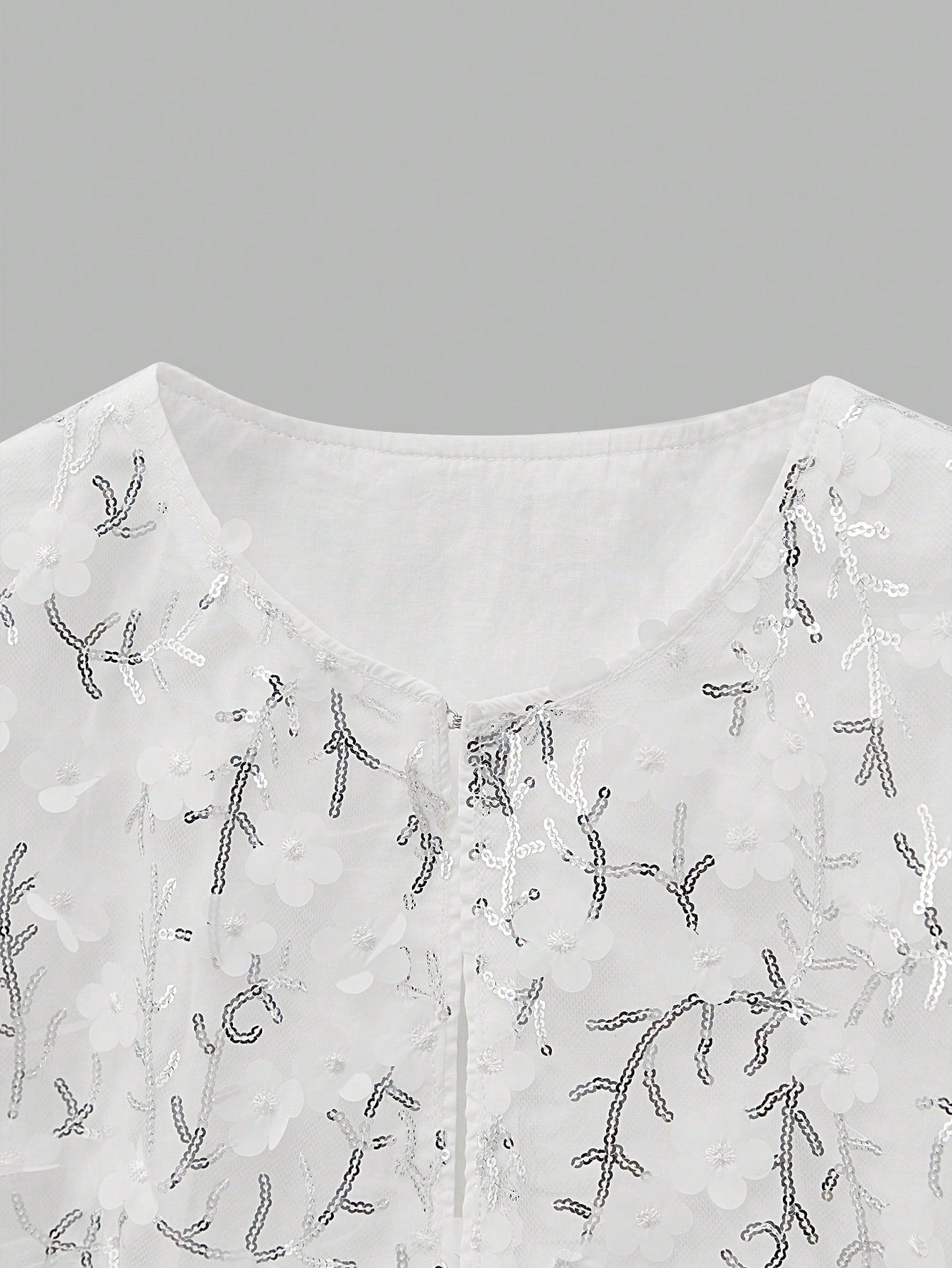 Maija New 2025 Summer White Round Neck 3D Sequins Sequin Business Casual Women's Mesh Embroidered Short