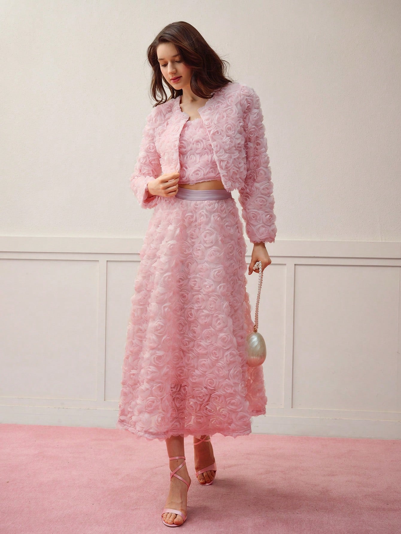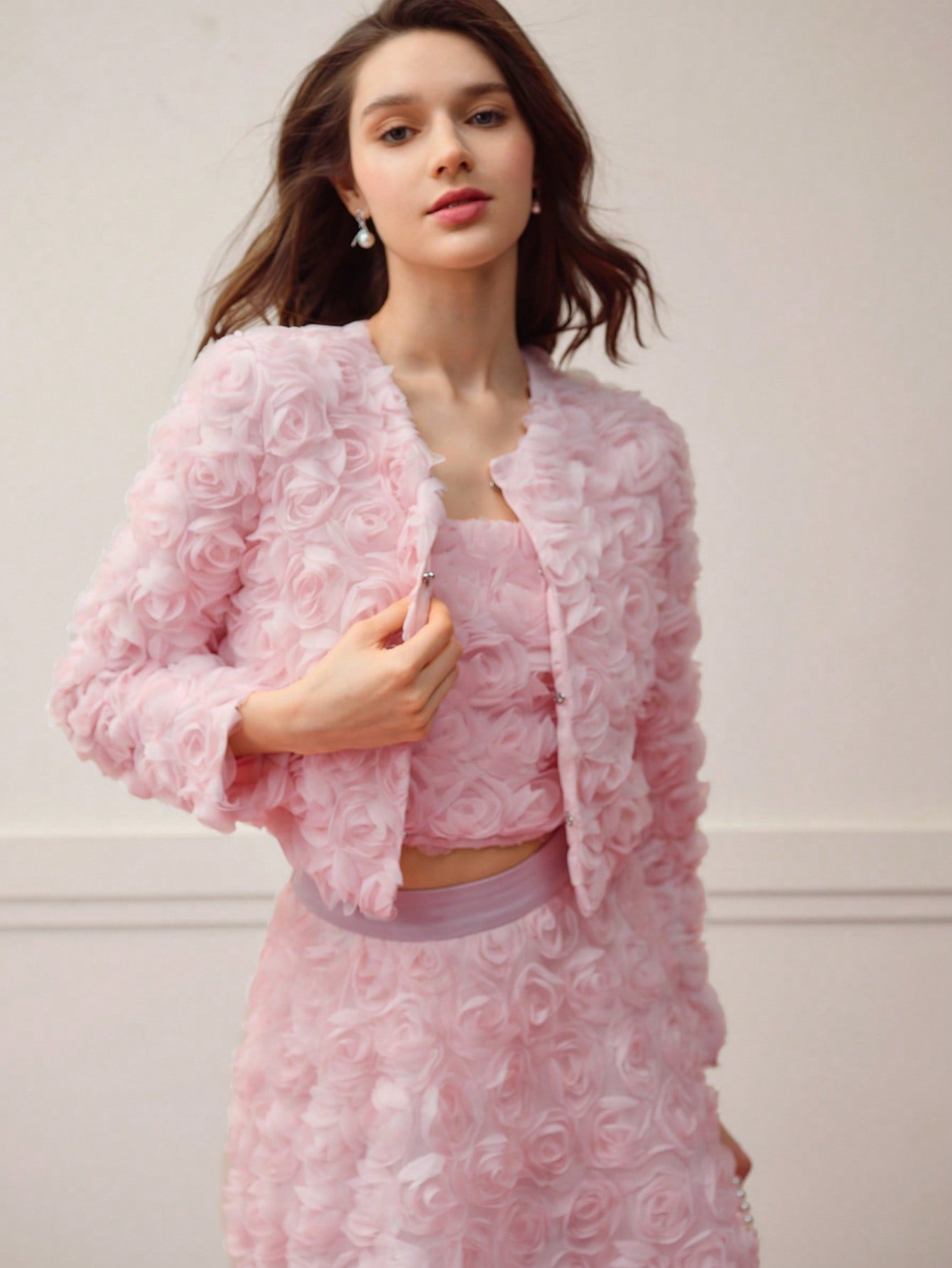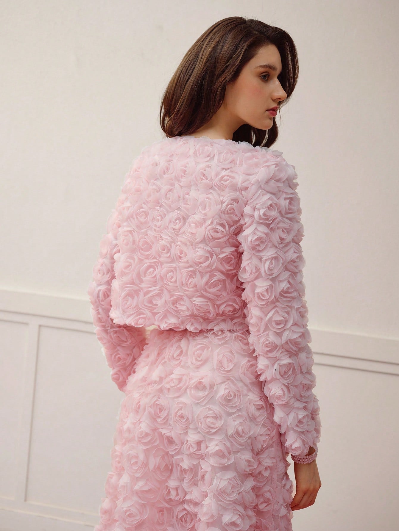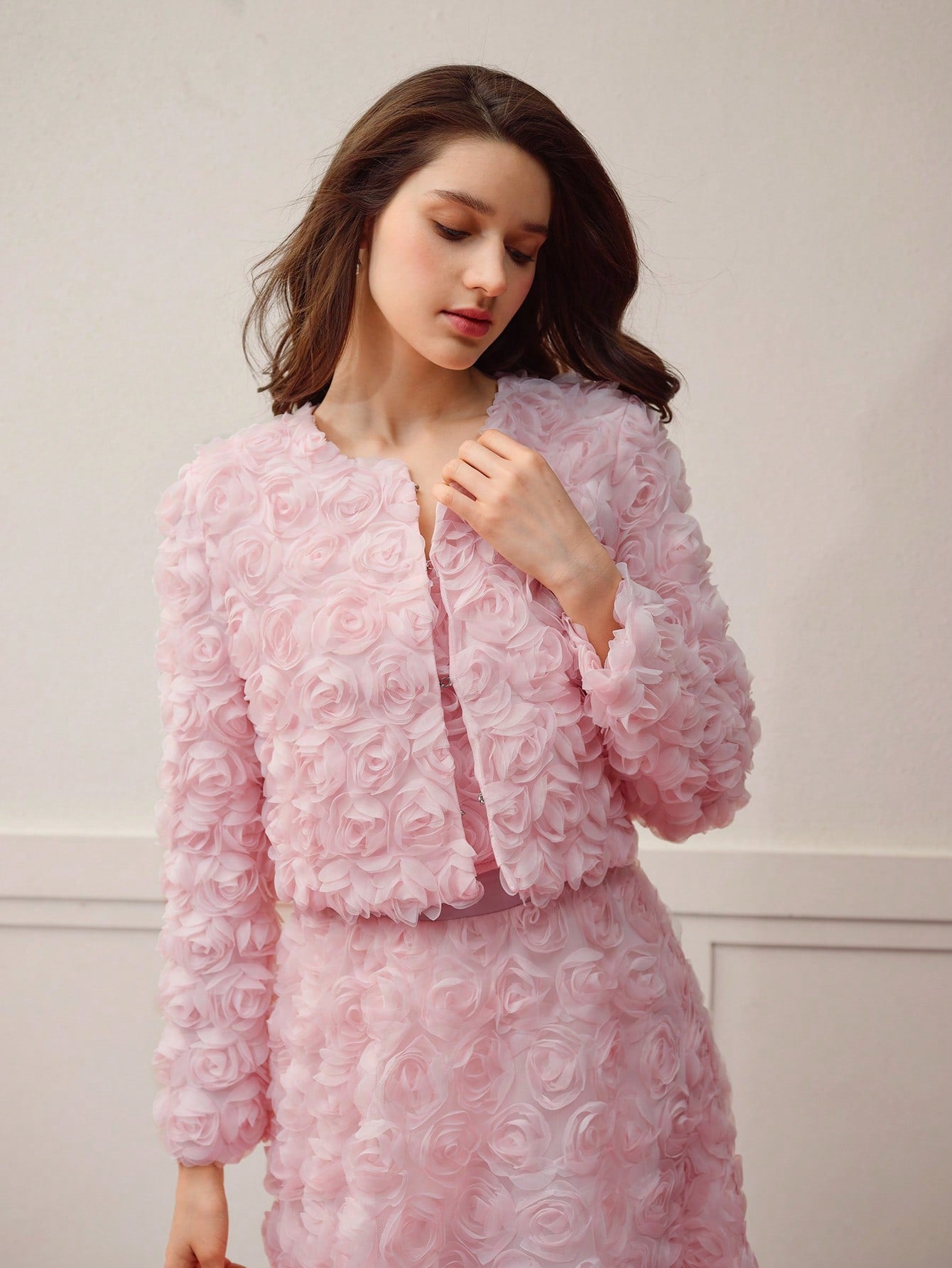 MOTF PREMIUM MESH FLORAL PATCHED BOXY COAT,VALENTINE'S DAY