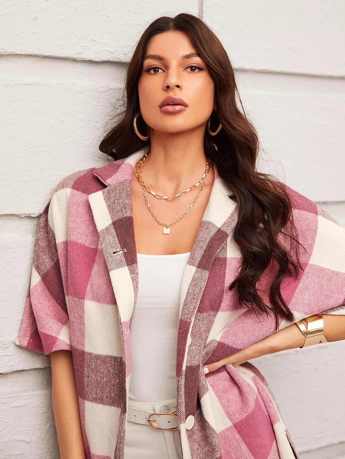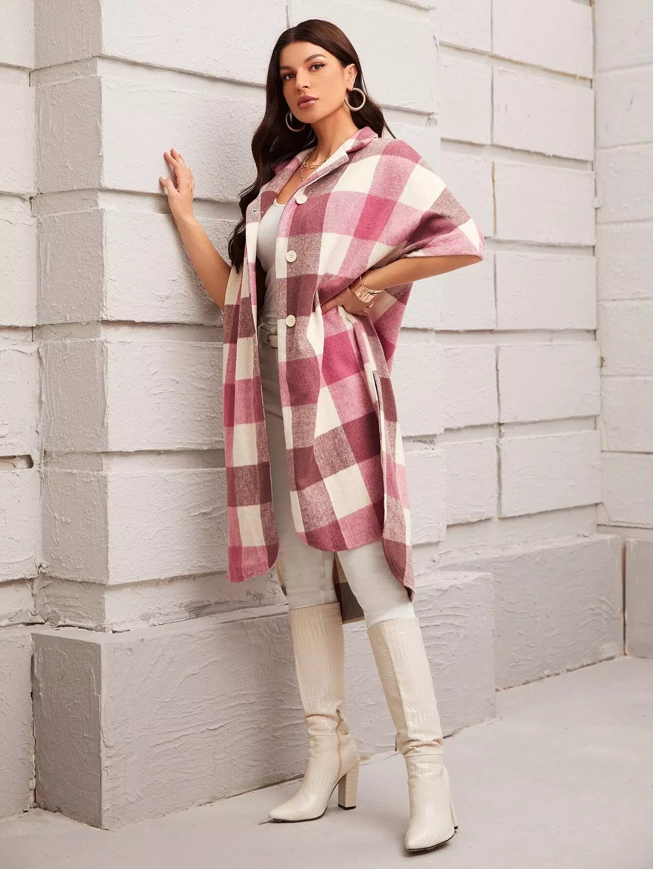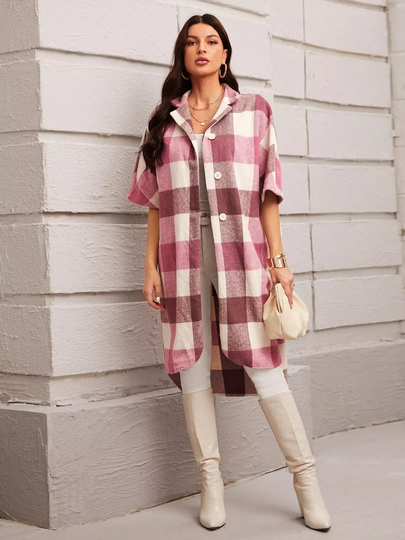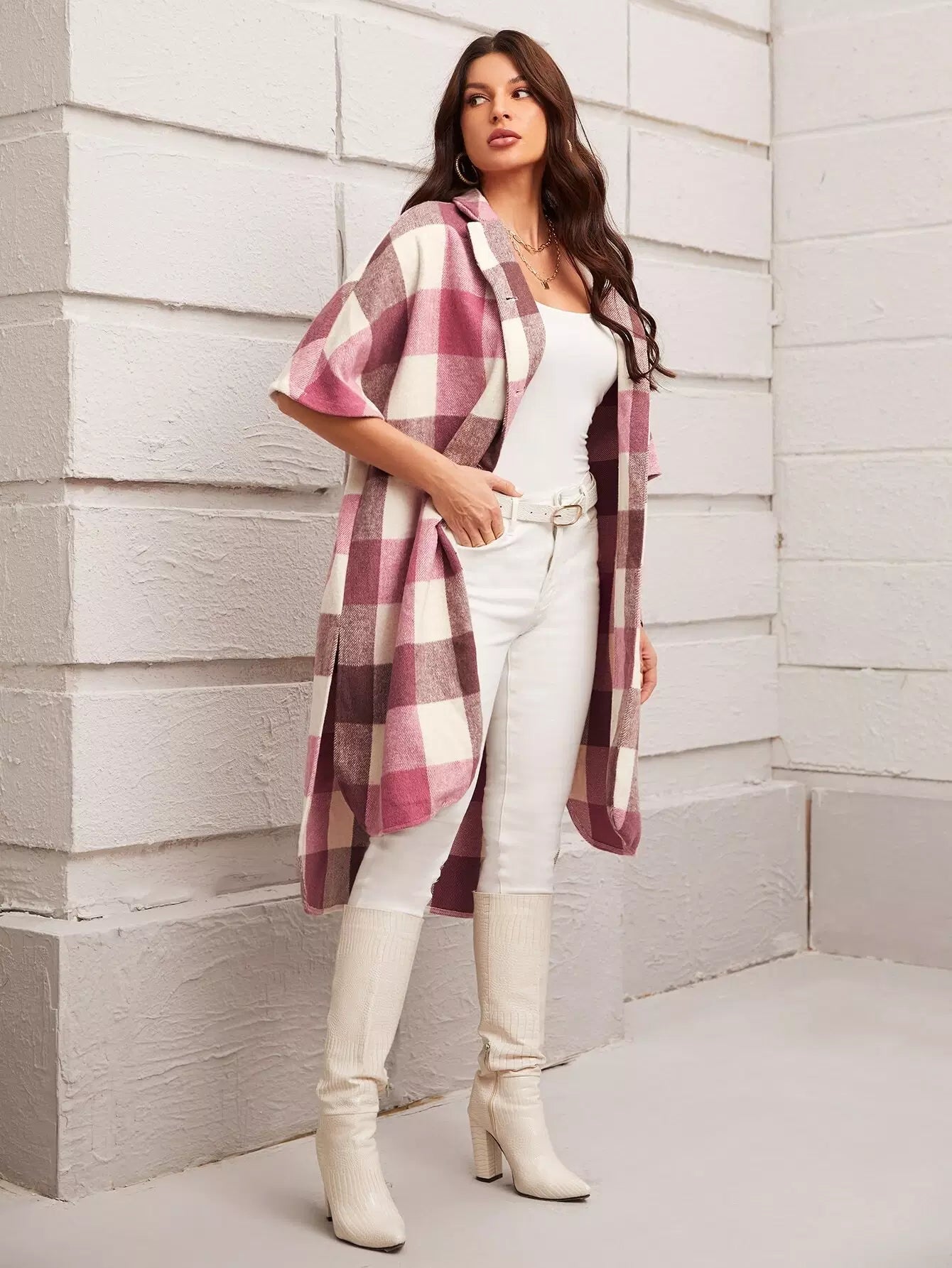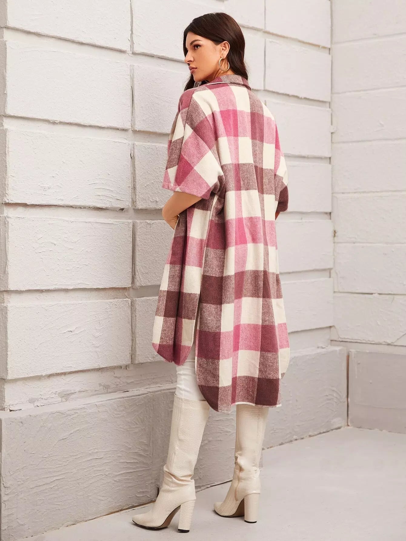 معطف بطبعة مربعات وحاشية عالية ومنخفضة
