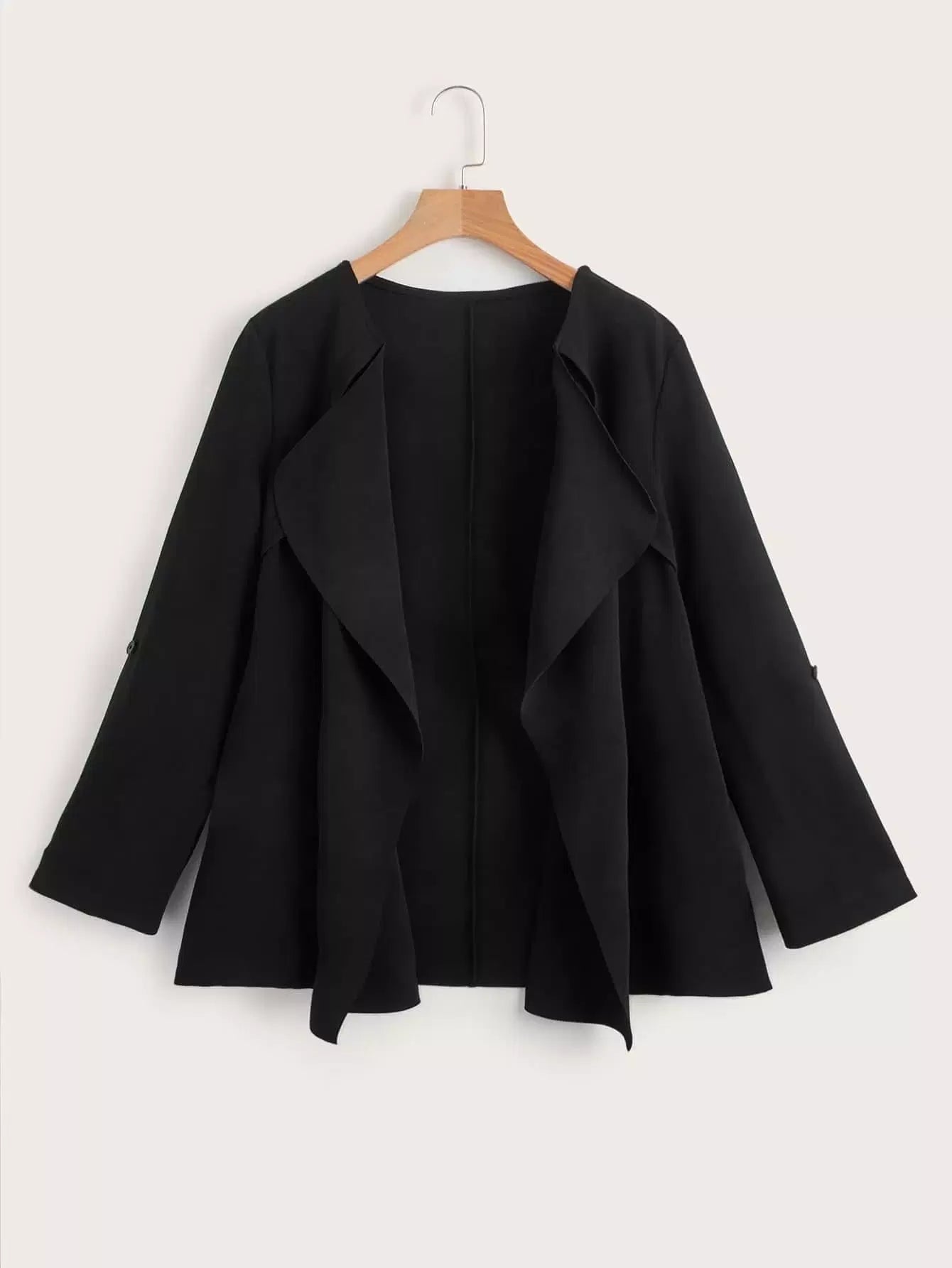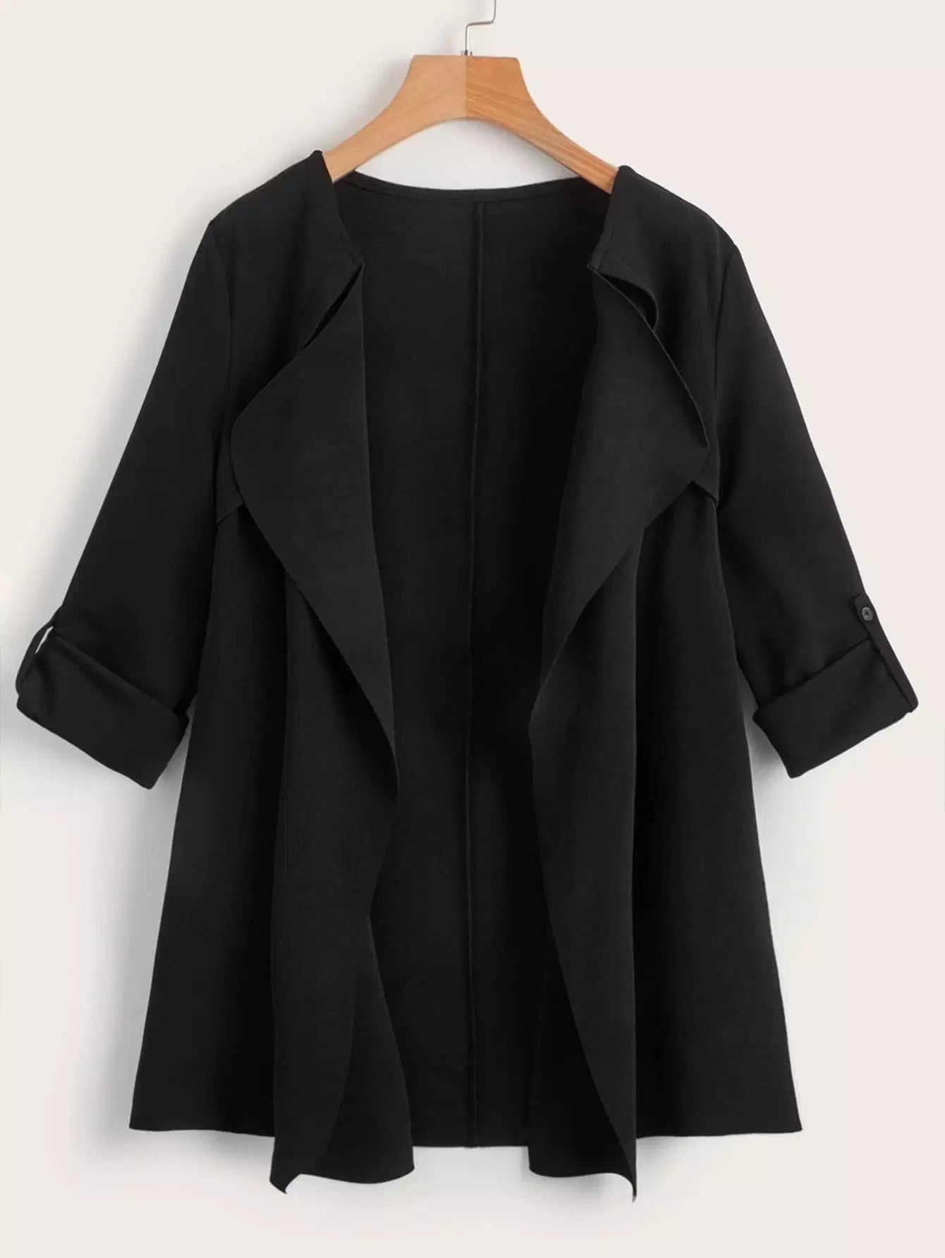 معطف سادة مفتوح من الأمام مفتوح من الخلف