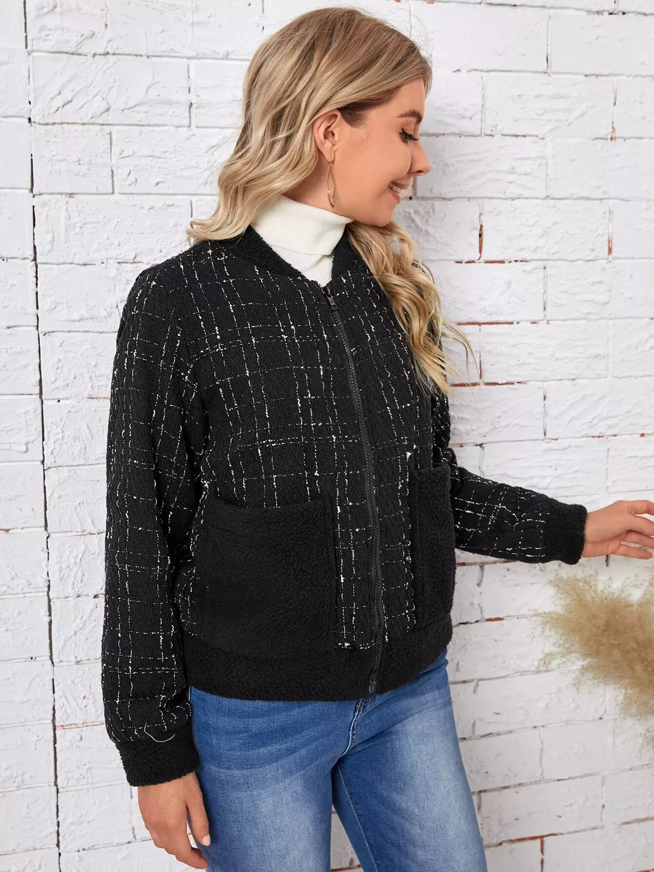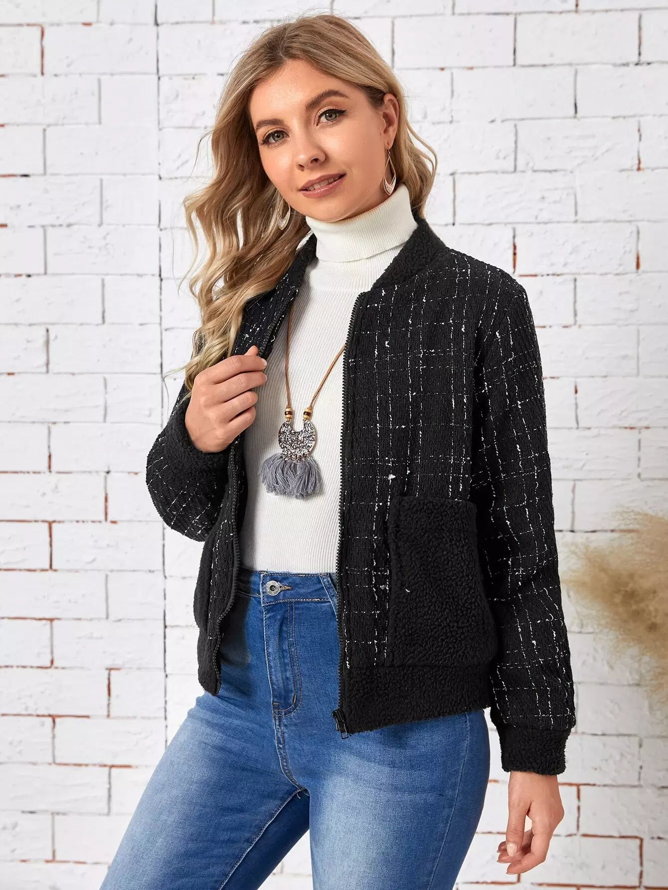 جاكيت تيدي بانيل منقوش بجيب مزدوج بسحاب وسحاب