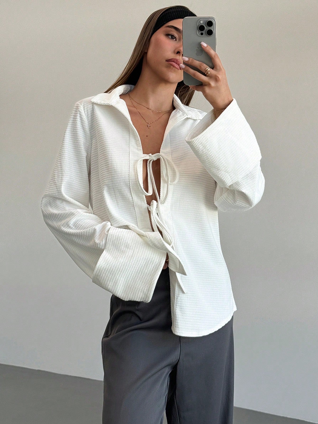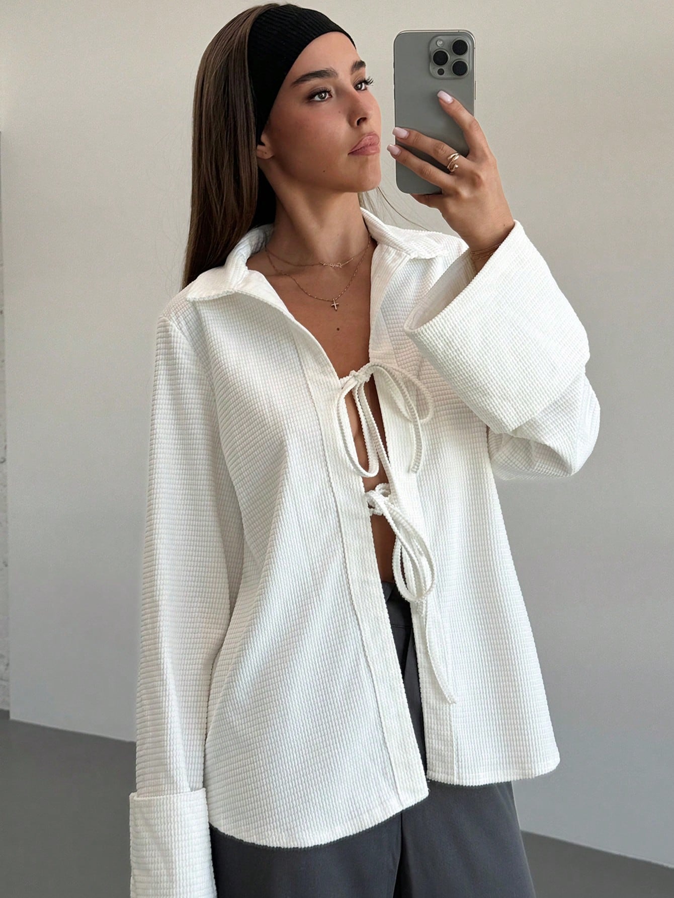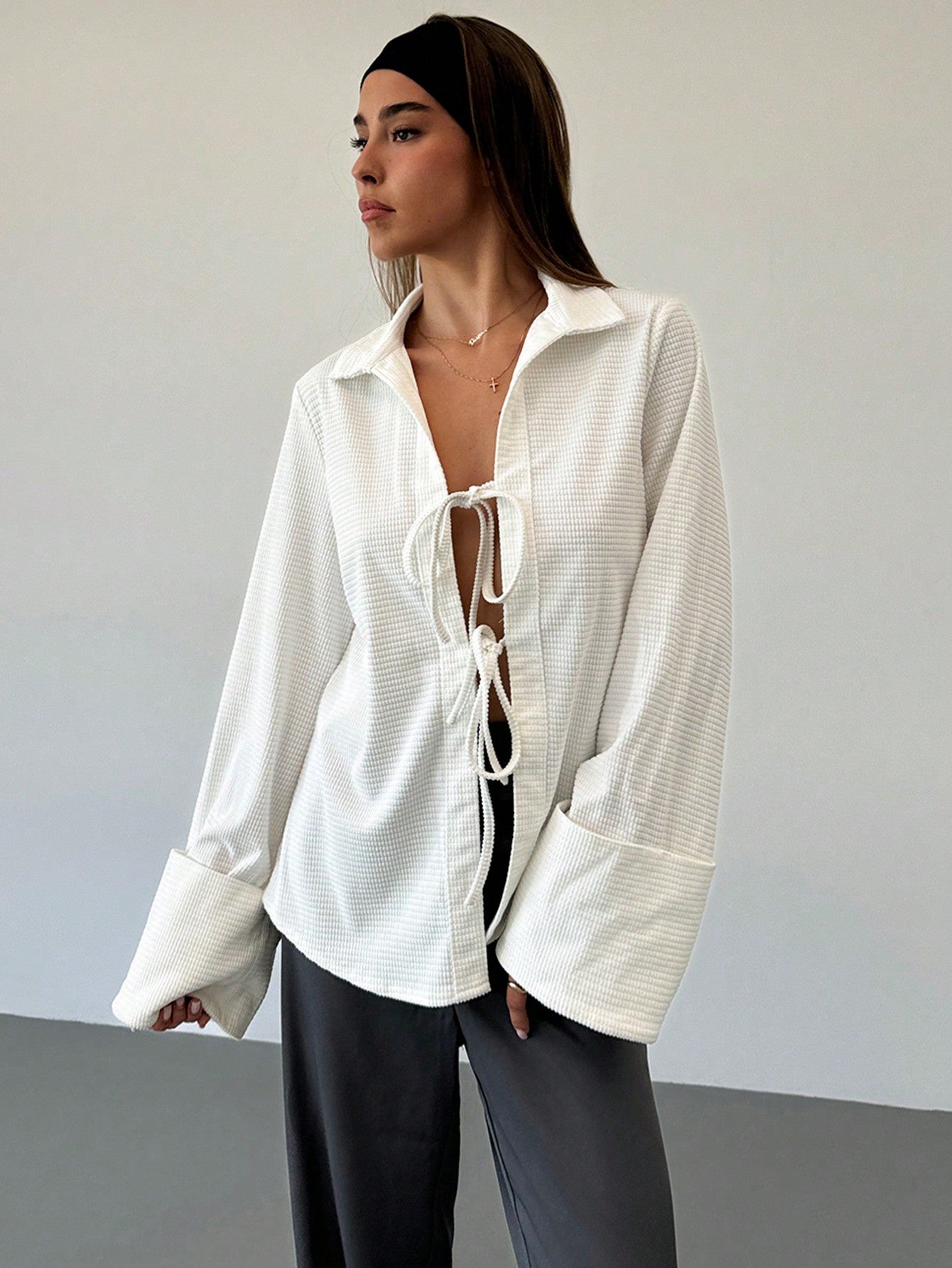Aloruh 4-Season Chic Tie-Up Collar Textured Jacquard Elegant Commuter New Style Jacket