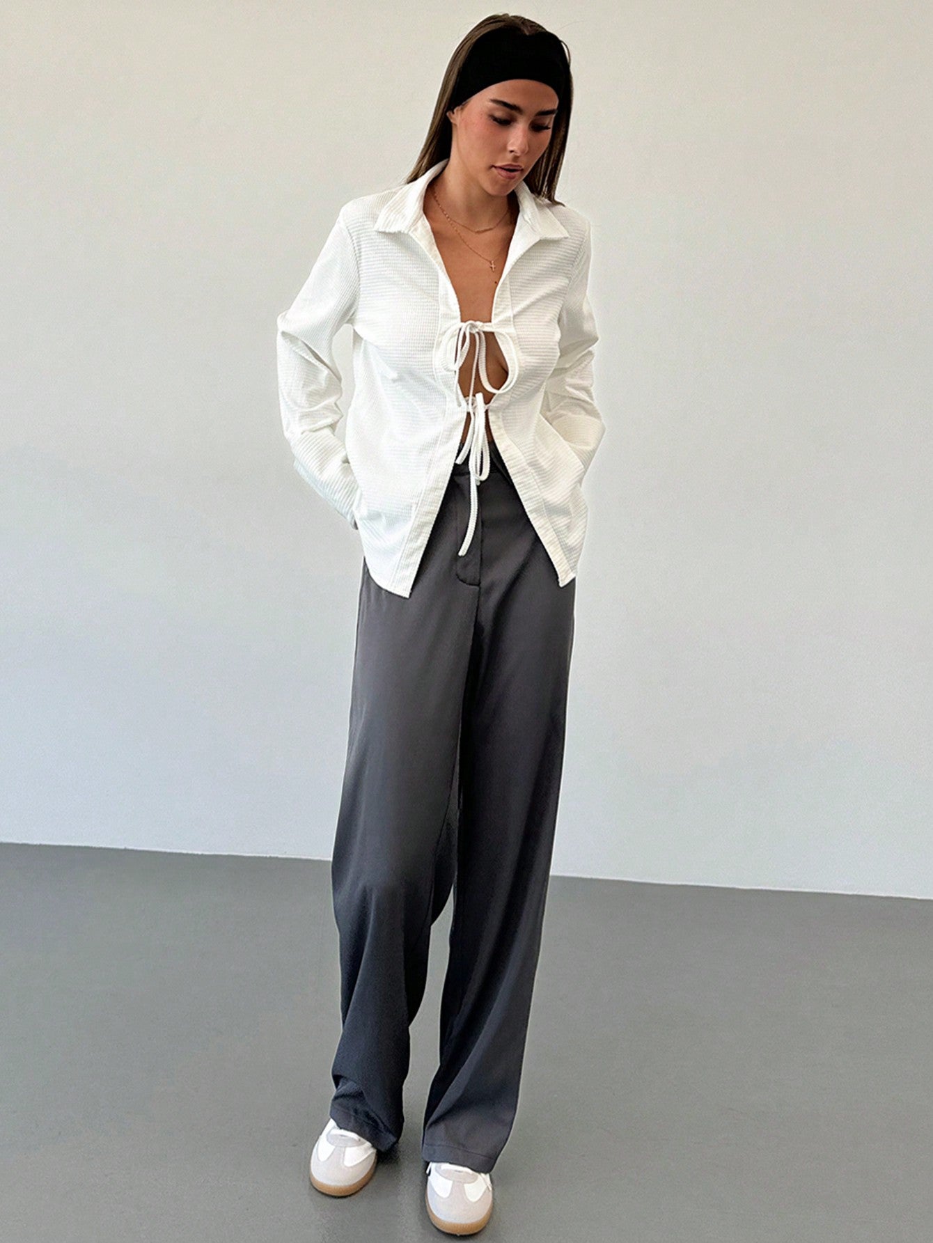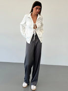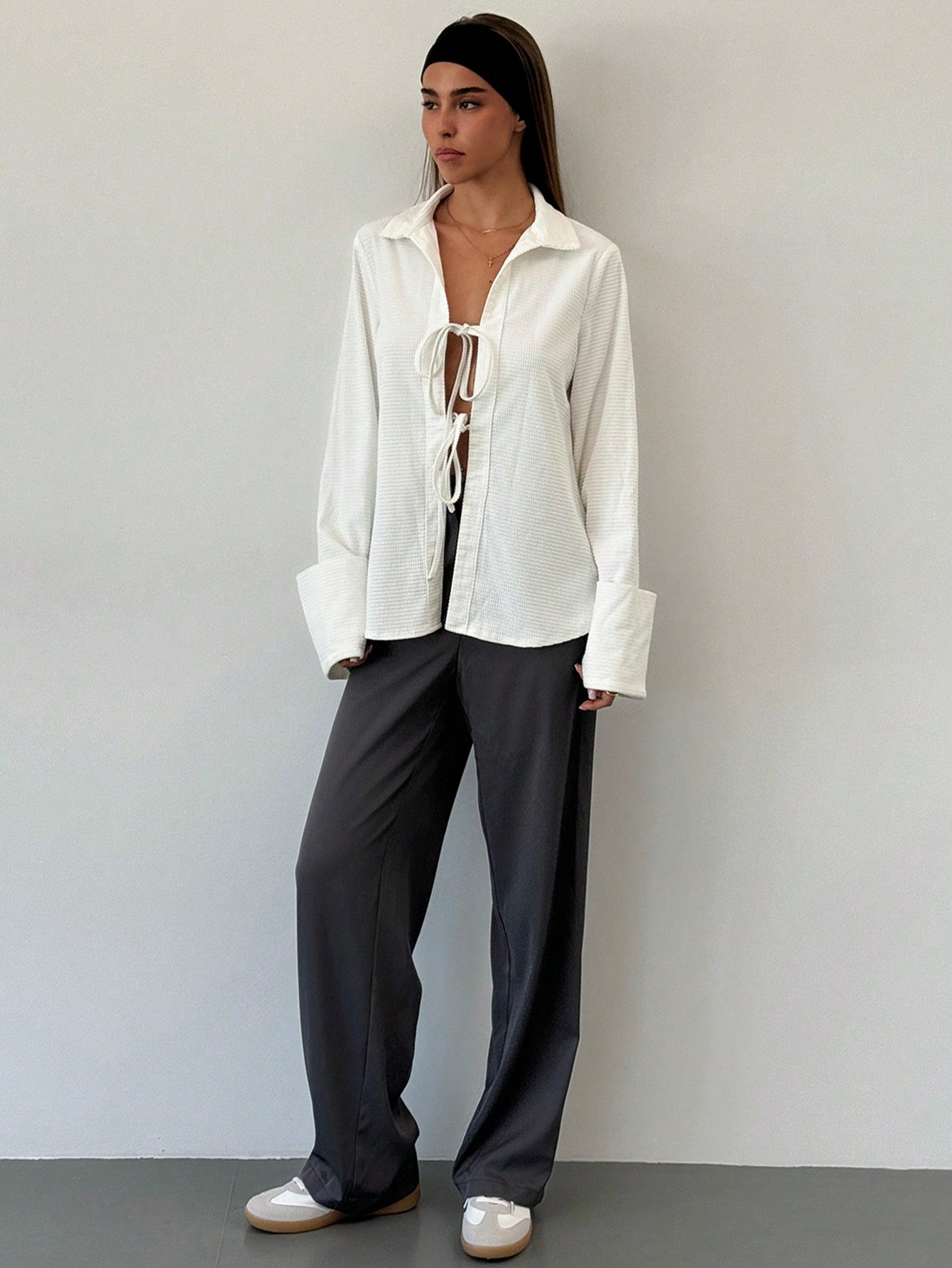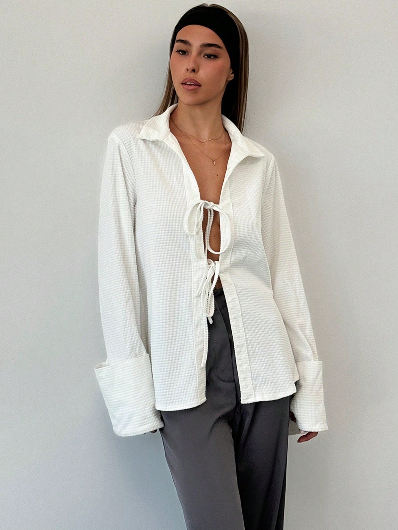 Aloruh 4-Season Chic Tie-Up Collar Textured Jacquard Elegant Commuter New Style Jacket
