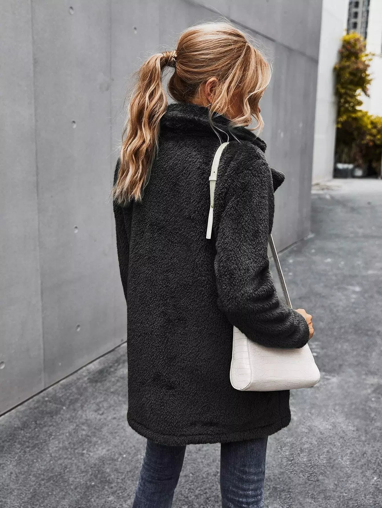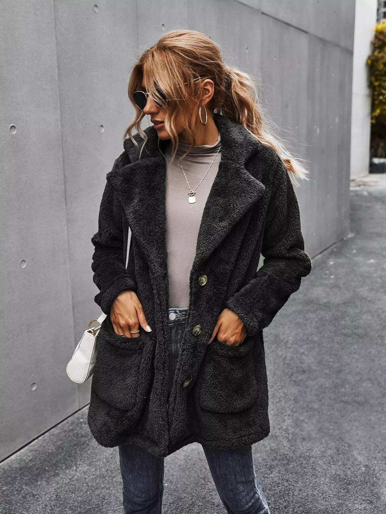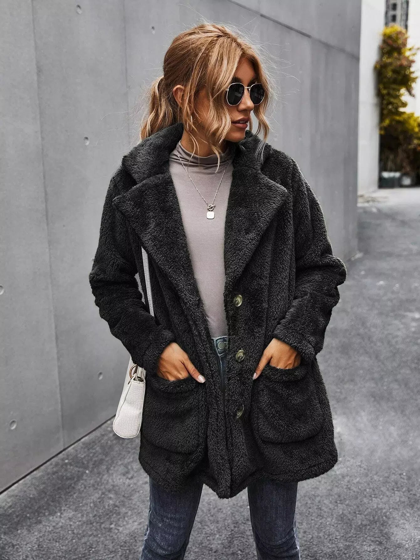 معطف تيدي بجيب مزدوج أمامي بأزرار
