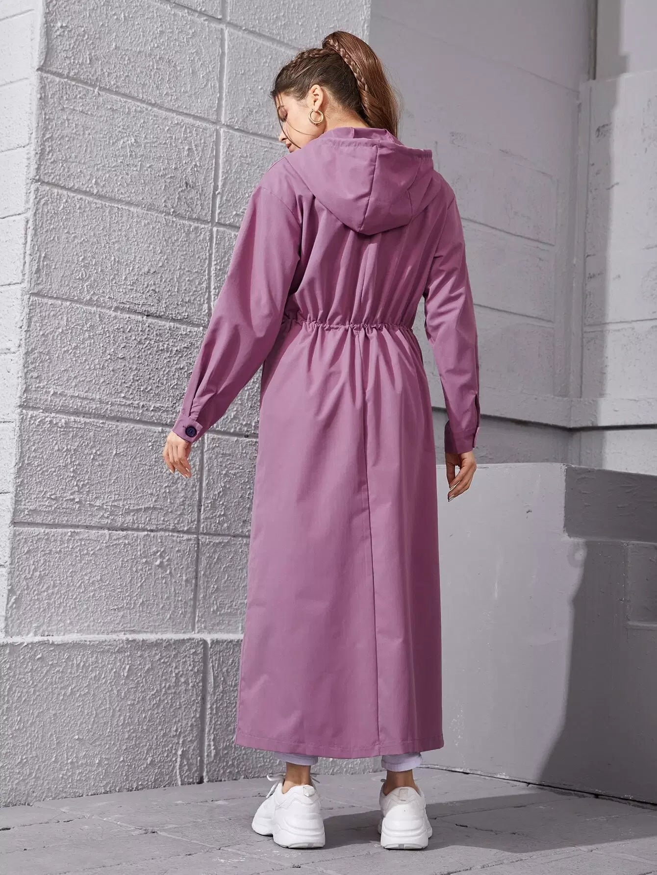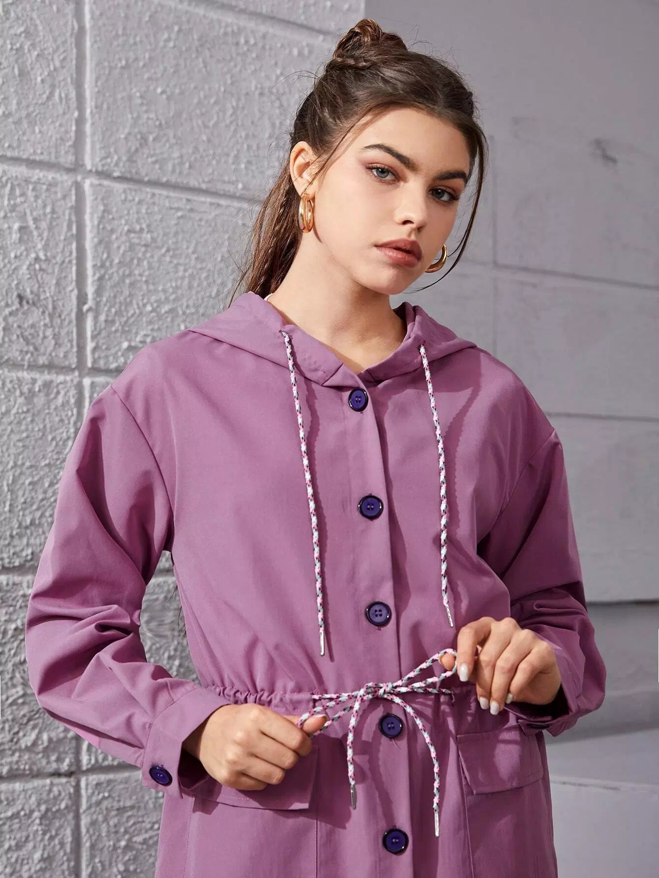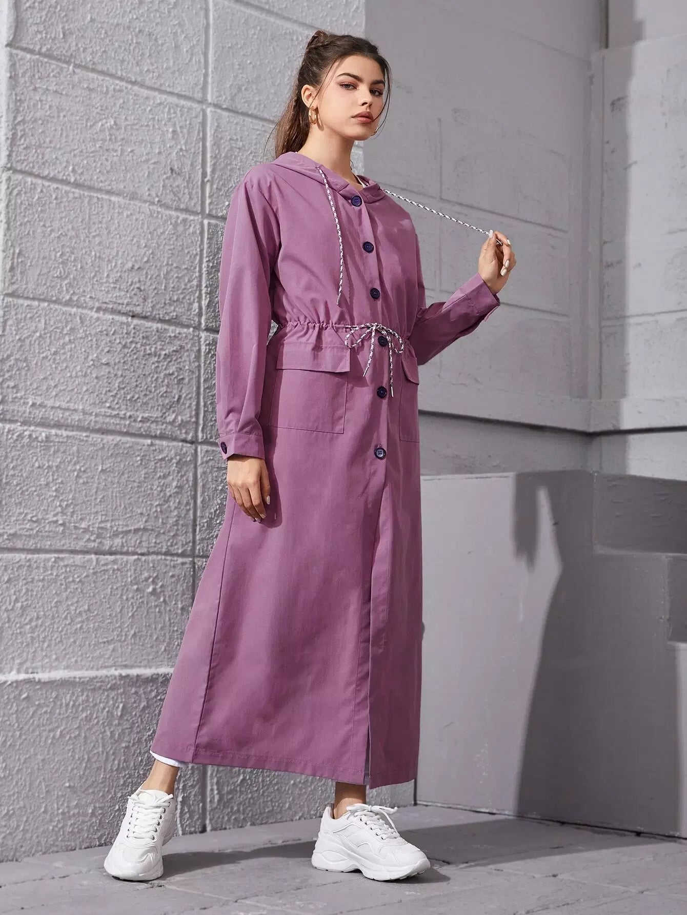 معطف بأزرار أمامي برباط خصر برباط أمامي بقلنسوة