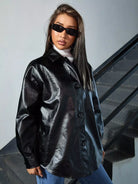 معطف من الجلد بأزرار بأزرار