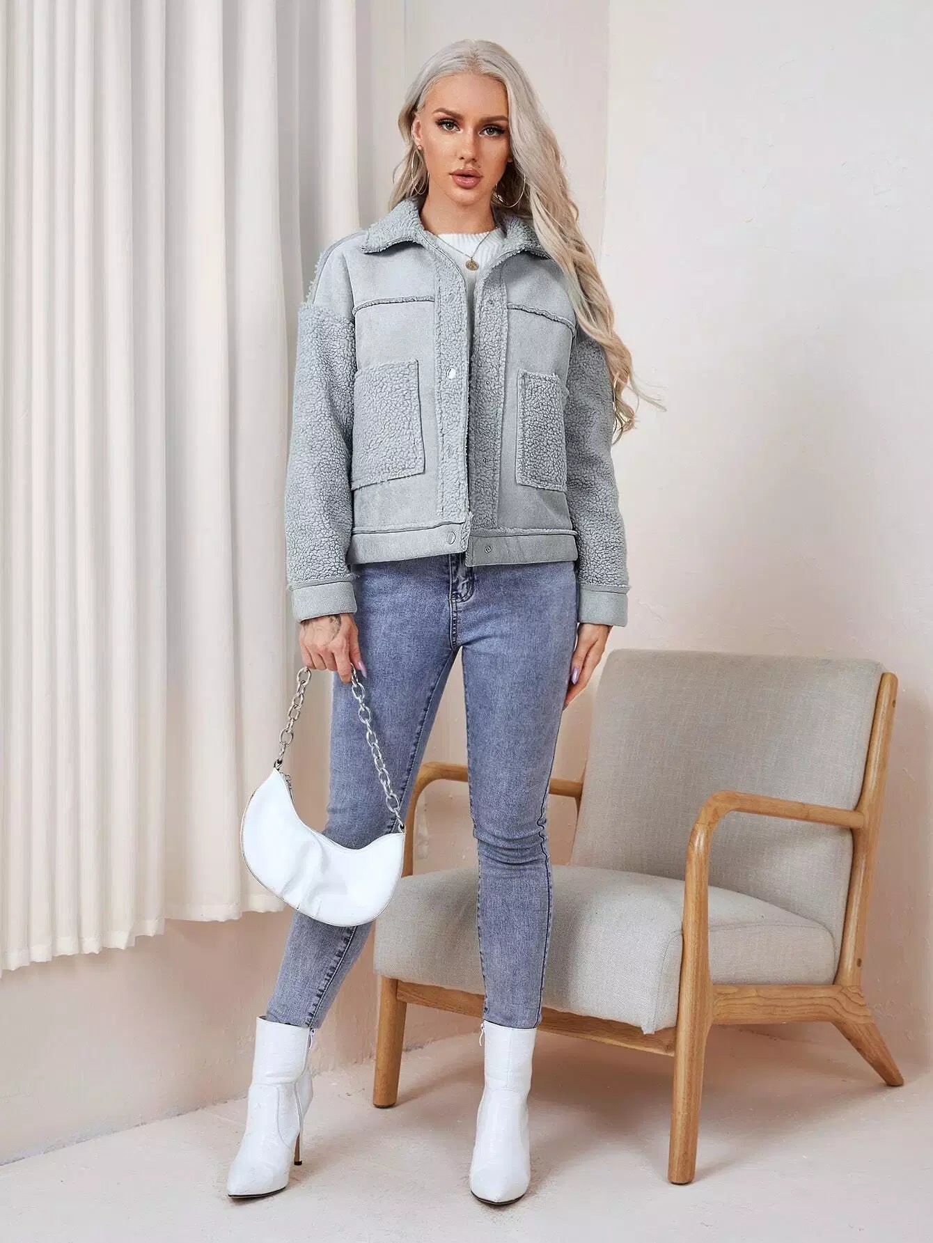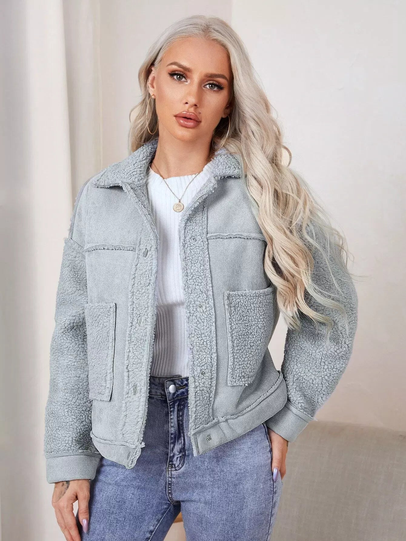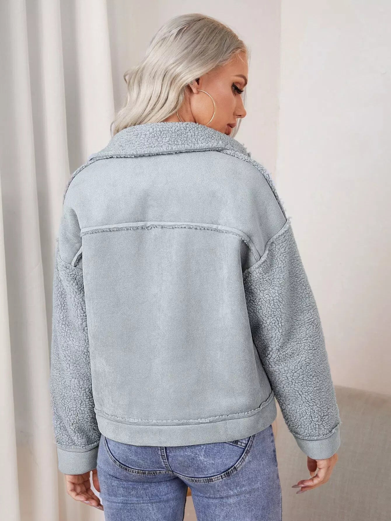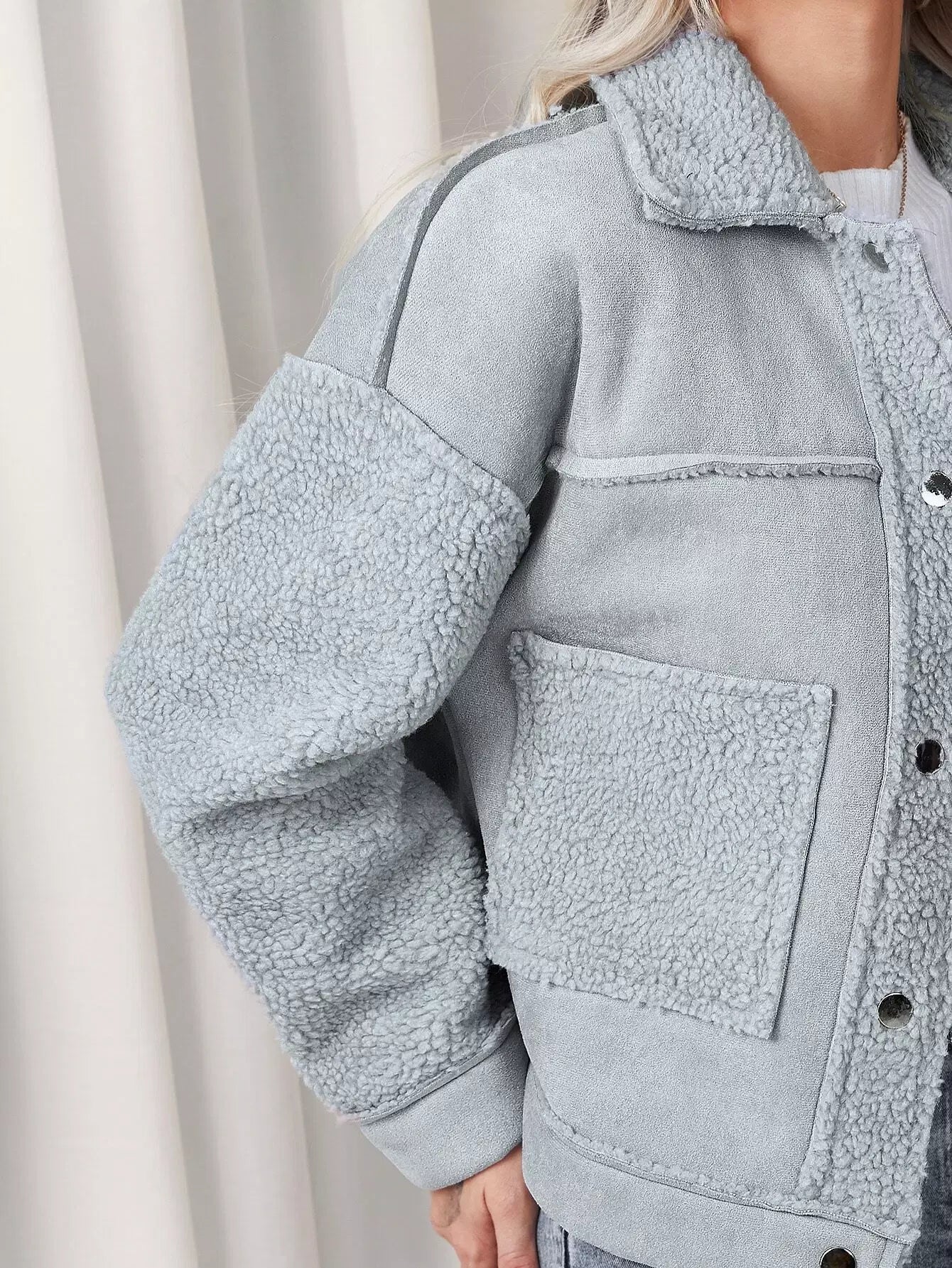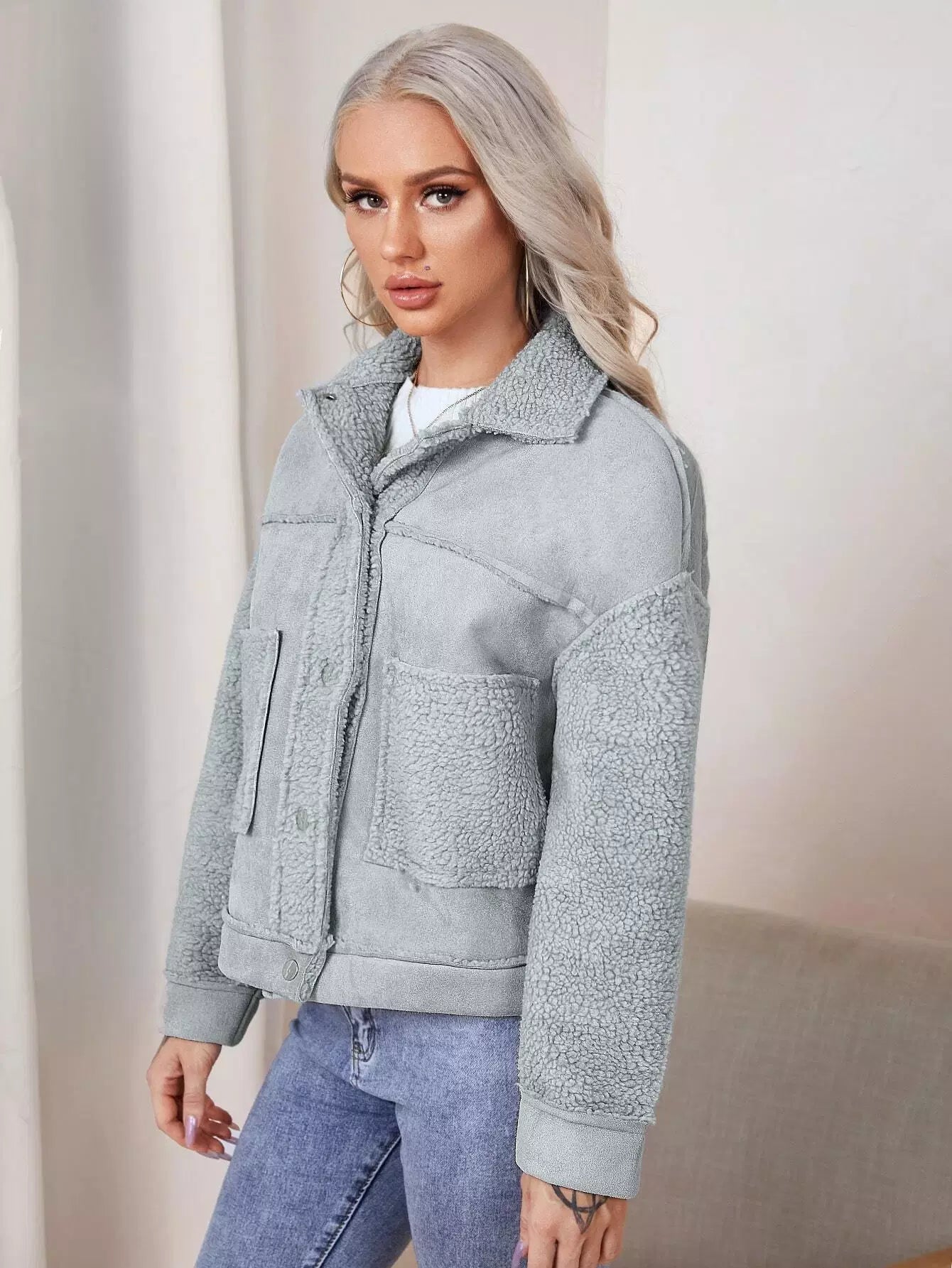 معطف بياقة بأزرار مضغوطة بأزرار بأزرار