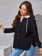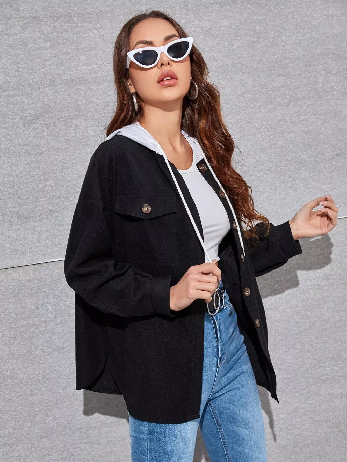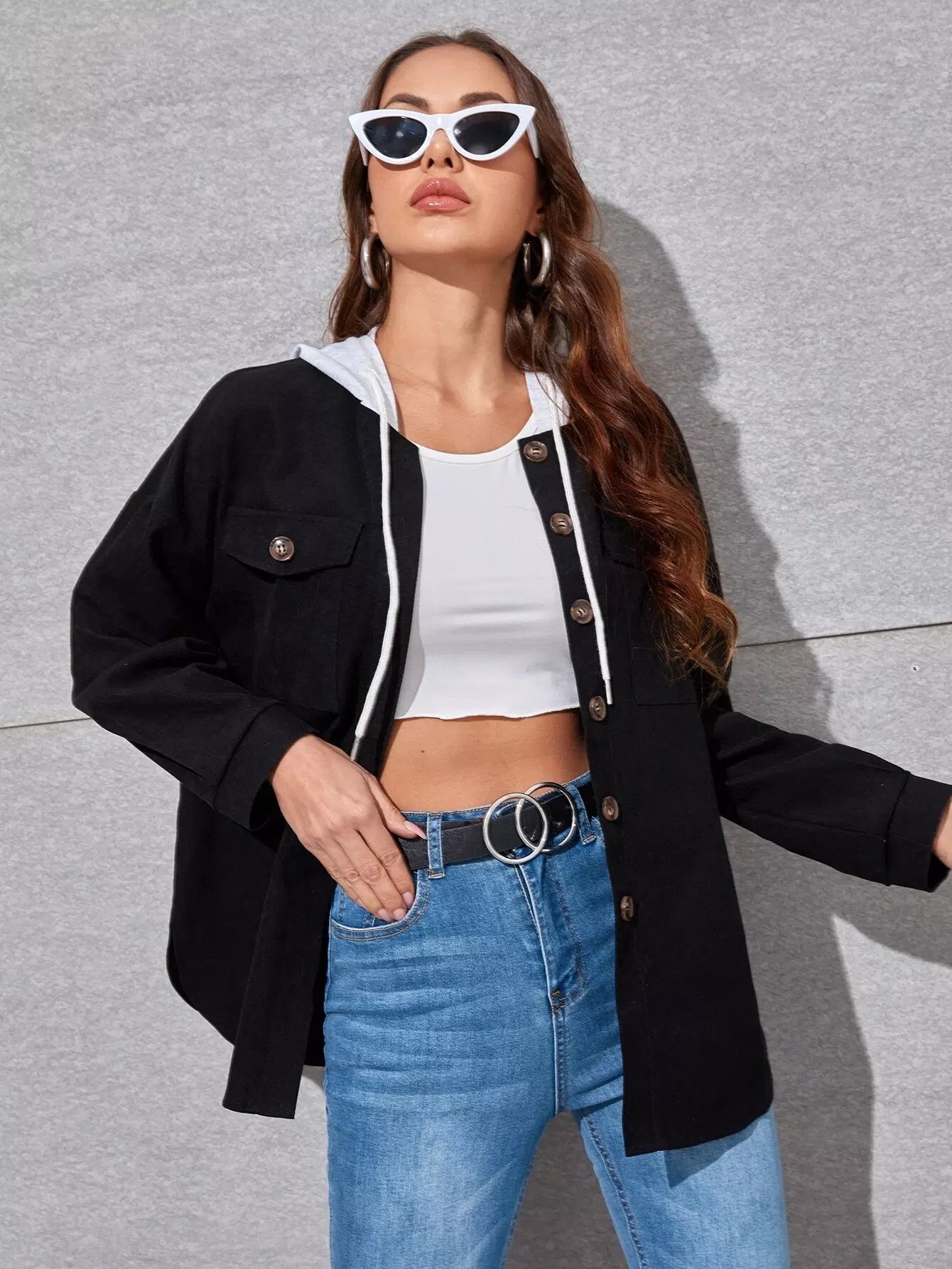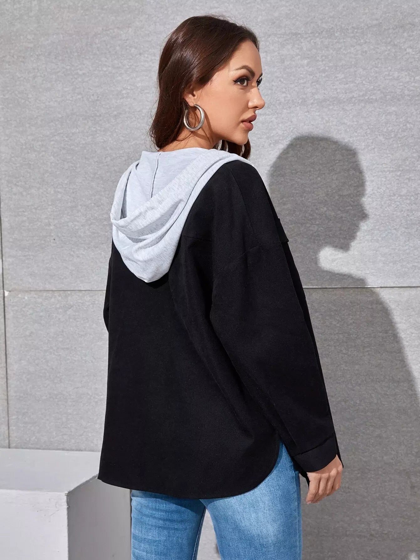 معطف بقلنسوة بأزرار أمامية بلون مغاير