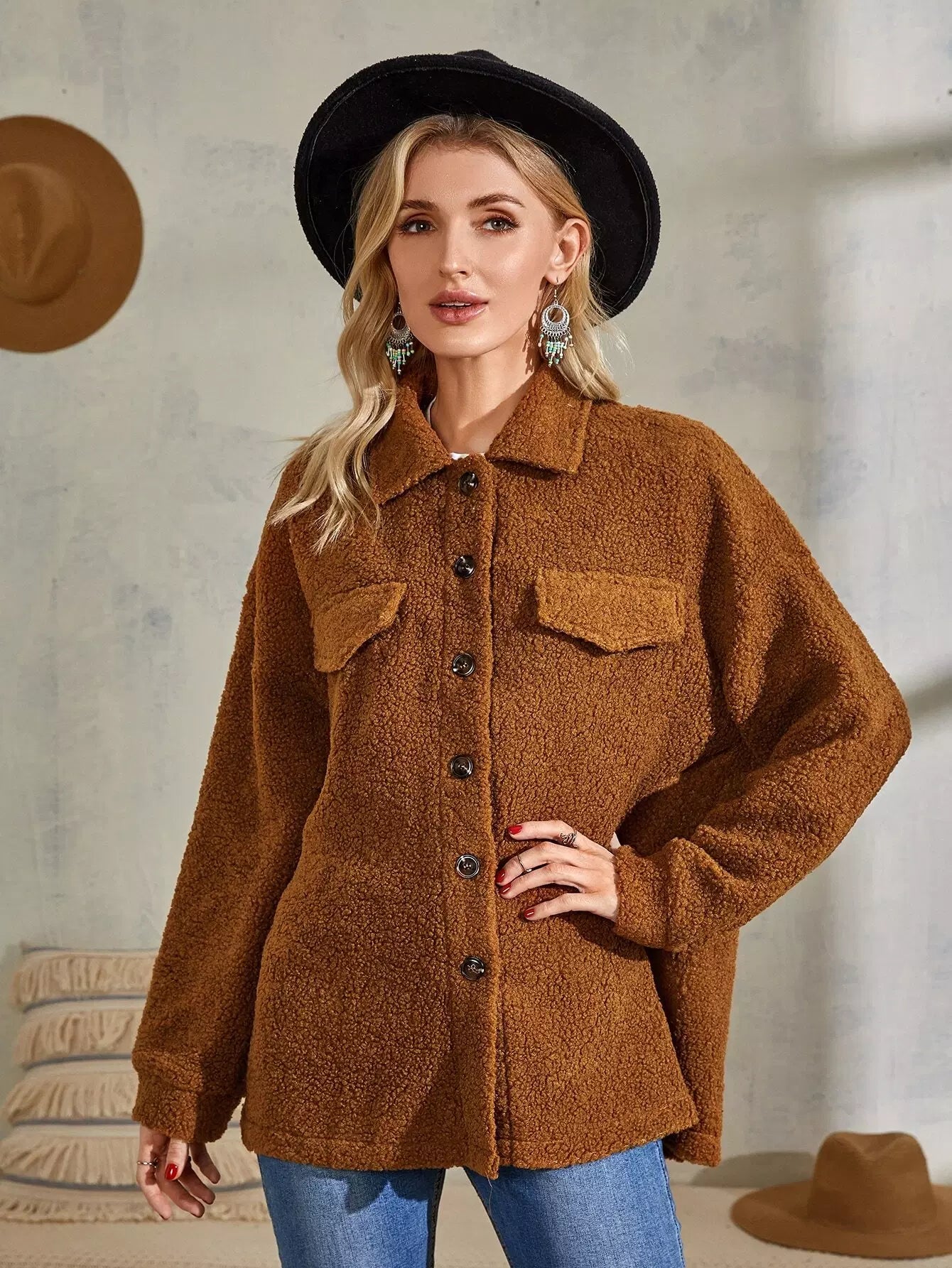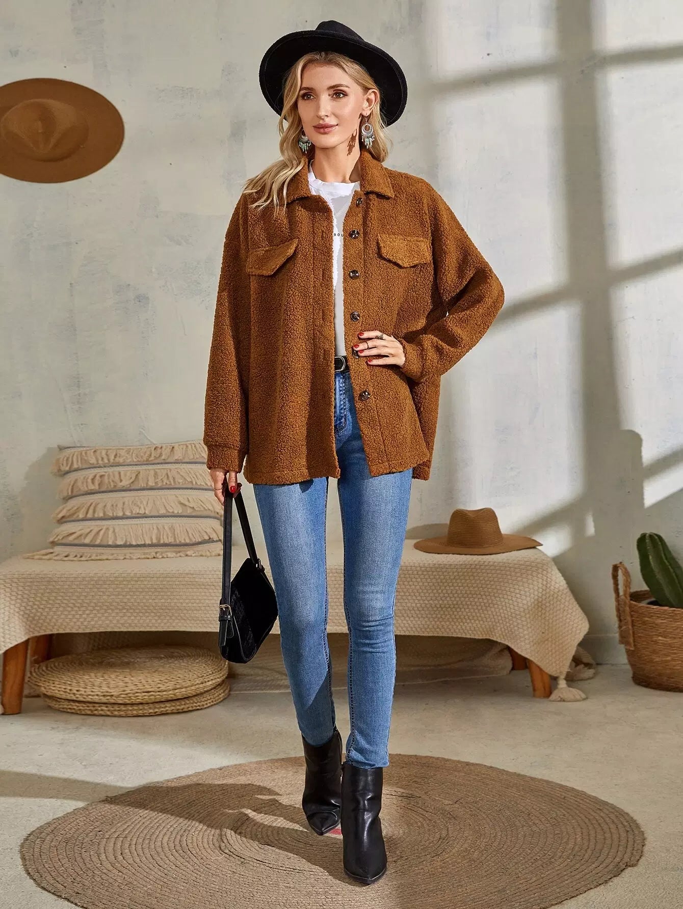 معطف من الصوف بتفاصيل قلاب على الكتف