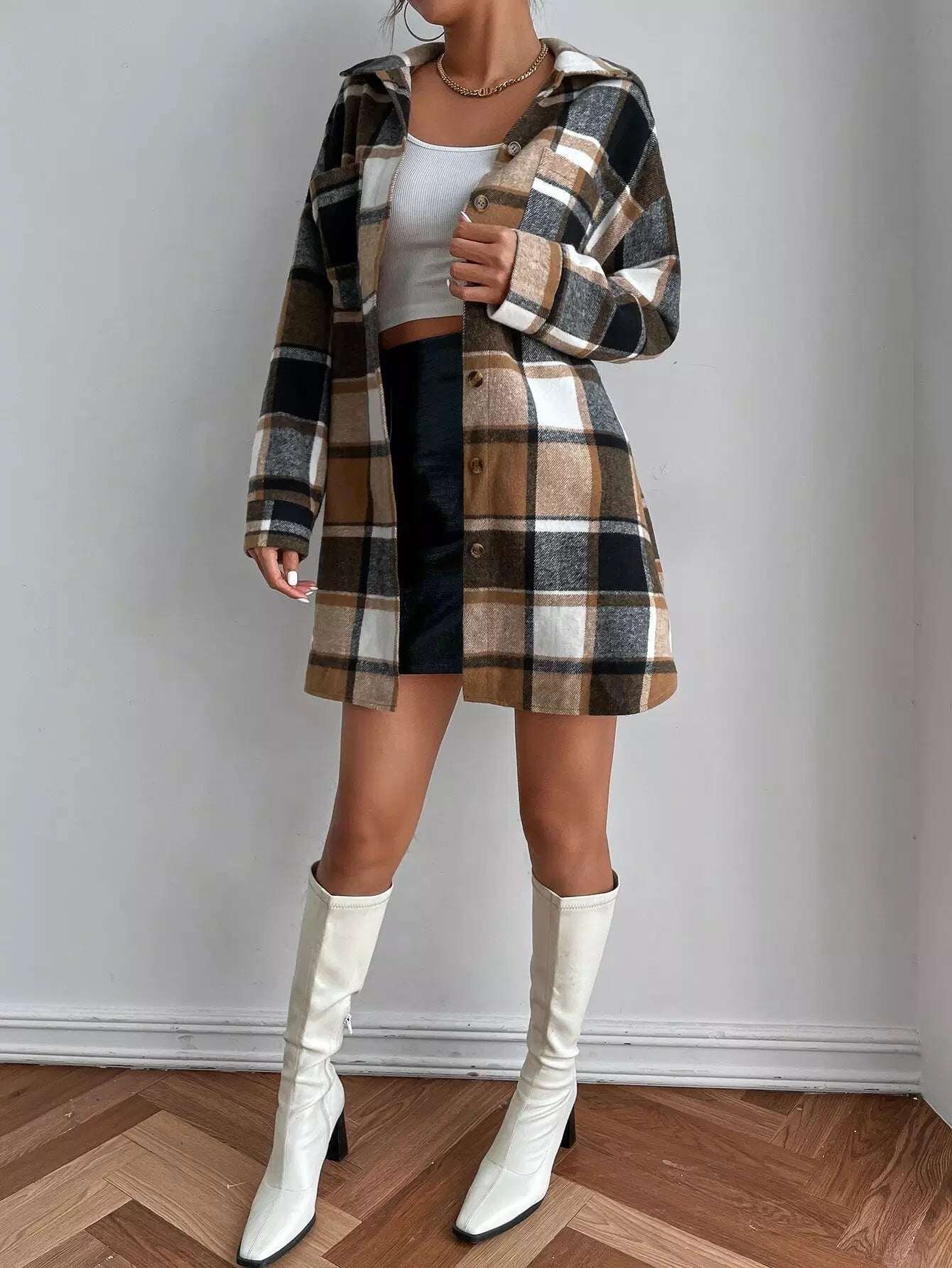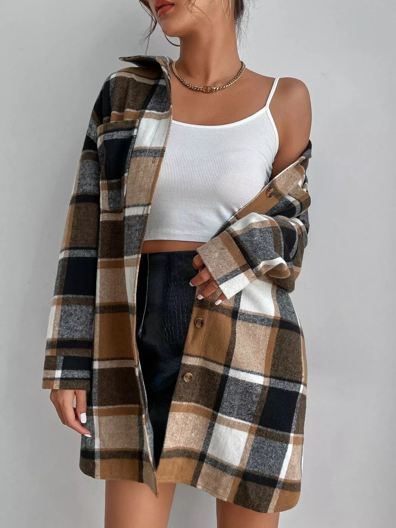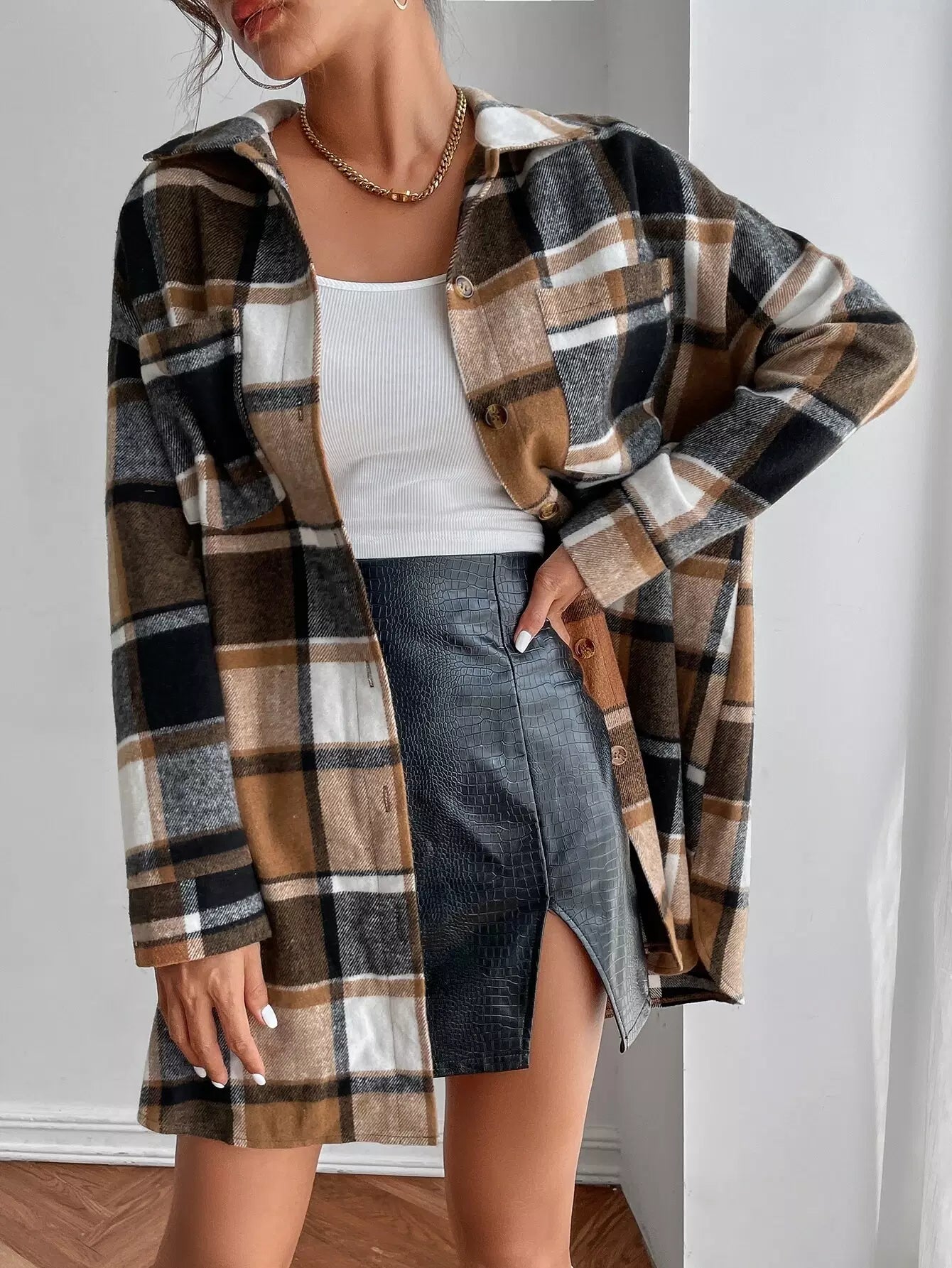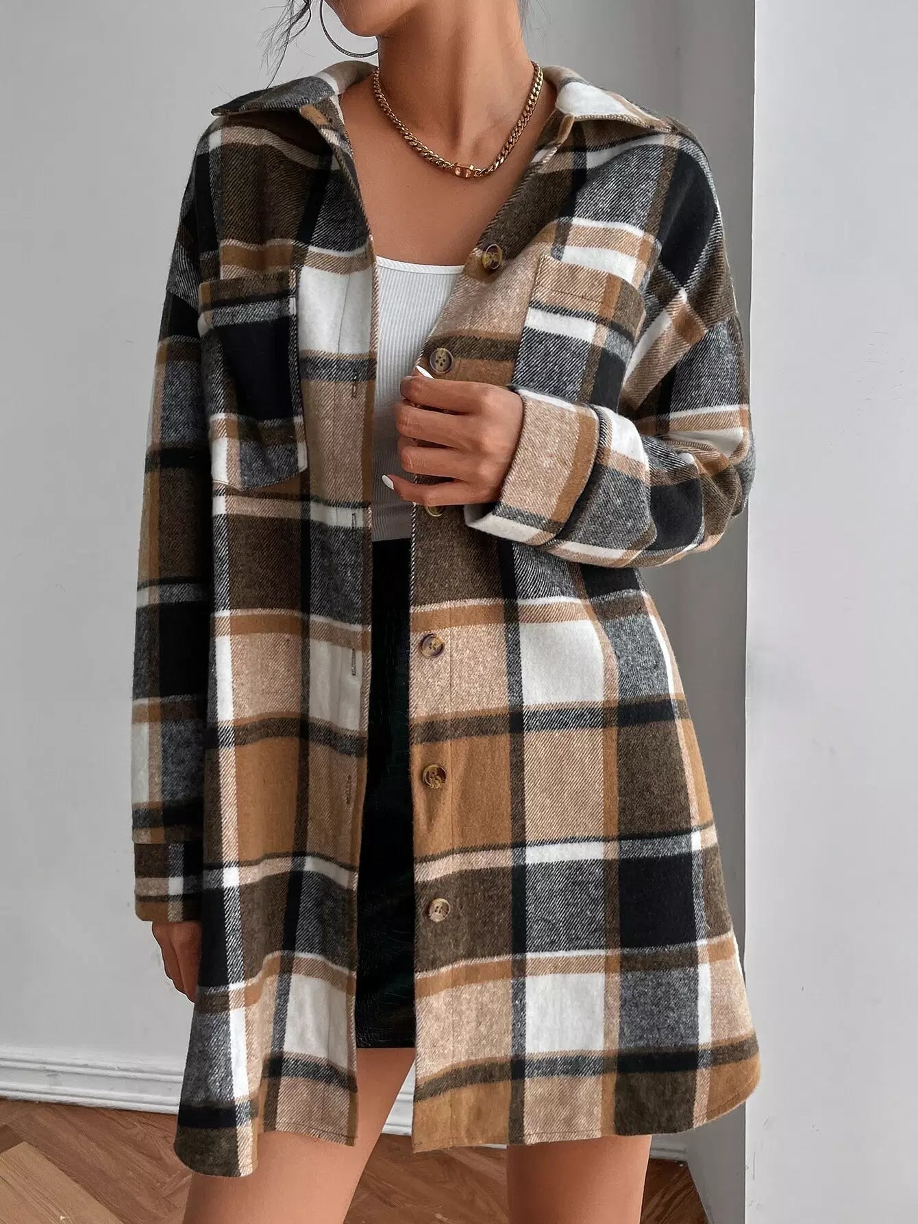 معطف منقوش منسدل الكتفين بجيبين