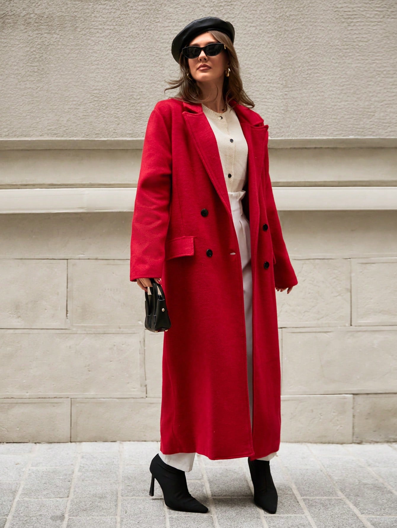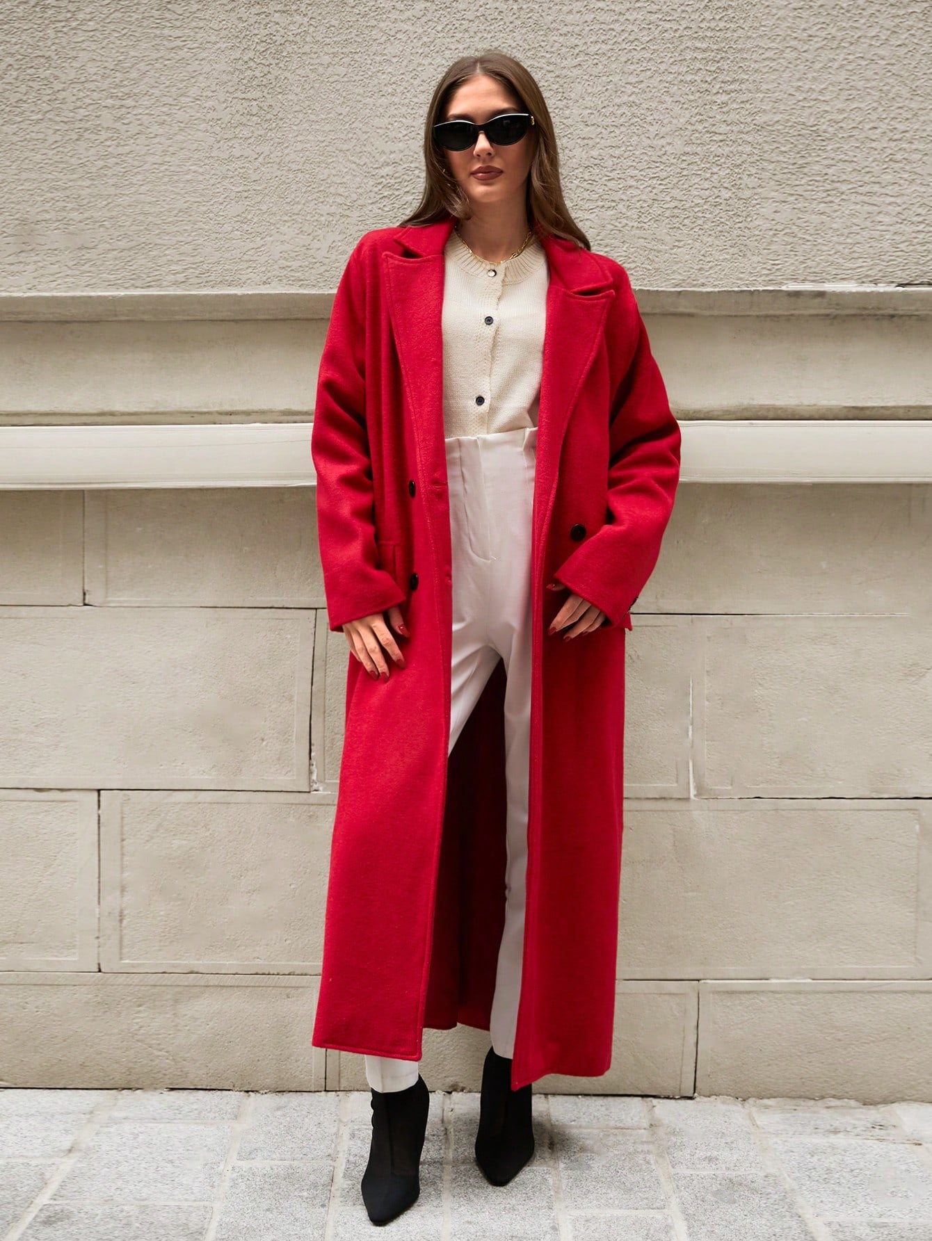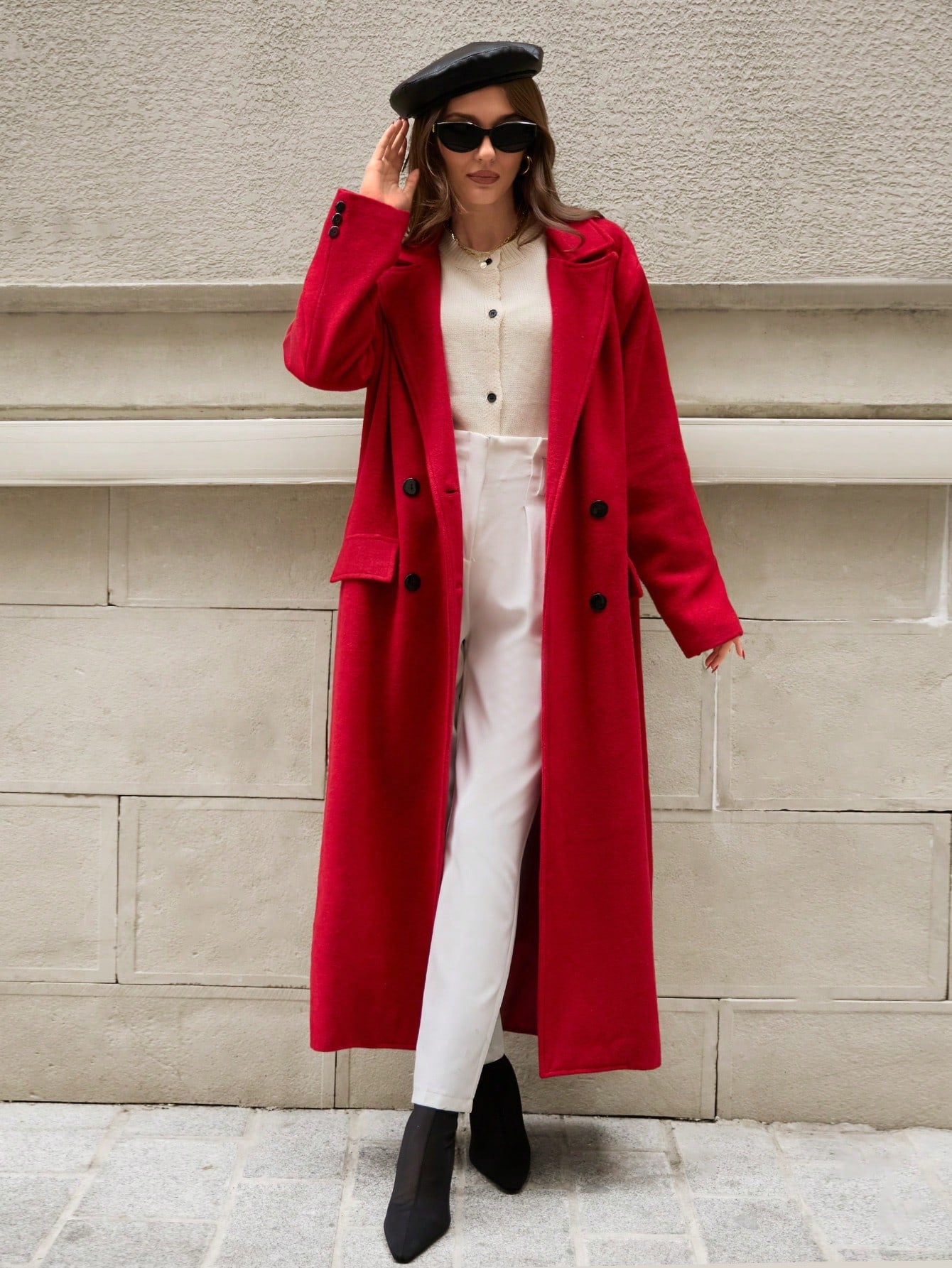 معطف صوف نسائي من EURMUSE بصفين من الأزرار وياقة مدببة