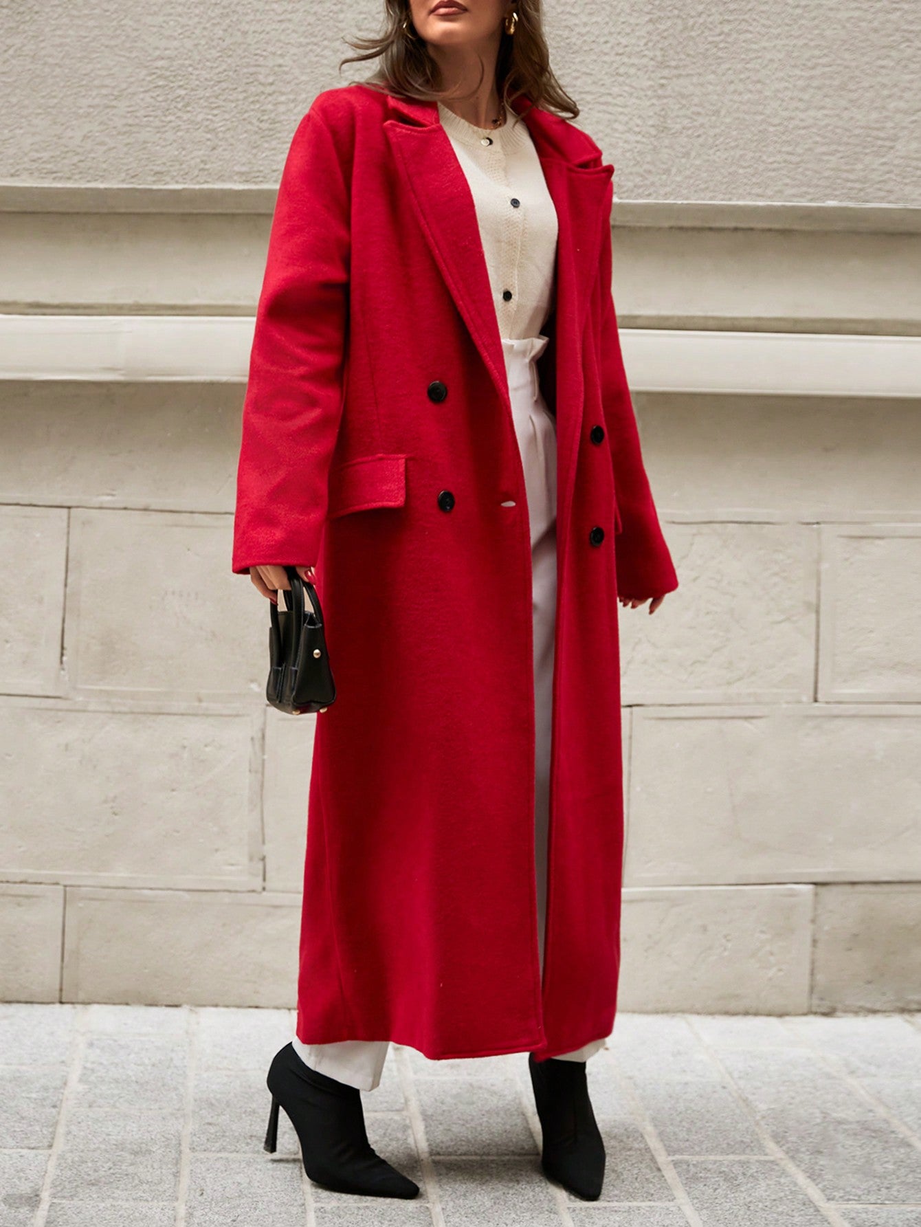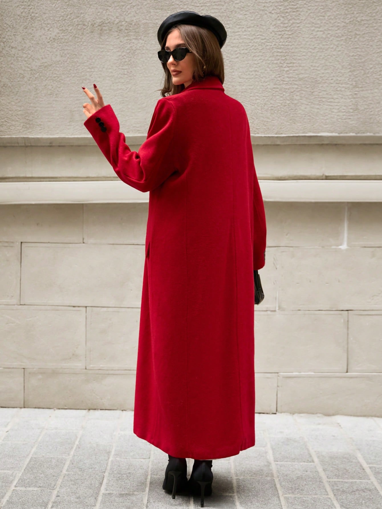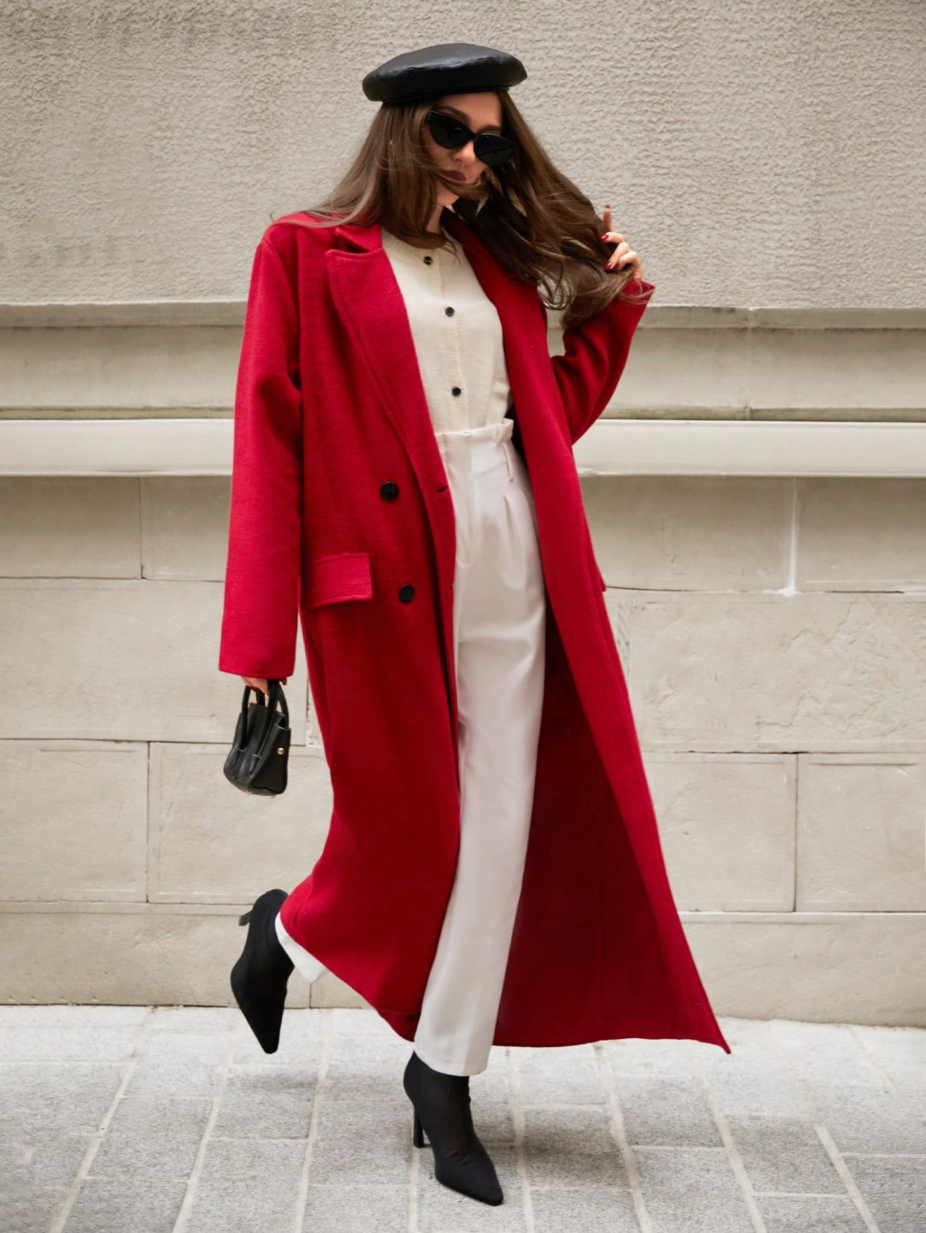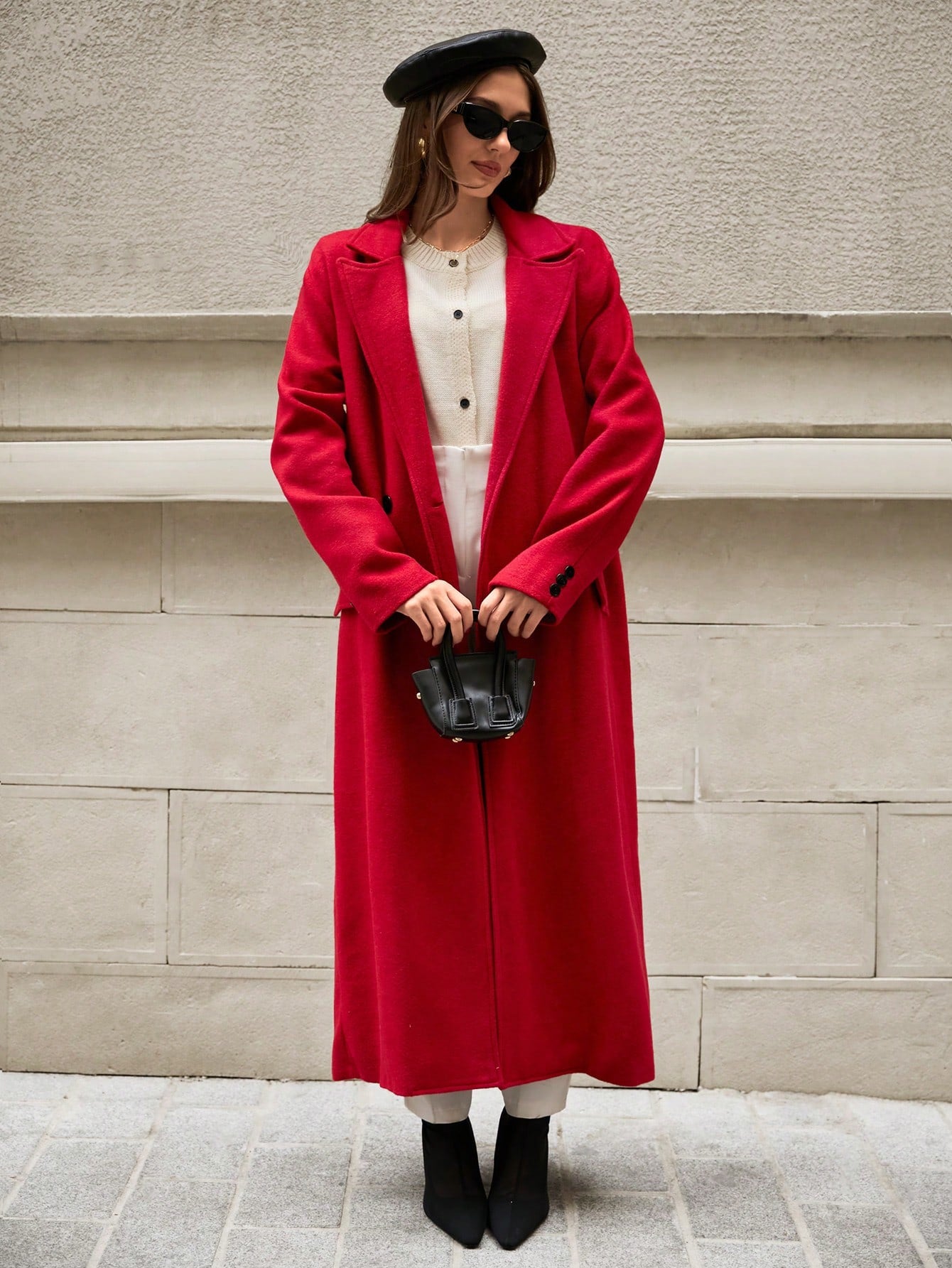 معطف صوف نسائي من EURMUSE بصفين من الأزرار وياقة مدببة