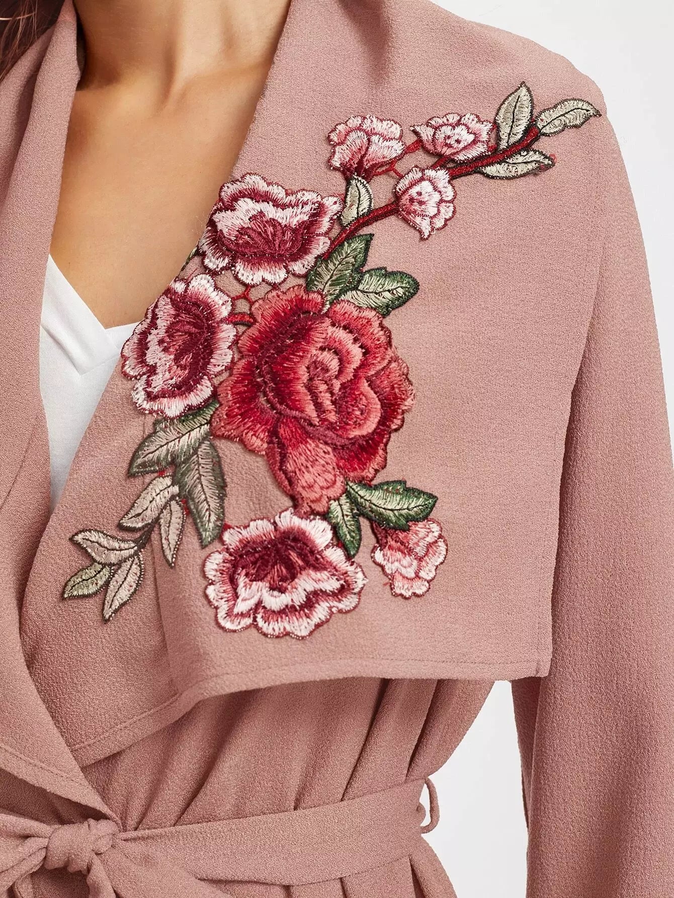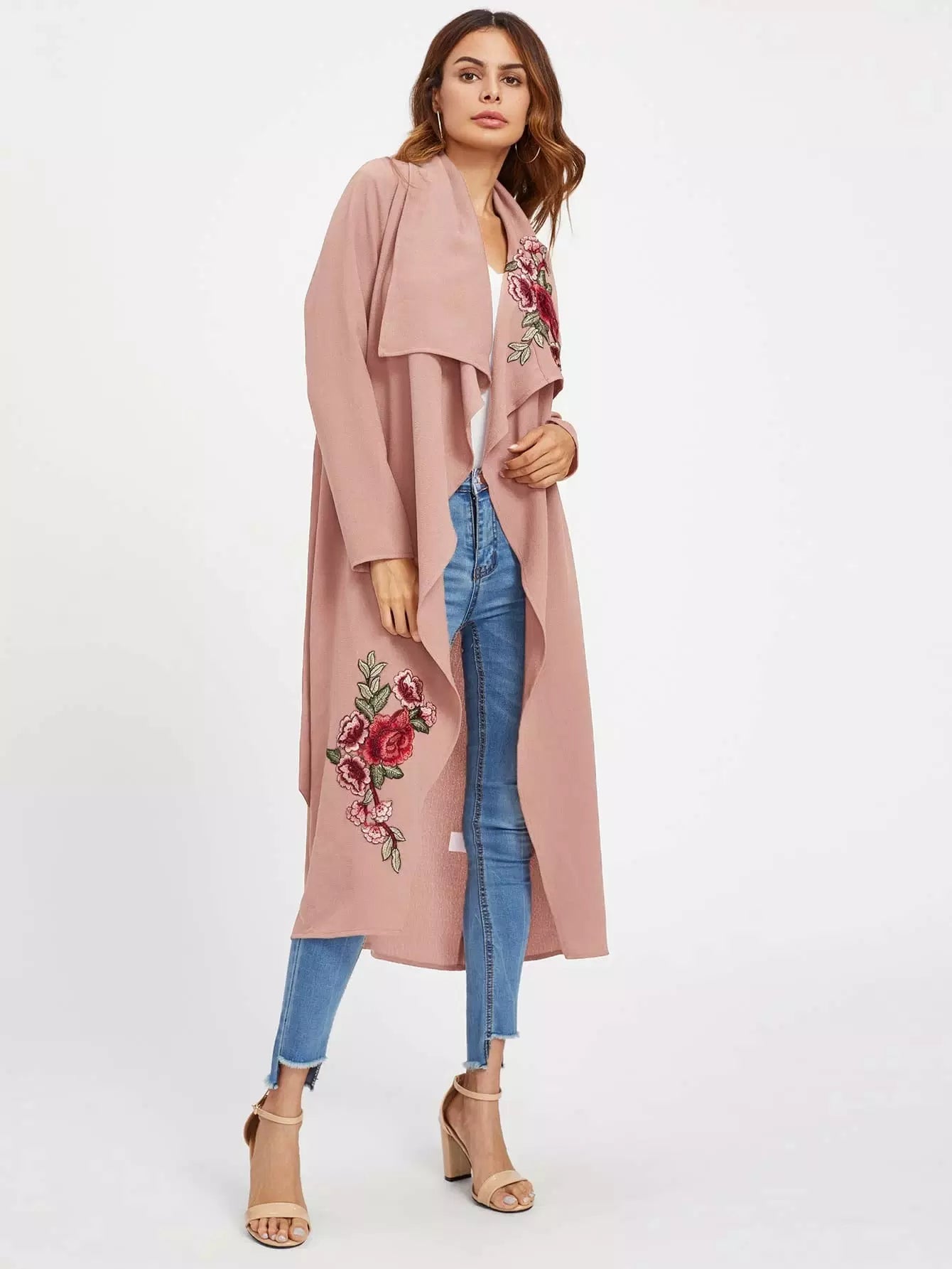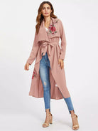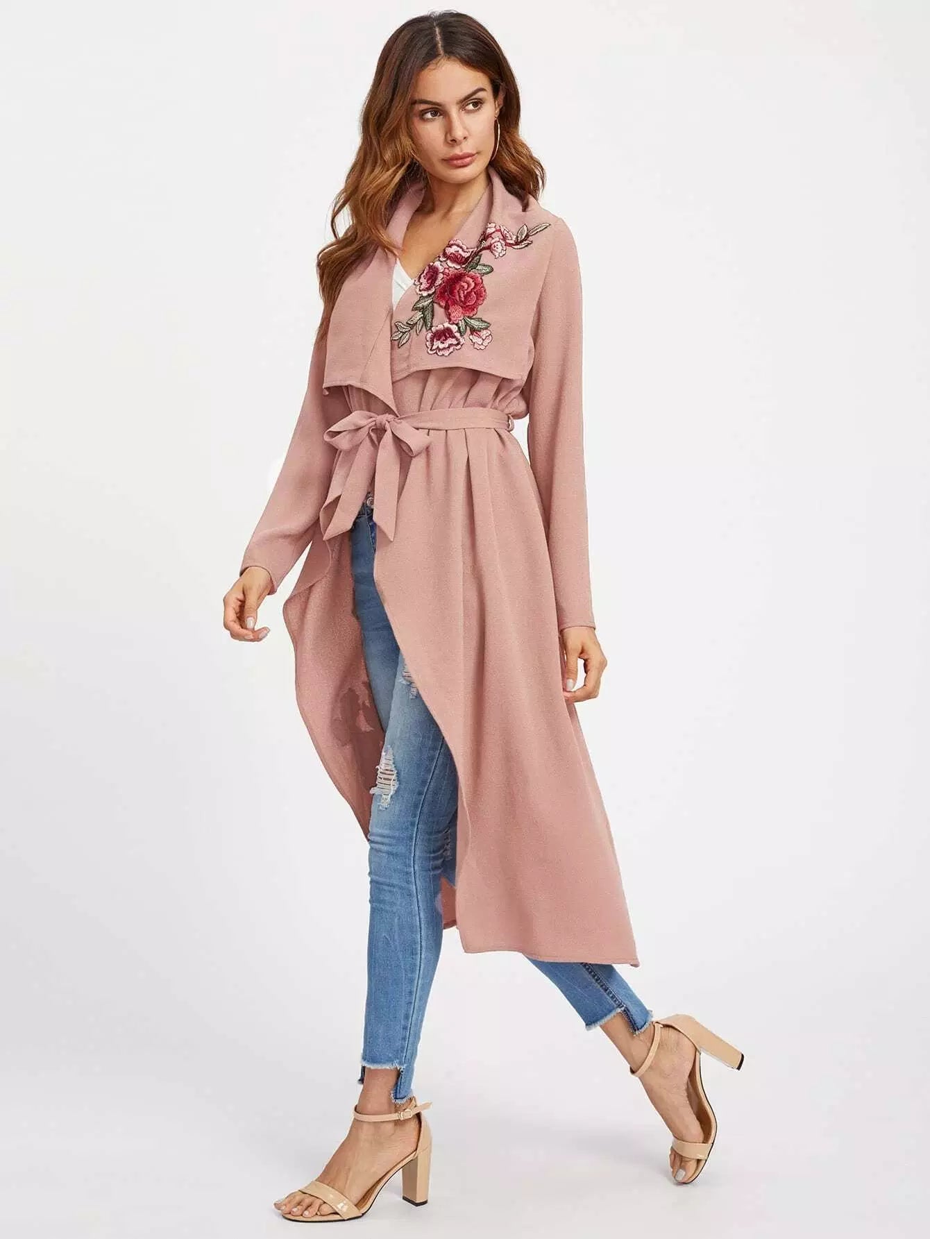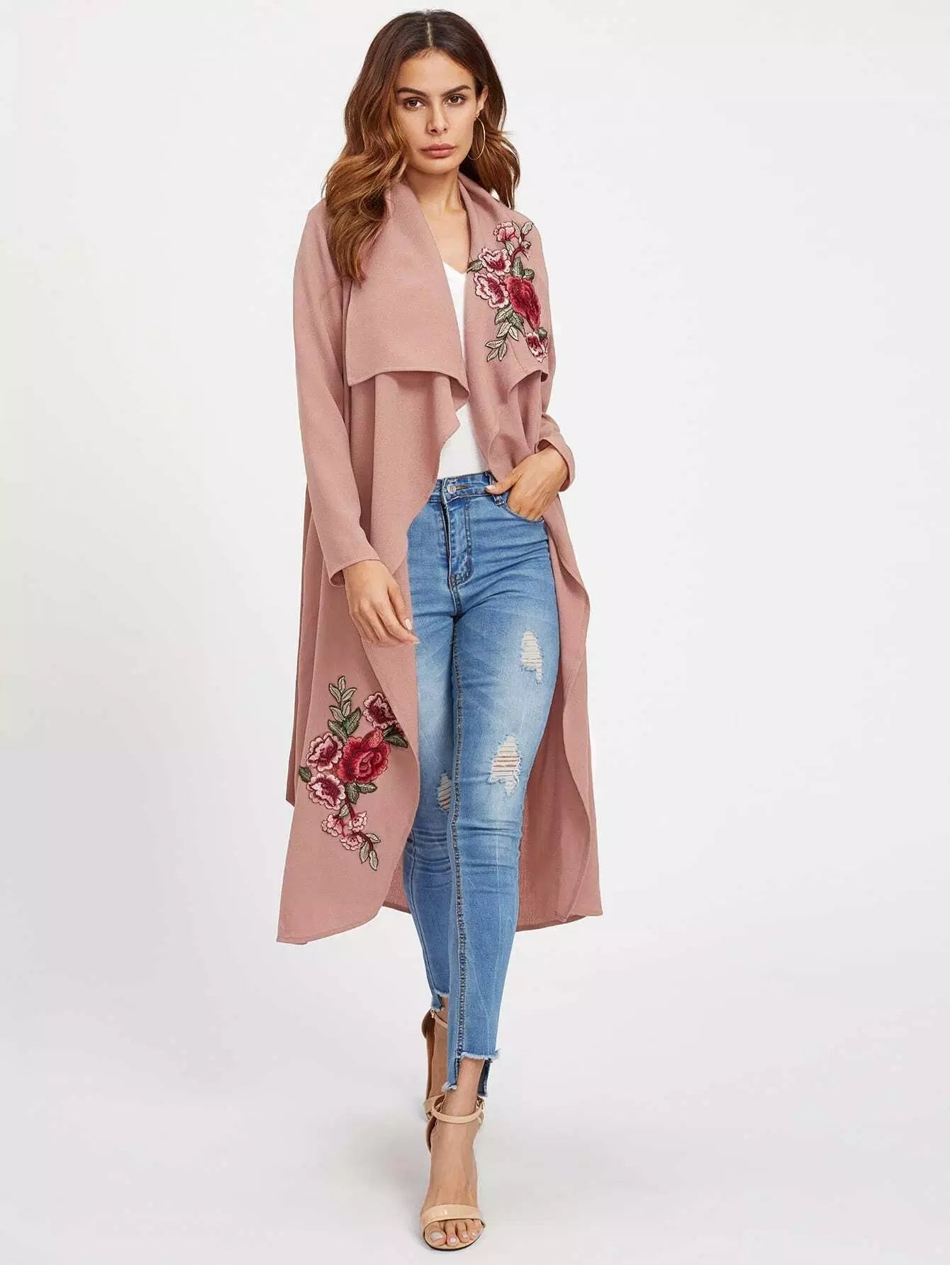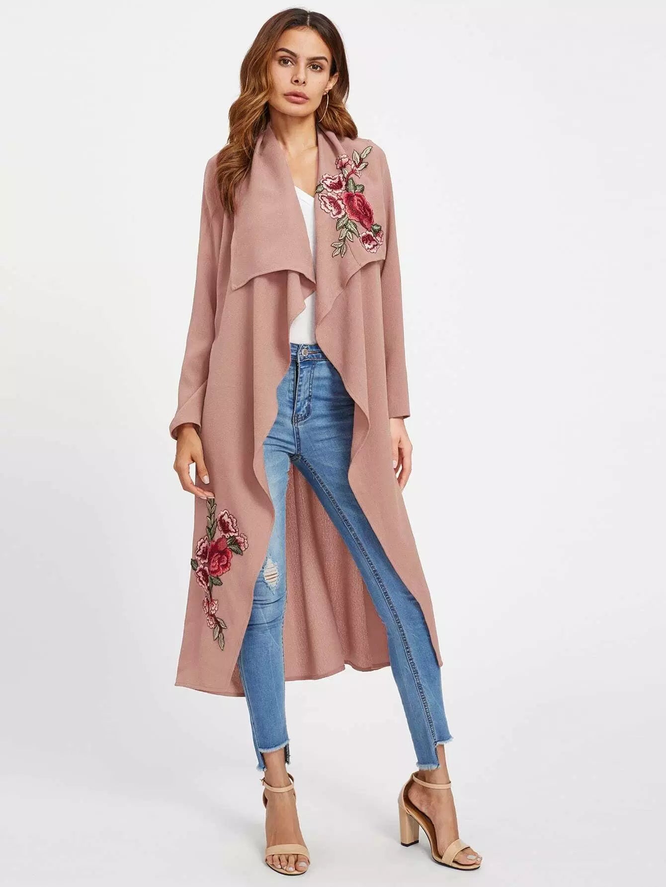 زهرة التطريز التصحيح معطف الشلال بدون حزام