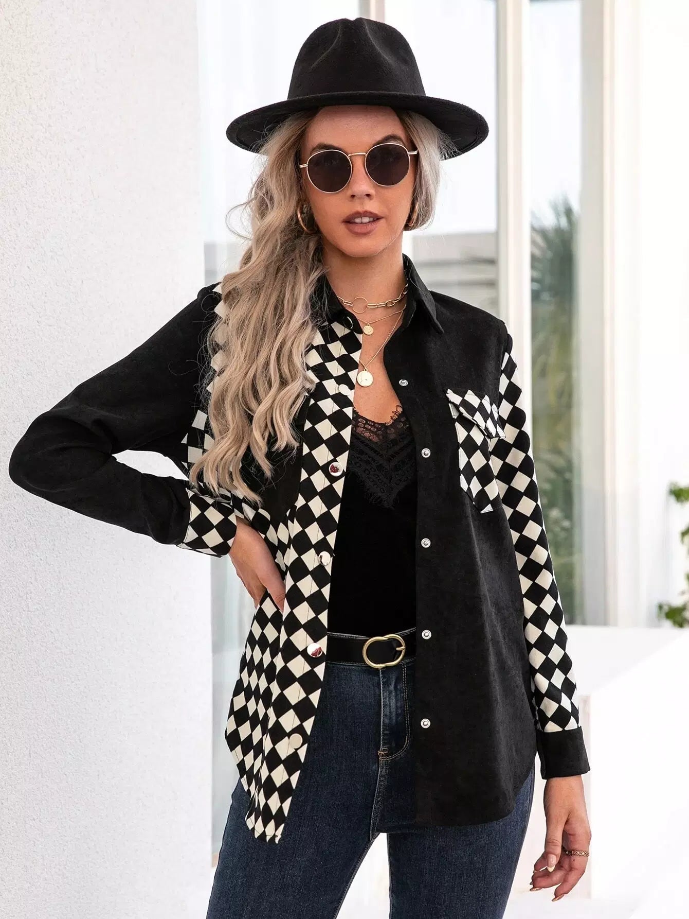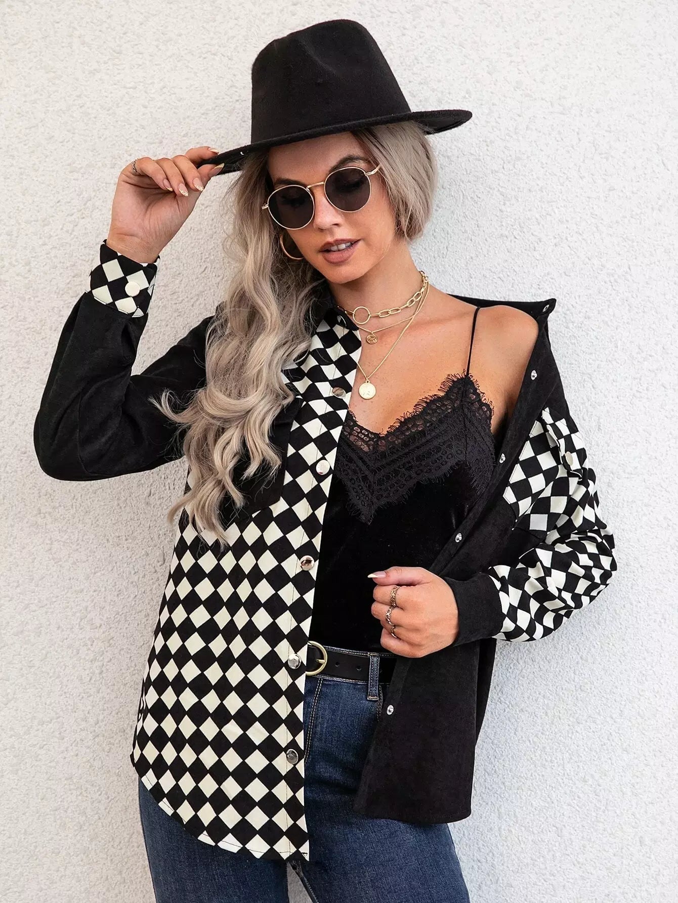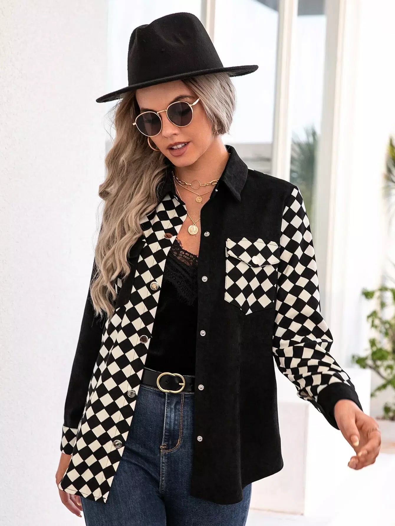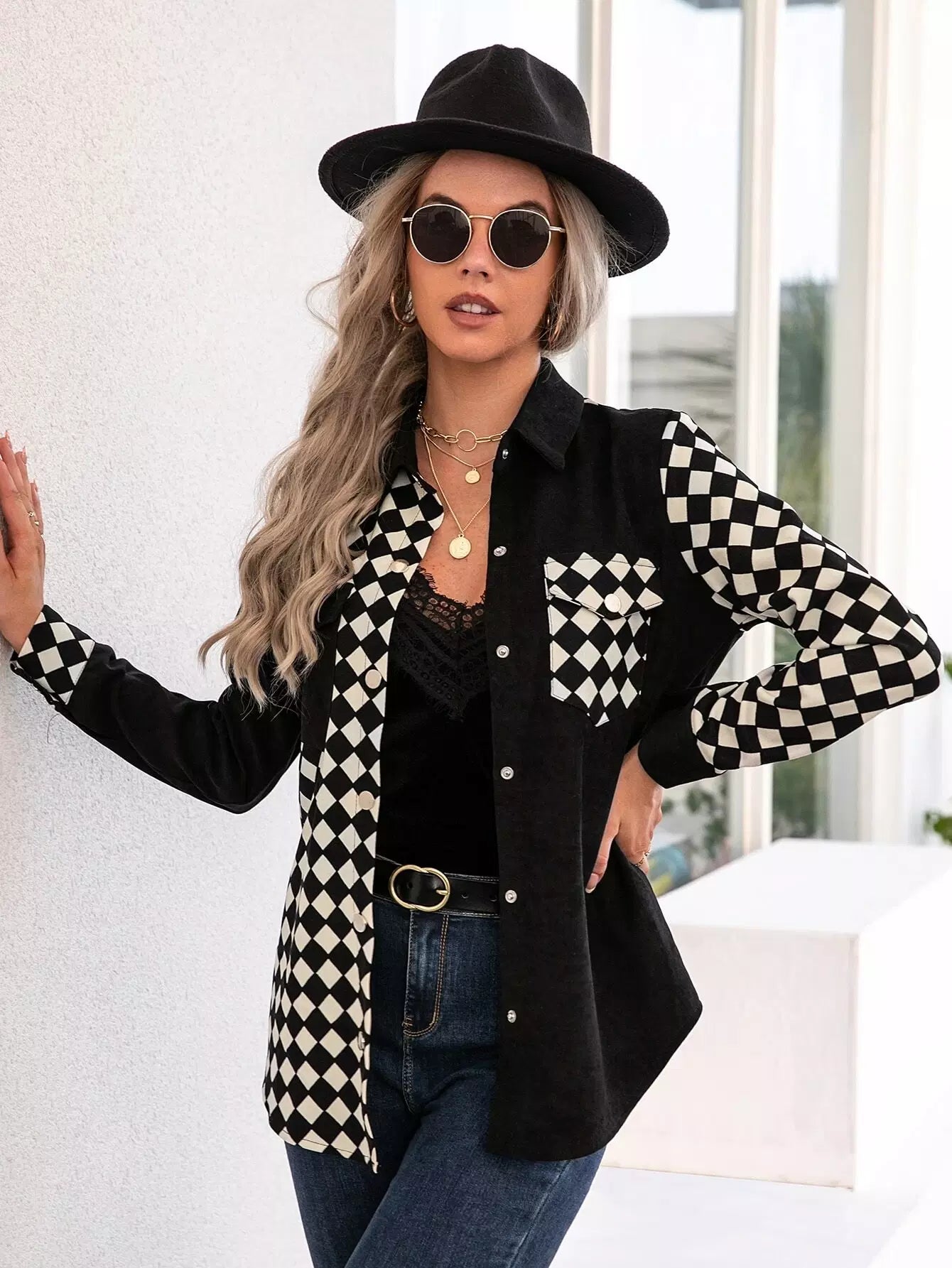 معطف بطبعة جيو بغطاء جيب بطبعة جيو